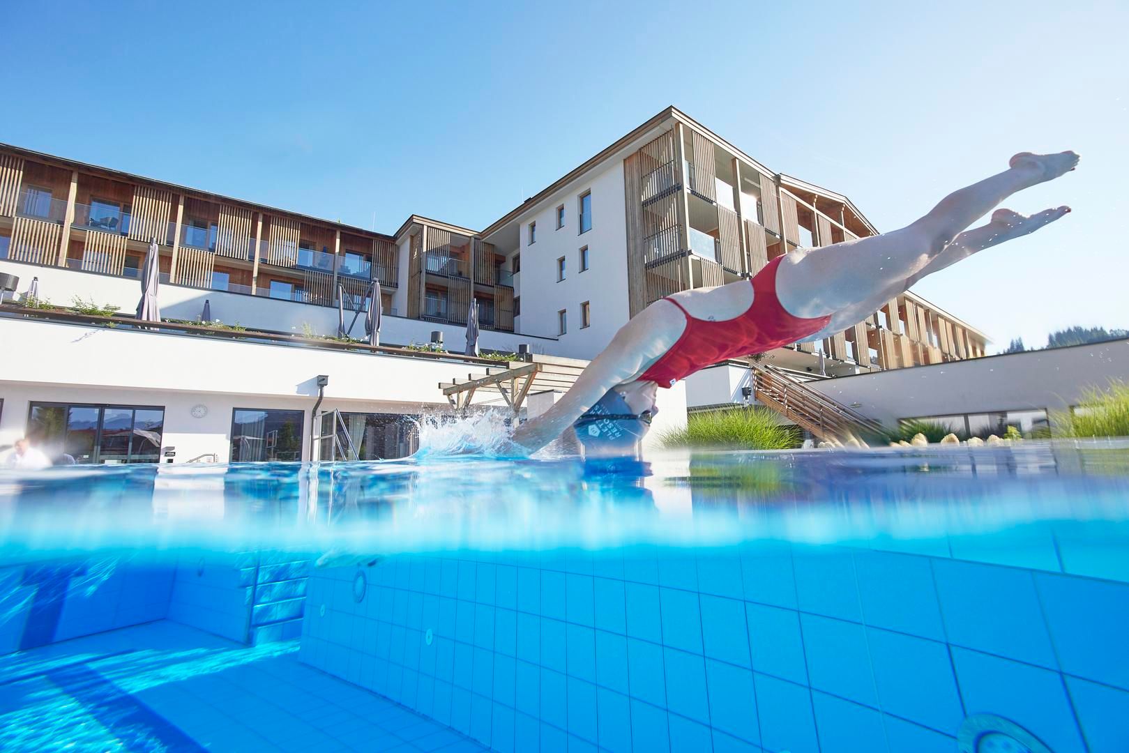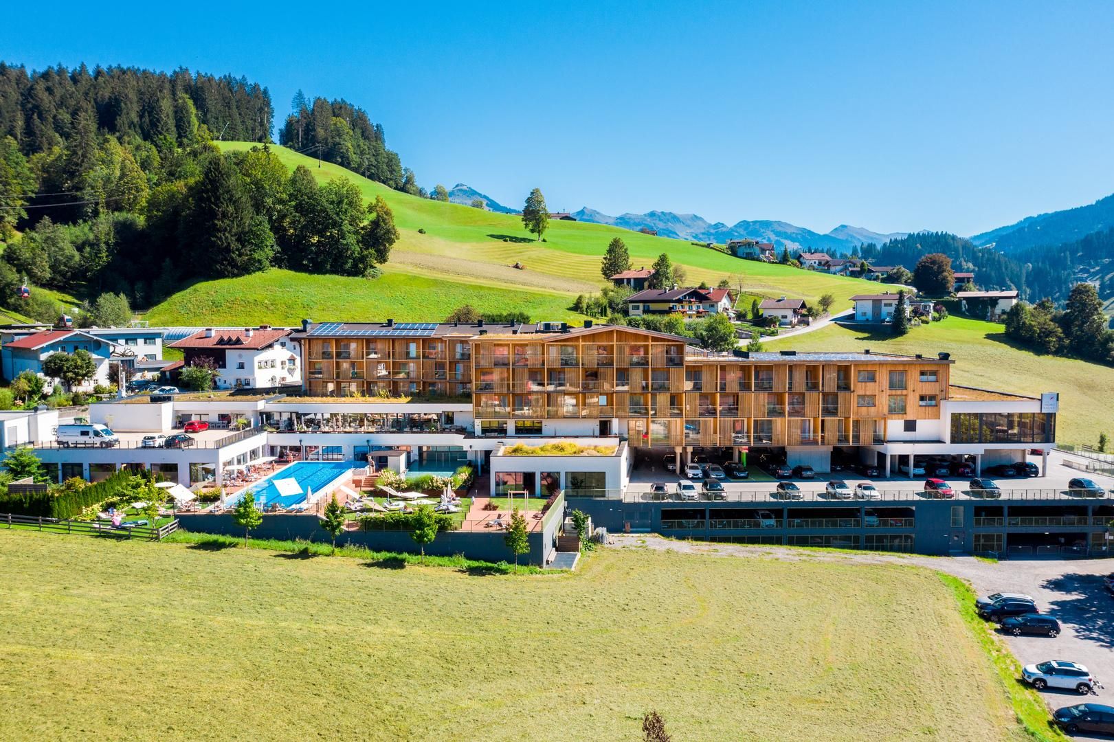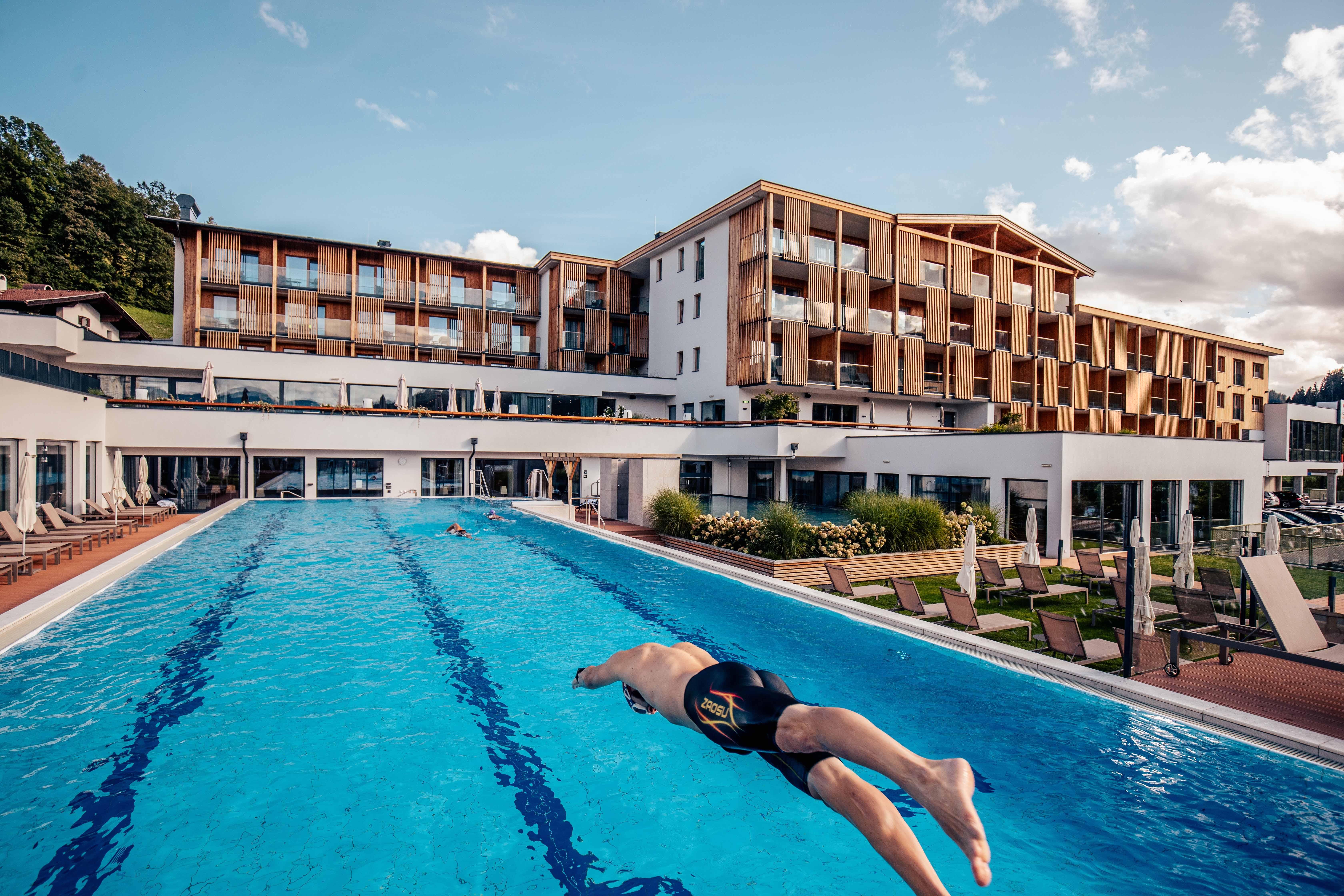 Das Hohe Salve Sportresort inmitten der Kitzbüheler Alpen vereint sportliche Eleganz mit alpinem Komfort und ist als Berg-Hotspot der ideale Ort für Aktivurlauber und Outdoor-Enthusiasten. Moderne Ausstattung und offene Räume holen die majestätische Bergwelt ins Innere und durchfluten die Räume mit natürlichem Licht. Durch die Lage am Fuße der BergWelt Wilder Kaiser-Brixental – nur wenige Schritte vom Gondeleinstieg entfernt - bietet Das Hohe Salve 365 Tage eine Fülle an Outdoor-Aktivitäten.