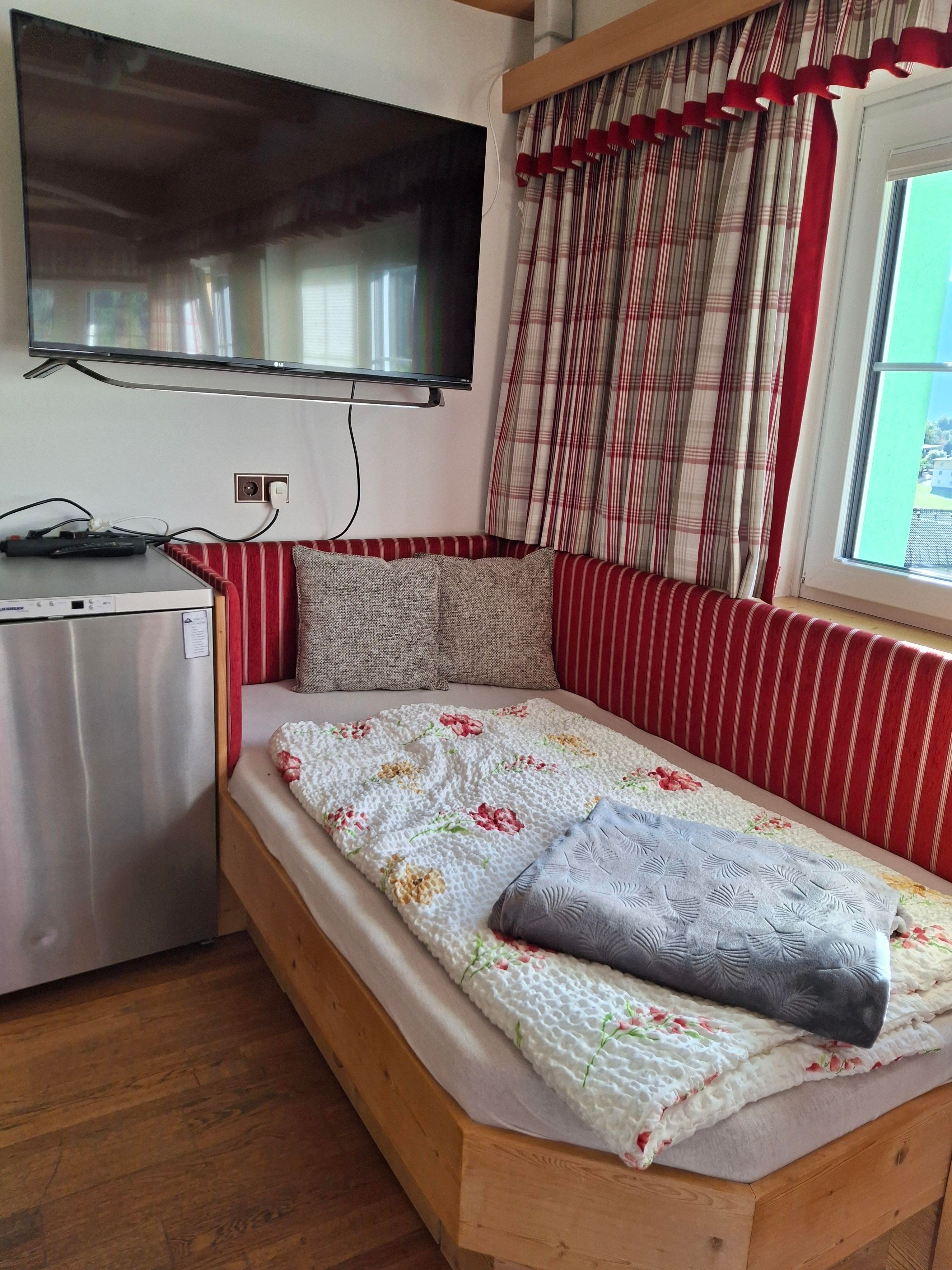 Das Steinmetzhäuschen bietet Platz für 3 Personen. Doppelbett + Schlafcouch; Babybett auf Wunsch. Ausstattung: Küche, Kachelofen, Schaukelstuhl, W-LAN, Fernseher, Bad/WC getrennt, Balkon/Terrasse, Grillmöglichkeit, Gartennutzung