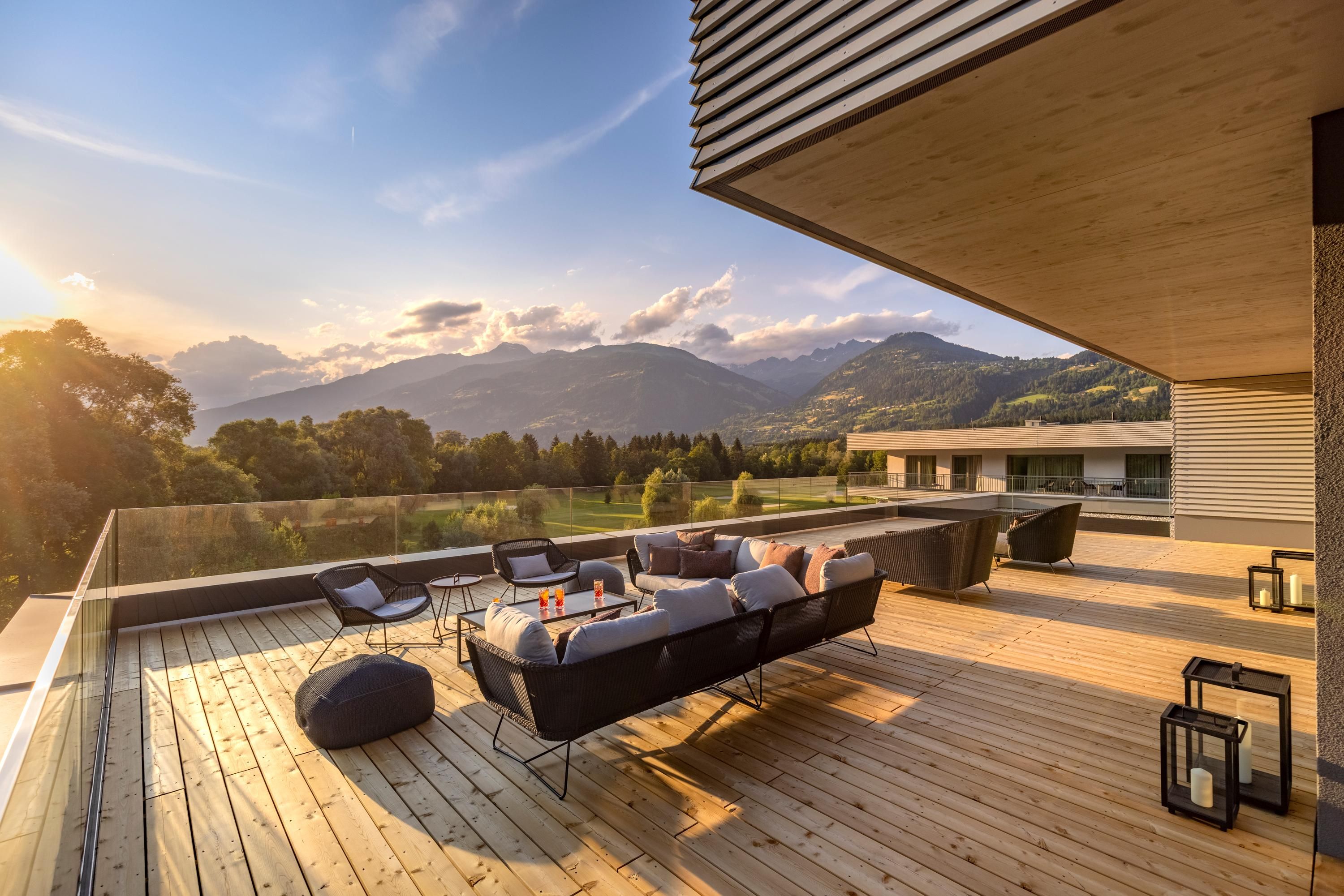 Das Dolomitengolf Suites***** bietet einen herrlichen Blick auf den benachbarten 36-Loch Golfplatz und die gepflegte Gartenanlage. Sie wohnen in eleganten Suiten (45 bis 205 qm Wohnfläche) und können am Fuß der Lienzer Dolomiten im großen beheizten Pool und auf den gemütlichen Lounge-Terrassen herrlich entspannen. Das Küchenteam im Hauben-Restauarant "Vincena" zelebriert allabendlich ein abwechslungsreiches Gourmet-Wahlmenü. Winter-Geheimtipp für Genießer: Im Winter verwandelt sich der Golfplatz in ein herrliches Langlauf-Paradies. Zwischen Weihnachten und Ende Februar lockt das Design-Hotel mit zahlreichen attraktiven Urlaub-Arrangements für Wellness-Liebhaber, Gourmets & Wintersportler. Im neuen Spa-Bereich (auf >1.000 qm) mit luxuriösem Hallenbad, modernem Fitness-Center, erweitertem Behandlungsbereich und Sauna-Landschaft lassen Sie die Seele baumeln. Zum Ausklang des Tages lohnt sich ein Besuch in der extravaganten Piano-Bar.