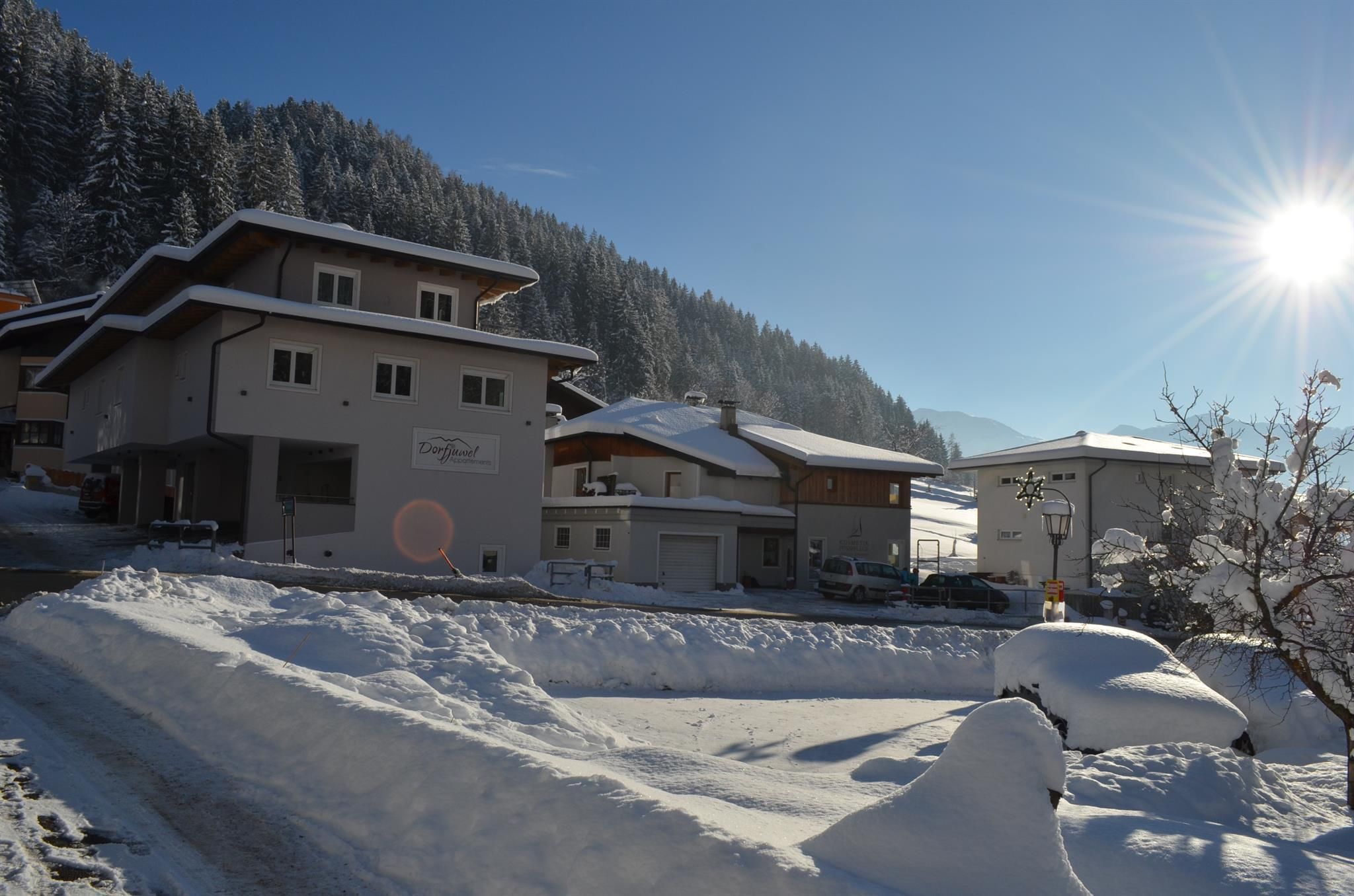 Uns als Gastgeber ist es ein besonderes Anliegen, Ihnen ein Urlaubs-Domizil zu bieten, dass keine Wünsche offen lässt. Das Appartementhaus Dorfjuwel wurde mit 5 Appartements in sehr gehobener Wohlfühlausstattung errichtet. Unsere Gäste erfreuen sich auch an einem Wellnessbereich mit Finnischer Sauna, Infrarotwärmekabine und Ruheraum. Unser Ferienhaus liegt zentral und gut erreichbar in Oberau. Supermarkt, Gastronomie, Arzt, Skibushaltestelle ist alles zu Fuß in nur 3-5 Minuten erreichbar. Wir freuen uns bereits auf Sie! Ihre Gastgeber Anton und Christina Erharter