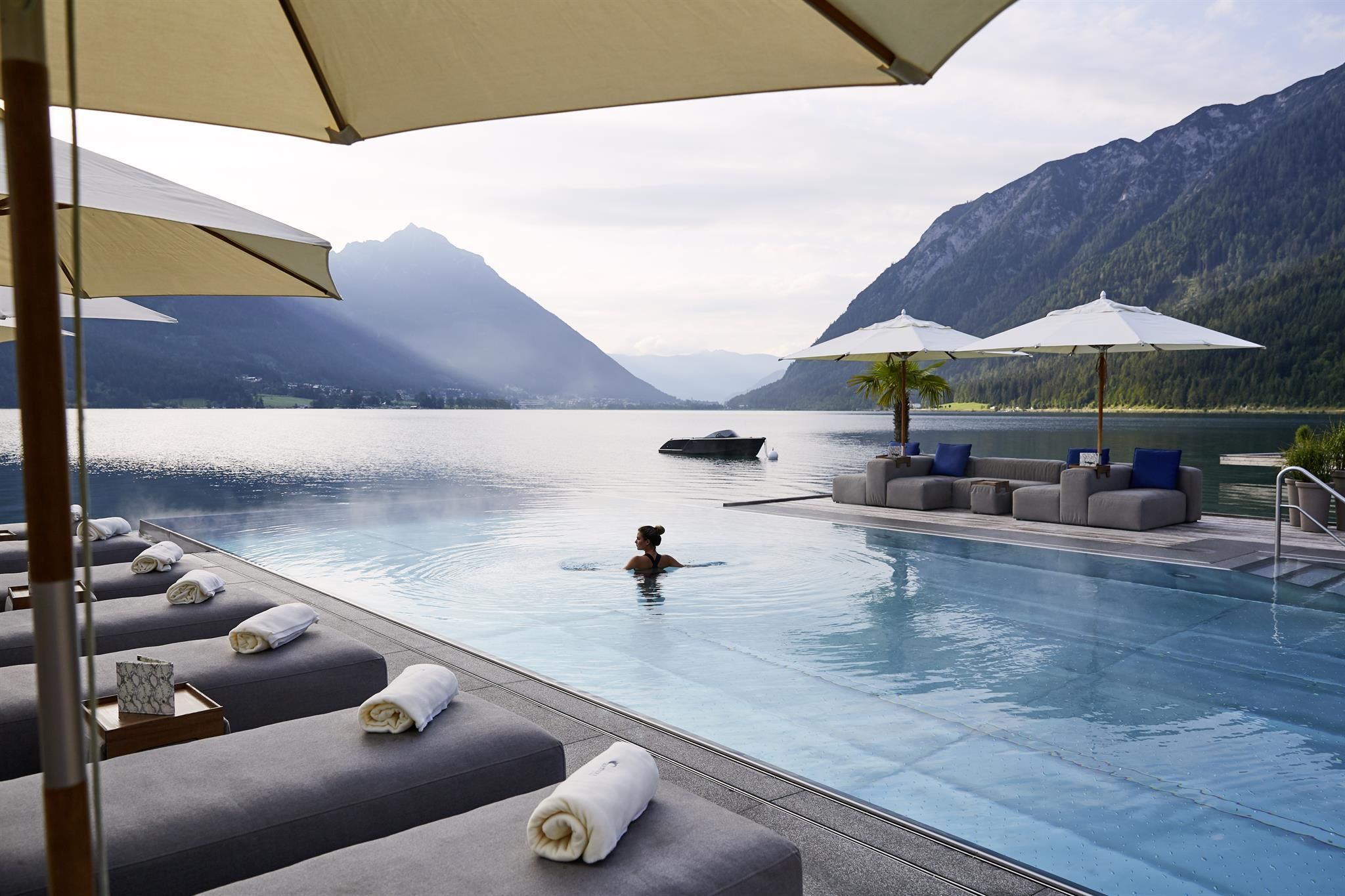 Herzlich willkommen im Entners am See – in der Front Row am Tiroler Achensee. Die Berge erkunden. Den See erobern. Den 4-Sterne-Superior-Komfort in variantenreichen Wohnwelten auskosten. Das traumhafte Panorama bestaunen. Als Gourmet verwöhnt werden. Beim regionsweit einzigartigen Dine Around neue Genussfacetten entdecken. Phänomenal genossen – in unserer Achensee-Stube, dem Restaurant, dem Wirtshaus am See, auf der Panoramaterrasse oder direkt am See in unserer Strandbar. Bei Wellness & Spa vollkommen loslassen. Und im Infinity-Pool auf den Wassern des Achensees einfach frei sein – das ist Front-Row- & First-Class-Living im Enters am See. Bei Entners ist es draußen so schön, dass es fast schwerfällt, wieder hineinzugehen – wenn bei 33°C Wassertemperatur der Infinity-Pool zu außergewöhnlichem Badevergnügen zwischen See und Himmel einlädt. Im Sommer verführen coole Drinks, heiße Snacks und traumhafte Panoramaaugenblicke zum Relaxen und Abschalten im Entners See-Spa.