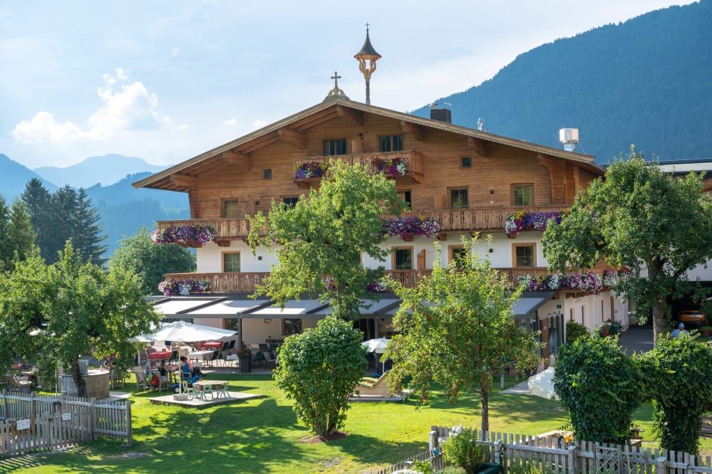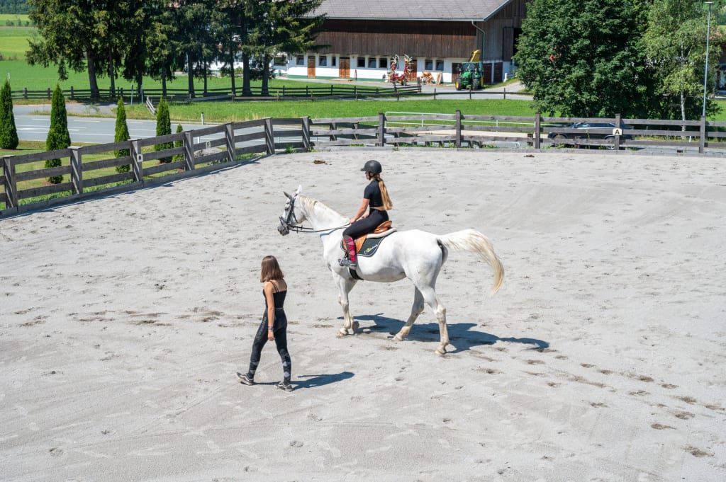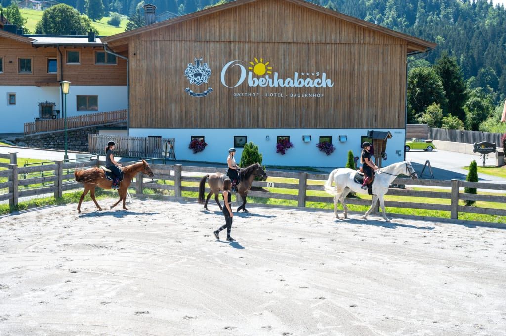 Herzlich willkommen am Erlebnisgut Oberhabach – Sepp jun. mit Theresa, Eltern Marlen und Sepp Seiwald sowie Oma Maria freuen sich auf euren Besuch. Hier wird Herzlichkeit, Gastfreundschaft und Tradition groß geschrieben und mit Leidenschaft gelebt. Unser ***S-Hotel und 5 Blumen Bauernhof verbinden das Angebot eines Hotels mit der Gemütlichkeit und dem wunderbaren Ambiente des 620 Jahre alten Bauernhofs. Ankommen, abschalten, genießen – Natur aufnehmen und die gute Landluft atmen … Herz, was willst du mehr! Ob mit der ganzen Familie, zu Zweit oder mit ein paar Freunden – das Erlebnisgut Oberhabach ist einfach ein Ort zum Wohlfühlen. Drei Generationen kümmern sich um euch und Mama-Marlen schwingt höchst persönlich und leidenschaftlich den Kochlöffel für unsere Gäste. Dabei zaubert sie aus qualitätsgeprüften, regionalen Produkten vom eigenen Hof und von nahen Betrieben richtige Köstlichkeiten. Kinder aufgepasst! Bei uns am Hof habt ihr ganz viel Platz – unsere große Wiese mit Spielplatz und Barfußweg wartet schon auf euch. Die Wasserratten kommen zum Freibad im Ort per Rad (Eintritt gratis). Apropos Radeln – wusstet ihr, dass man entlang der Tiroler Großache wunderschön eben in die Pedale treten kann? Oder ihr macht eine Biketour auf den Kalkstein … phuu - ganz schön anstrengend! Neu am Erlebnisgut: REITFERIEN! Endlich ist es soweit ... wir haben ein lang geplantes Vorhaben von uns - den Reitstall samt Reitschule, Reitplatz und Koppel - in die Tat umgesetzt und ein kleines Paradies für Reitferien in Kirchdorf in Tirol, gschaffen. Denn es gibt ja kaum etwas Schöneres, als sich im Urlaub die Zeit zu nehmen und entspannte Stunden auf dem Pferderücken zu genießen, meint ihr nicht auch? In unserem Pferdehotel wohnen jetzt 10 Pferde - hier ist für jeden Pferdeliebhaber das passende Tier dabei. Wobei - es kommt hier nicht nur auf die Pferdegröße an, vor allem der Charakter von Pferd & Reiter soll gut zusammenpassen. Darauf legen wir großen Wert und finden immer das passende Pferd für unsere Reitschülerinnen und Reitschüler - wir suchen quasi nach "Seelenverwandten", damit die Reitstunden allen - Pferd wie Reiter - Spaß machen. Ein Reiterurlaub in den Kitzbüheler Alpen in Tirol, wie er schöner nicht sein könnte, nicht wahr? Und dann gibt es noch ein paar Sommer-Highlights: Eines davon ist die Oldtimer-Fahrt mit Seppi jun. auf Omas altem Traktor … einfach traumhaft! Das alles und noch mehr dürft ihr natürlich auch genießen. Wir wär es mit einem Aufguss in unserer Tennensauna (ab 16) mit Panoramablick auf den Wilden Kaiser? Schwitzen und gleichzeitig die Bergwelt genießen – das ist Erholung für Körper, Geist und Seele zugleich. Von diesen unvergesslichen Momenten werdet ihr noch ganz lange zehren.