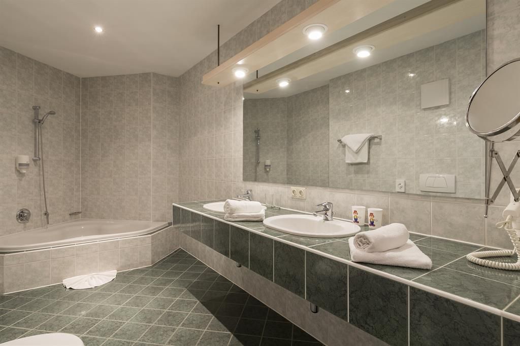 Das bärenstarke Familienprogramm im Hotel Kaiserhof überrascht Groß und Klein gleichermaßen. Erholung für die Erwachsenen, Abenteuer und Spaß für die kleinen Gäste. Im Kaiserhof eine Kombination in idealster Weise. FAMILIEN-ERLEBNIS * Bärenstarkes Baby-, Kinder- und Familienprogramm * Betreuter Baby-und Kid's Club * Kinder-und Teenie-Ermäßigungen KAISERLICHES AMBIENTE * Familienzimmer und Appartements * "Liebe Wasserwelt" bietet Sauna-und Badevergnügen auf 1.100 m² WELLNESS & BEAUTY * Massagen, Bäder, Physiotherapie, Kosmetik, Körperbehandlungen, Kinderwellness,... KINDER-SPASS * 250 m² Kinderland mit Kletterwand, Bärenkino, Playstation, Tischfussball, Airhockey u.v.m. * 80 m² Babyland mit Bärtram's Spielzimmer, Feen-Schlafzimmer, Küche und BabyWC und Wickelzimmer.