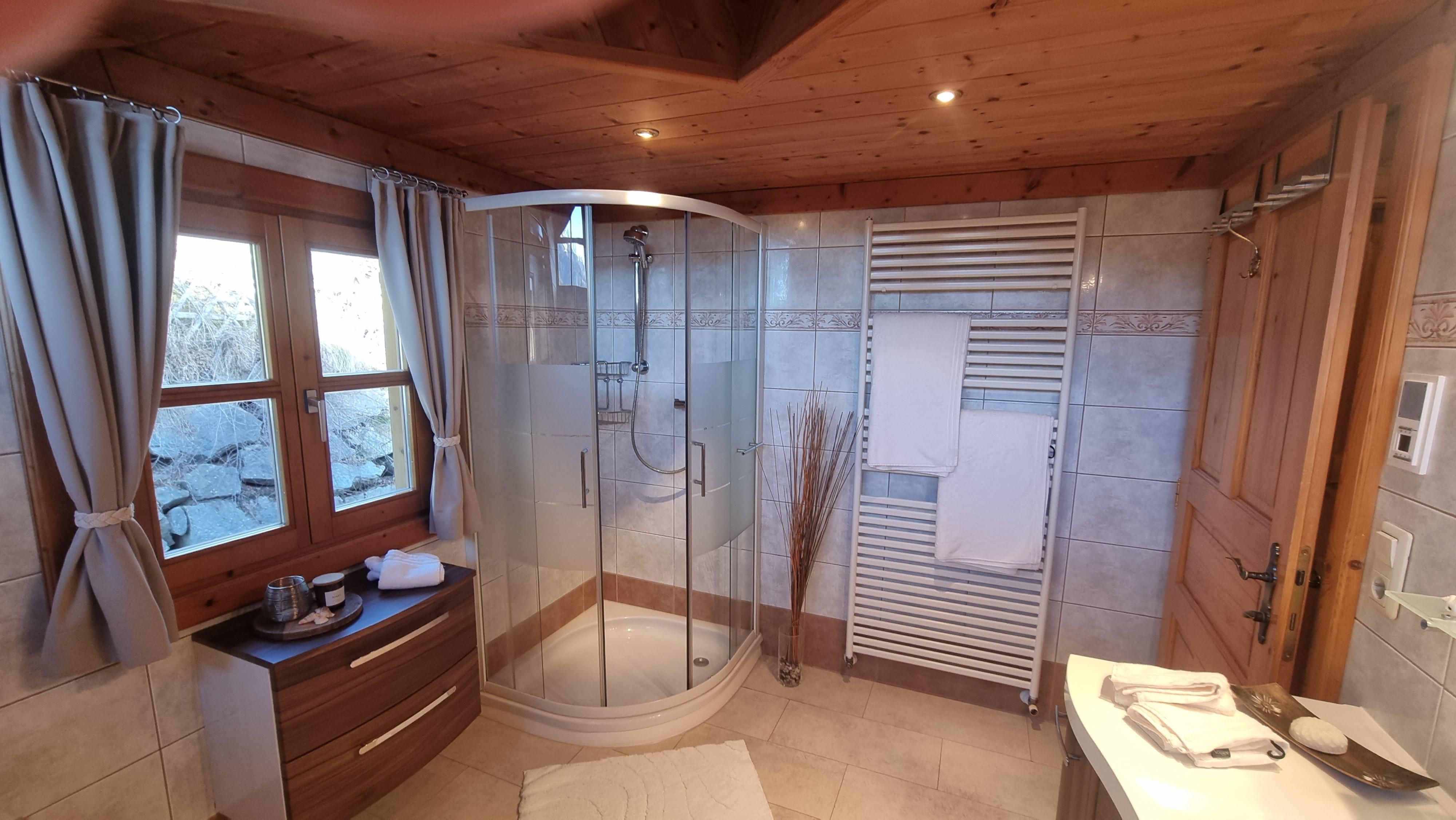 Das Blockhaus befindet sich auf der Südseite (Seehöhe 1115 m ü.M.) mit direktem Panoramablick auf die Lienzer Dolomiten. Das Blockhaus ist mit dem Auto auf einem Privatweg erreichbar und ist mit allen Annehmlichkeiten ausgestattet. (Strom / offener Kamin/Kachelofen/ Zusatzholzherd in der Küche / Dampfgarer/ E-Herd/ Induktionskochfeld / Waschmaschine / Trockner / Kaffee-Filter-oder Nesspressokapselmaschine, Espressokocher, Das Blockhaus besteht aus 3 Etagen EG: Garderobe, Abstellraum, separater Raum Waschmaschine/Trockner 1.Stock: Küche mit Eckbank u. Esstisch, Wohn - u. Esszimmer mit Couch/ Flat - TV/ offenen Kamin/Kachelofen, großer Eckbank und Esstisch, Abstellraum, WC mit Waschbecken, Ausgang zur großen Terrasse - südseitig. 2. Stock: 2 Schlafzimmer mit Doppelbett und Ausgang zum Balkon-südseitig, 1 Schlafzimmer mit Doppelbett - nordseitig, großes Badezimmer mit WC/WT/Dusche/Badewanne