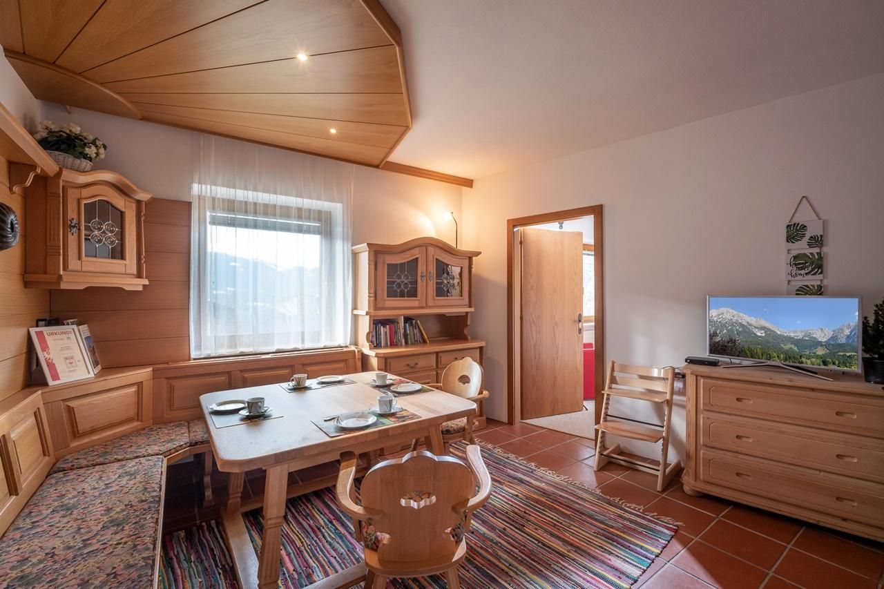 In Scheffau in ruhiger Lage, gleichzeitig sehr zentral liegt das Appartement mit 3 gemütlichen Schlafzimmern im Landhausstil , Stube und Bad/ WC in einem 4-Familienhaus mit Garten, Terrasse und Blick auf die Berge im Schatten des Wilden Kaisers. Ausreichend Schränke bieten viel Platz für Kleidung, Schuhe, Handtücher, usw.Im Bad sind eine Badewanne und eine Dusche, Waschmaschine und Föhn, Shampoo und Seife. Alle Zimmer gruppieren sich um eine großzügige Diele mit Garderobe. Eine voll eingerichtete und ausgestattete Küche machen die einladende Wohnung komplett. Zur Wohnung gehört ein Skikeller. Darin findet Ihr auch Rodelschlitten zur freien Verfügung für eine abenteuerliche Rodelpartie tagsüber oder auch mal nachts. in nur wenigen Minuten, 200m entfernt, erreichen Sie die Ski-Bushaltestelle(gratis Bus mit Gästekarte), kleine Lokale und Pizzerien, einen SPAR Supermarkt zum Einkaufen oder Sie starten direkt für eine Wanderung am Wilden Kaiser und seiner Umgebung zu Fuß vor der Haustüre. Eine schöne Kneipp Anlage zum Verweilen und entspannen und ein gemütliches Cafe mit herrlichem Kuchen ist direkt am Ortsmittelpunkt, 5 Minuten vom Appartement entfernt bei der Kirche. Je nach Schneelage ist im Winter eine Abfahrt auf Ski direkt zum Skiberg Brandstadl möglich ab Dorfzentrum hinter dem Rathaus. Auch der Einstieg in die Loipe beginnt hier. Zum Baden lädt der HintersteinerSee ein oder das Kaiserbad in Ellmau, ein Highlight für alle, die Wasser lieben mit einem Kindererlebnisbad, Wellnesslandschaft und Kletterhalle. Seien Sie unser Gast und erleben Sie herrlich entspannte ereignisreiche Tage. Wir freuen uns auf Sie. Gabrielle & Nikolas