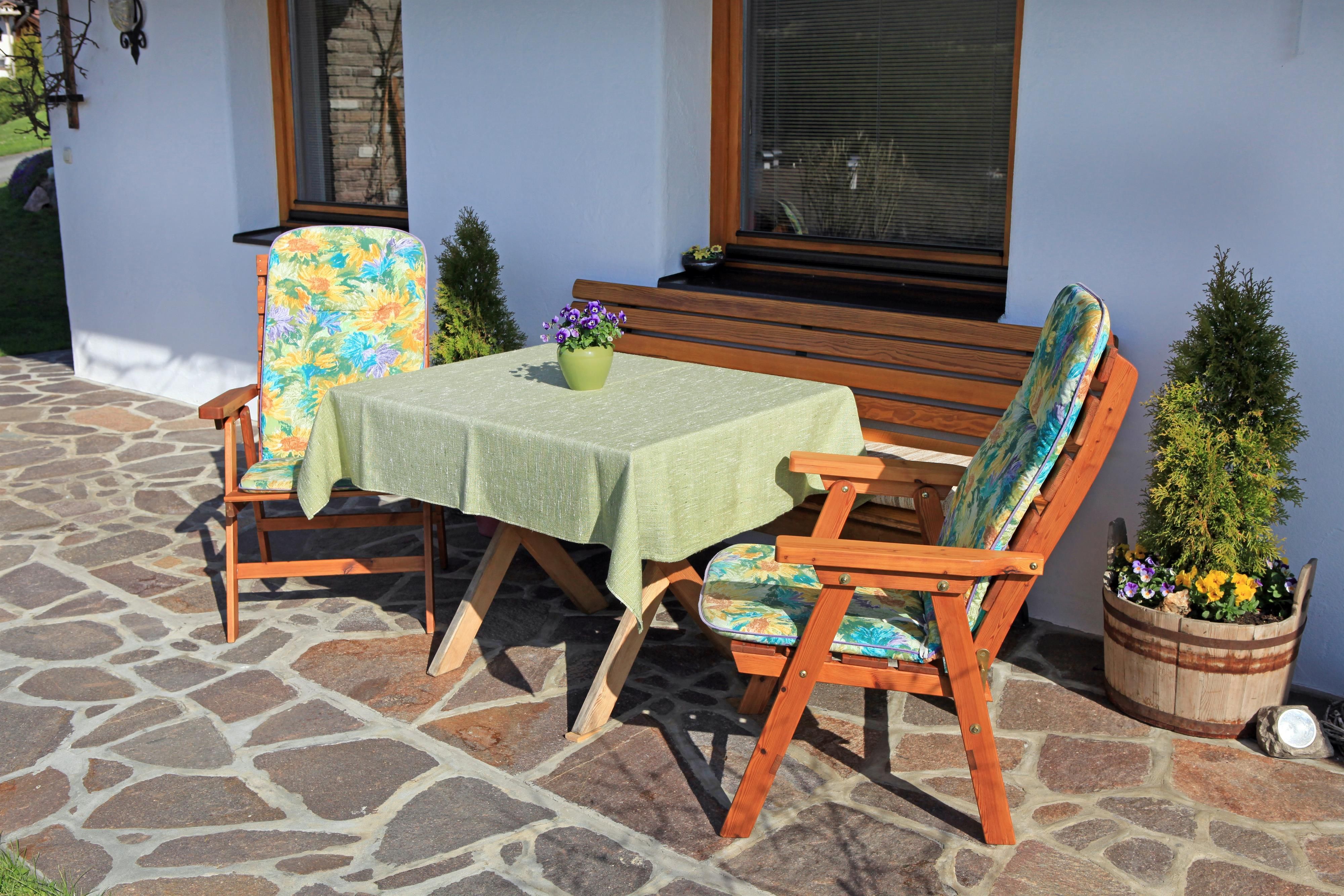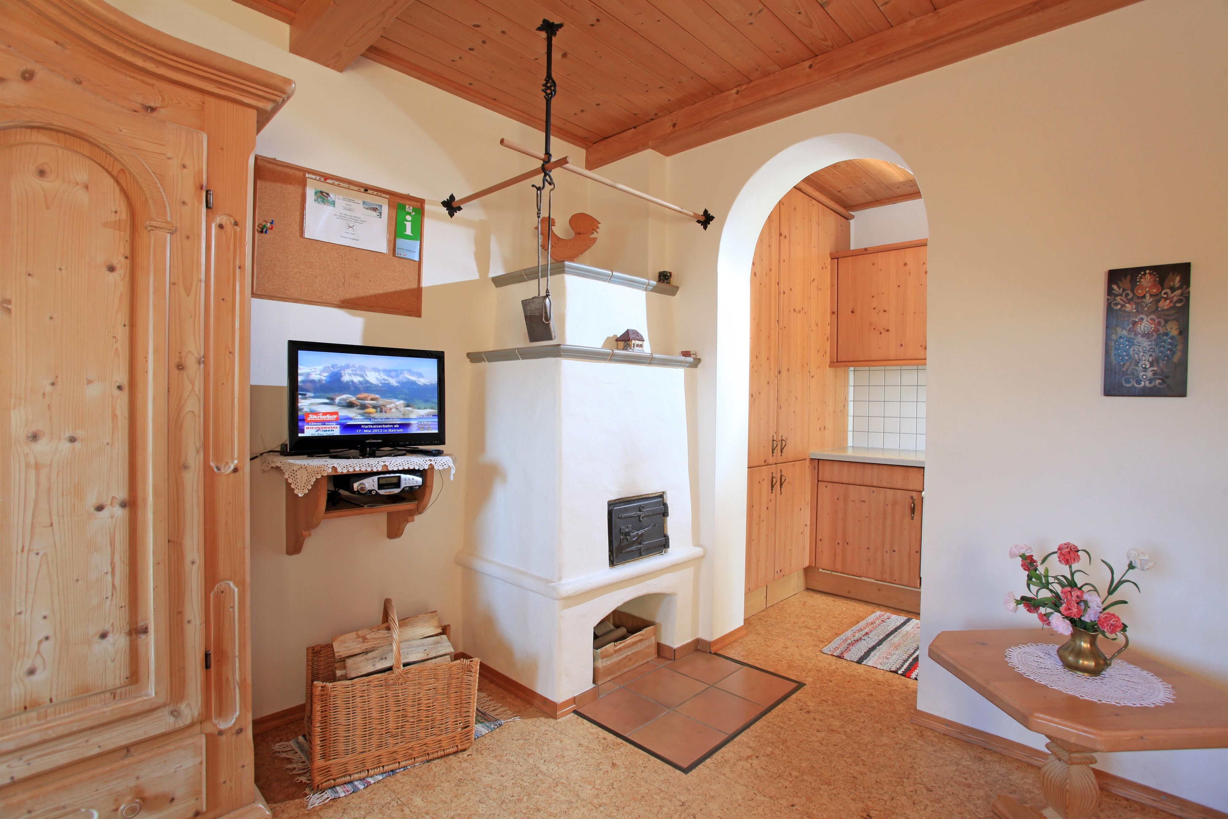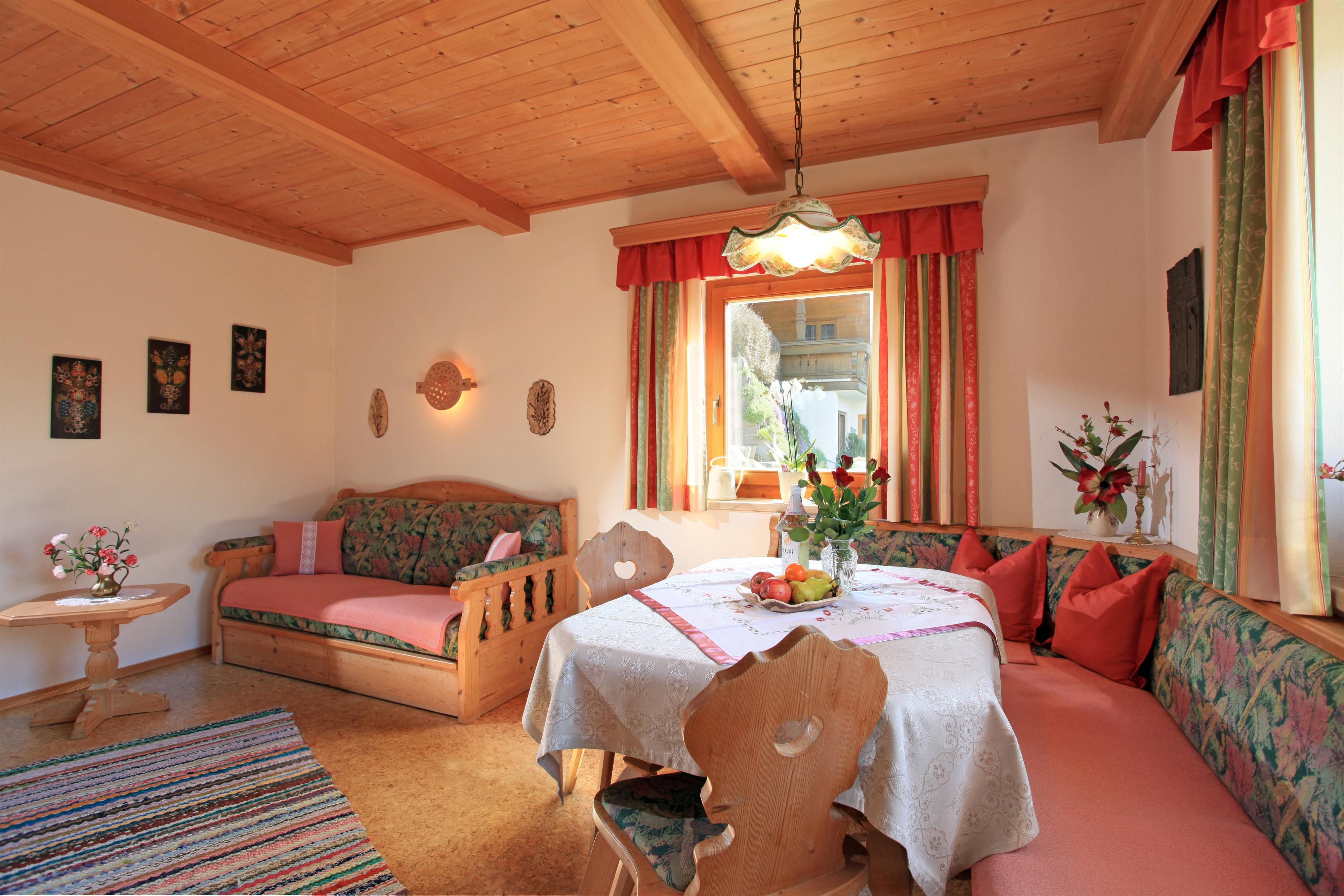 Unser Haus liegt auf einer Anhöhe sehr sonnig und ruhig ca. 2 km vom Ortszentrum entfernt.Das Appartement ist rustikal mit Holzmöbeln, Korkboden und Kachelofen eingerichtet!Besonderheiten: Tiroler Tageszeitung