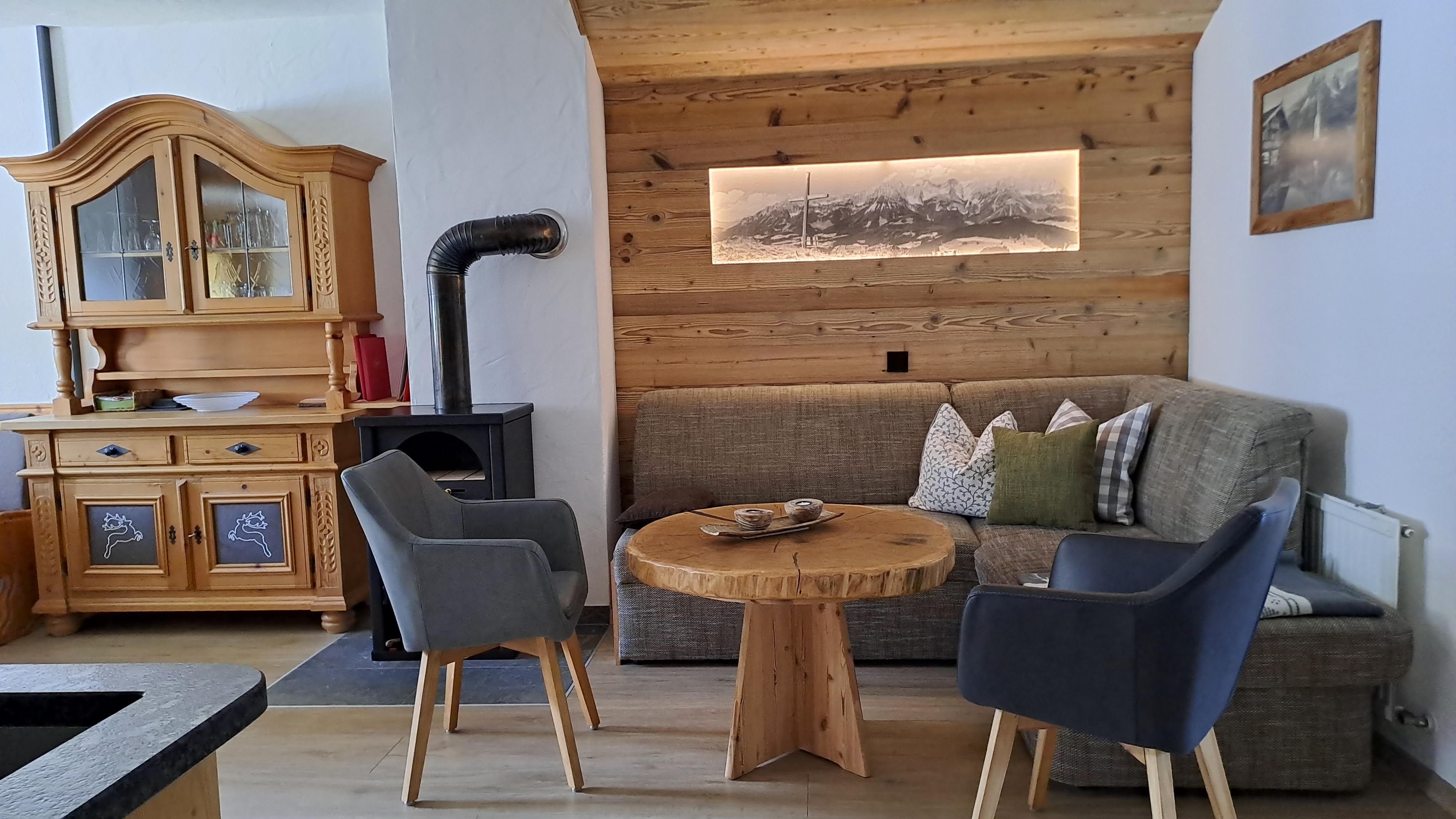 Unser Haus liegt in sonnig, ruhiger Lage mit Blick zum Wilden Kaiser (ca. 1 km vom Zentrum) ein idealer Ausgangspunkt für schöne Wanderungen. Im Haus befinden sich 2 Ferienwohnungen, mit Balkon oder Terasse, die gemütlich mit Naturholzmöbel eingerichtet sind, teilw. mit 2 Schlafzimmern aus Zirbenholz für einen erholsamen Schlaf, Echtholzböden für Allergiker, Wohnraum mit Wohnlandschaft, gr. Essecke mit Kaminofen, Kabel TV, Radio, Küche komplett - ausgestattet inkl. Geschirrspüler und Mikrowelle. Brötchenservice! Liegewiese und Terasse mit Blick zu "Wilden Kaiser",. Im Winter- "Schipiste in unmittelbarer Nähe" Schibushaltestelle gegenüber unserem Haus.