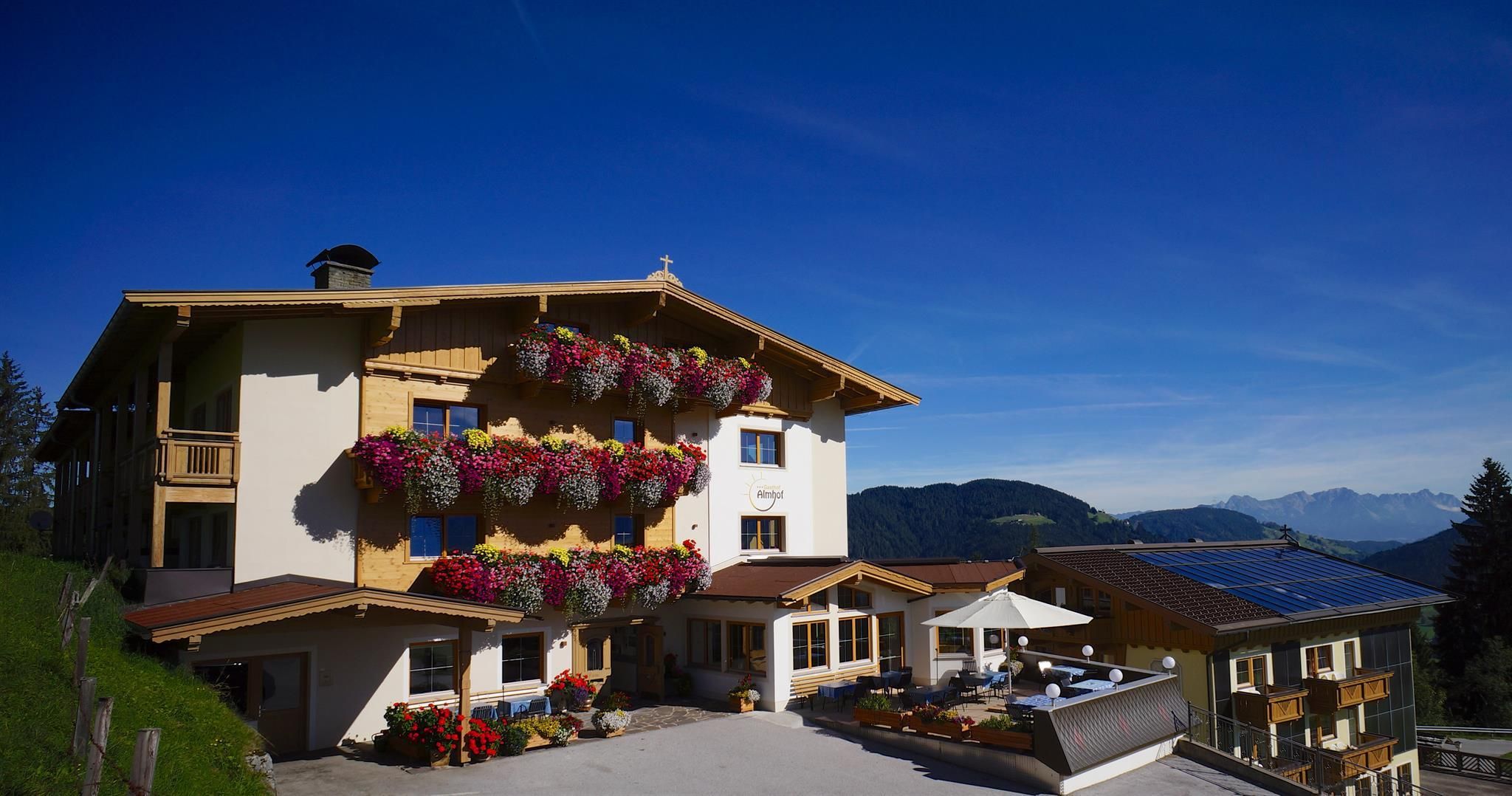 Ankommen - Abschalten - Auftanken Der Almhof liegt auf 1173m Seehöhe im idyllischen Ort Thierbach, in bester Panoramalage inmitten der Kitzbüheler Alpen.Seit mehr als 5 Jahrzehnten: innovativ, liebevoll und qualitätsbewusst von der Familie Gruber geführt. Deshalb dürfen wir auch seit 2016 das Dekret "Tiroler Traditionsbetrieb" tragen.Als Familienbetrieb versuchen wir jeden Tag aufs Neue dem Gast einen unvergesslichen Aufenthalt zu bieten.Verwöhnt werden Sie durch unsere bodenständige Küche mit zahlreichen Produkten aus der eigenen Landwirtschaft.Entspannen Sie in unserem neuen Indoor-Pool mit Sprudelliege und im AlmSPA. Dort warten Finnische Sauna, Bio-Zirben-Sauna, Dampfbad, Infrarotkabine, Erlebnisduschen und Wasserbetten auf Sie.