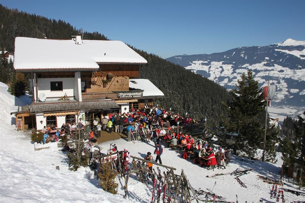 Im Kohleralmhof am Fügenberg ist immer was los – auf 1200 Metern Seehöhe heißen wir jugendliche Reisegruppen, Vereine sowie Ski- und Wandergruppen im Zillertal herzlich willkommen!Der Kohleralmhof liegt direkt an der Mittelstation des Skigebietes Spieljoch und überzeugt nicht nur mit seiner idealen Ausgangslage für vielfältige Aktivitäten im Sommer- und Winterurlaub, sondern ist mit seinem großzügigen Bettenangebot und urigem Stil ideal für größere Reisegruppen. Genießen Sie die Talabfahrt zur Spieljochbahn oder entdecken Sie die neue Naturrodelbahn und rodeln Sie bis vor die Haustüre. Im 10 Fahrminuten entfernten Zentrum von Fügen finden Sie verschiedene Einkaufsmöglichkeiten, Cafés und Restaurants. Die Zimmer des Kohleralmhofs sind im traditionellen Tiroler Stil eingerichtet und bieten Platz für bis zu 70 -80 Personen. Unsere Doppelzimmer verfügen über eine Etagendusche und –WC. Die Mehrbettzimmer bieten Platz für bis zu 10 Personen und sind mit Dusche und WC ausgestattet. Manche Zimmer bieten Ihnen einen herrlichen Sonnenbalkon mit Blick auf die umliegenden Berge. Kulinarisch verwöhnen wir Sie je nach Wunsch – ob Frühstück, Halb- oder Vollpension – mit einem ausgiebigen Vitalfrühstück und einem 3-Gänge-Menü am Abend. Genießen Sie im Urlaub in Reisegruppen ausgelassene Abende in einer unserer gemütlichen Stuben oder relaxen Sie auf unserer Sonnenterrasse. Jugendliche Gäste können sich beim Tischtennis austoben, im Aufenthaltsraum Fernsehen oder im Partyraum eine heiße Disconacht veranstalten. Luxuriösen Hüttenurlaub können Sie in unserer Kohler Hütte verbringen. Die neu renovierte Selbstversorgerhütte für bis zu 8 Personen liegt 100 Meter neben dem Kohleralmhof und ist mit einer vollausgestatteten Kochecke sowie einer herrlichen Sauna ausgestattet. Ein Parkplatz, Skiraum sowie WLAN werden Ihnen bei beiden Unterkünften kostenlos zur Verfügung gestellt. Im Kohleralmhof können Sie gegen einen kleinen Aufpreis auch gerne Ihren Hund mit in den Zillertal-Urlaub nehmen. Entdecken Sie im Sommer die vielfältigen Wanderwege und Mountainbike-Touren des Wandergebietes Spieljoch, die Sie alle ab der Unterkunft erkunden können. Jugendgruppen erwarten in der nur 10 Autominuten entfernten Erlebnistherme Zillertal in Fügen verschiedene Rutschen und ein Wellenbad, während Erholungssuchende im Wellnessbereich entspannen können. Im Winter befinden Sie sich mitten im Skiparadies Zillertal und können ab Haus das Skigebiet Spieljoch mit über 107 Pistenkilometer entdecken. Zwischen der Panoramabahn Geols und dem Skigebiet Hochfügen-Hochzillertal pendelt der kostenlose Skibus, der Sie innerhalb von 10 Fahrminuten zu weiteren Skipisten bringt. Zum Ausklang eignet sich vor allem Après-Ski auf der Skihütte, die auf 1600 Meter und direkt an der Talabfahrt zur Mittelstation liegt. Genießen Sie aufregende Urlaubstage im Kohleralmhof im Zillertal, wo Gastfreundschaft gelebt wird!