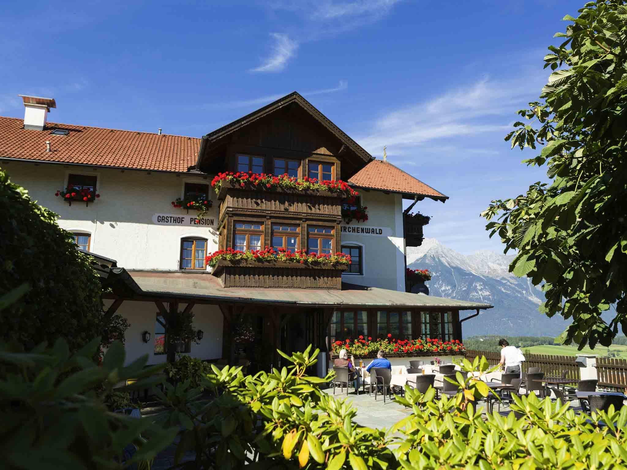 Der Gasthof Lärchenwald in unmittelbarer Nähe zur Gondelbahn bietet insgesamt 13 Betten. Gäste genießen die hervorragende traditionelle Küche entweder in den Tiroler Bauernstuben oder im Sommer im Gastgarten mit Panoramablick.