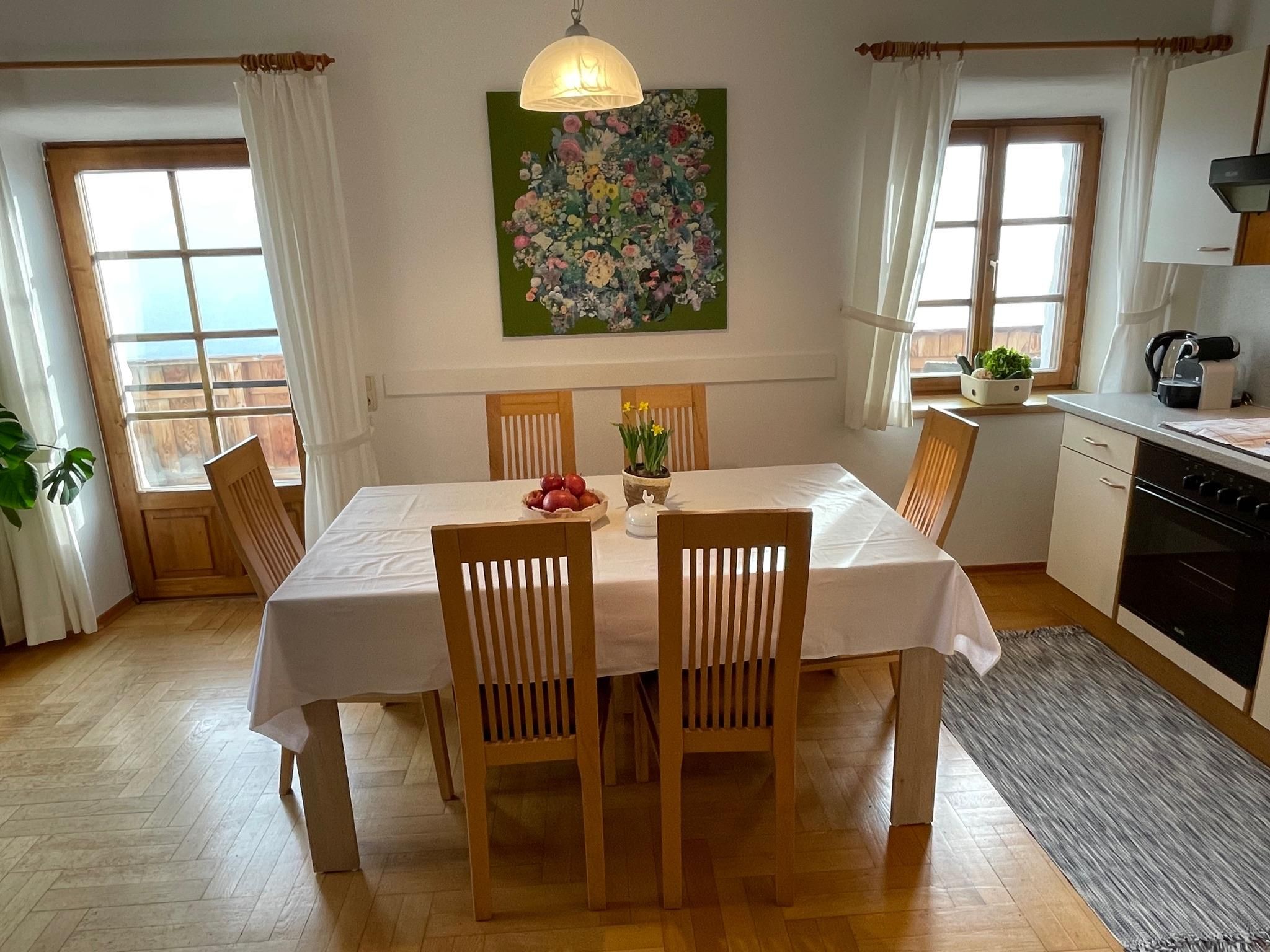 Eine Oase der Ruhe - im Sommer wie im Winter! Highlife ist vertagt, Seele baumeln lassen angesagt! Einen erholsamen Urlaub garantiert die Tatsache, dass das Haus abseits von Hektik und Trubel (Verkehr, Siedlungen, Lärm) hoch oben an der Sonnenseite, inmitten des Nuturjuwels der Osttiroler Berge, gegenüber den Lienzer Dolomiten, über dem malerischen Städtchen Lienz, gelegen ist. Die Ferienwohnung mit eigenem Hauseingang ist exklusiv mit Echtholzparkett ausgestattet.