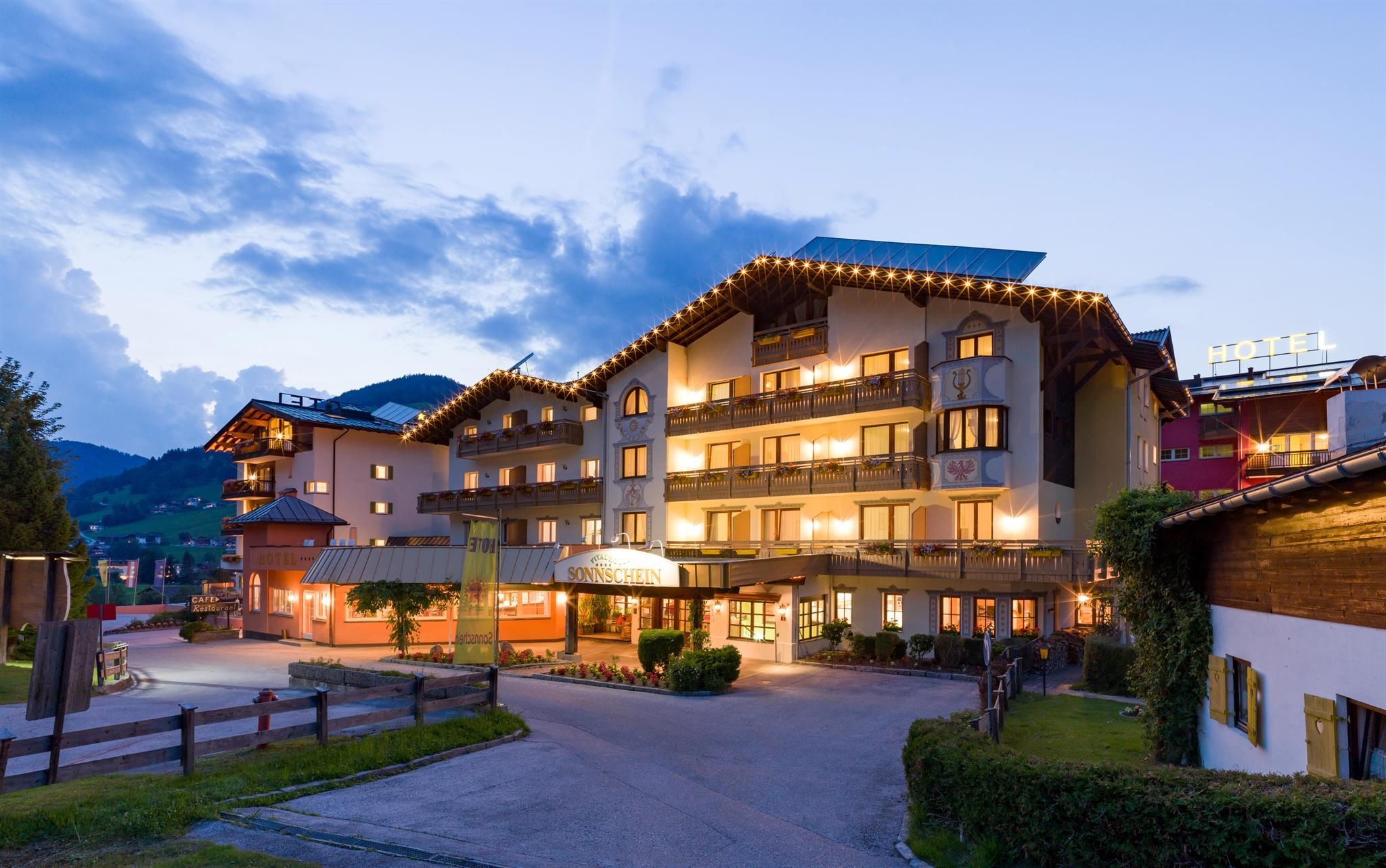 Herzlich Willkommen im 4-Sterne Hotel Sonnschein!In der wunderschönen Wildschönau gelegen und umgeben von saftigen Wiesen und einer hinreißenden Berglandschaft, fühlt man sich im Hotel Sonnschein gleich wie zuhause.Der bezaubernde Hotelpark mit Outdoor-Pool lädt im Sommer zum Verweilen ein, während im Winter Wanderwege, Loipen und Skipisten nur wenige Minuten entfernt sind. In unserem gemütlichen Hotel sind Sie weit weg von Hektik & Stress und doch immer in der Nähe des Geschehens.Kommen Sie uns besuchen und lassen Sie sich verzaubern. Ihre GastgeberEmily & Herbert Thaler