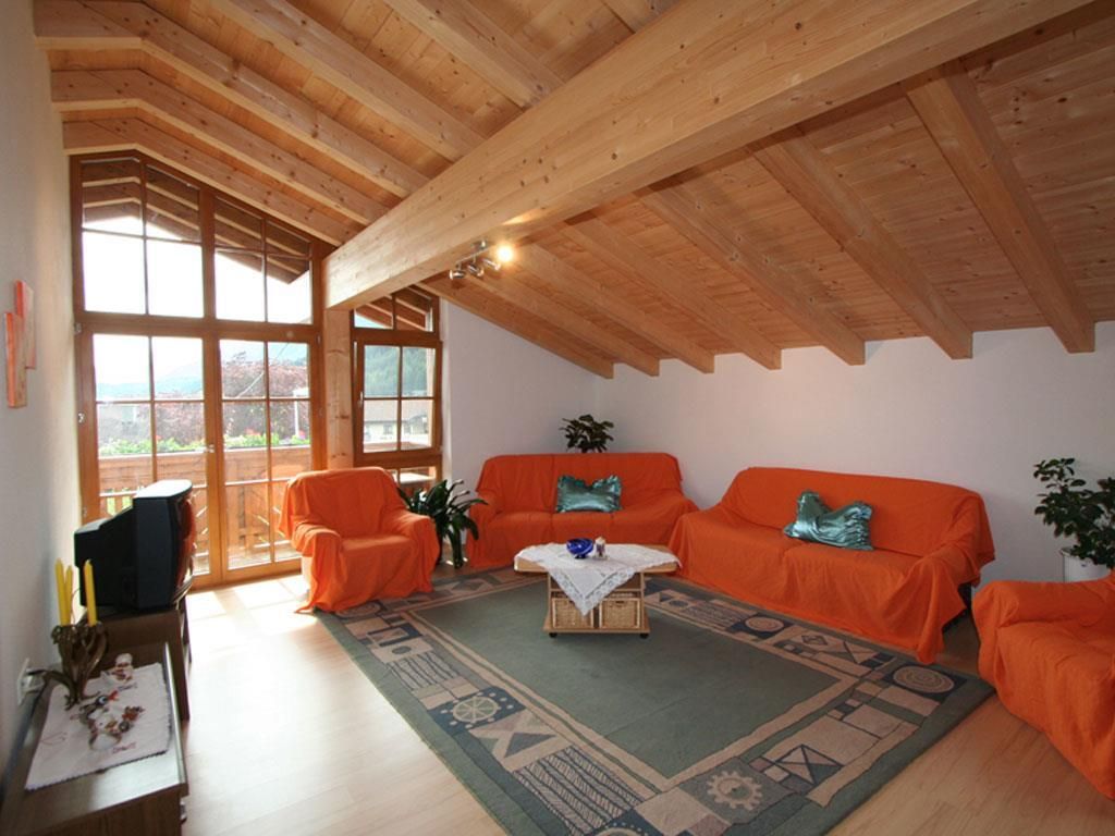 Die großzügige Ferienwohnung befindet sich im zweiten Stock. Sie verfügt über drei Schlafzimmer und bietet Platz für bis zu sechs Personen. Die Wohnung ist teilweise modern, teilweise mit schönen Bauernmöbeln eingerichtet. Besonders der Sichtdachstuhl im Wohnzimmer begeistert die Urlaubsgäste.