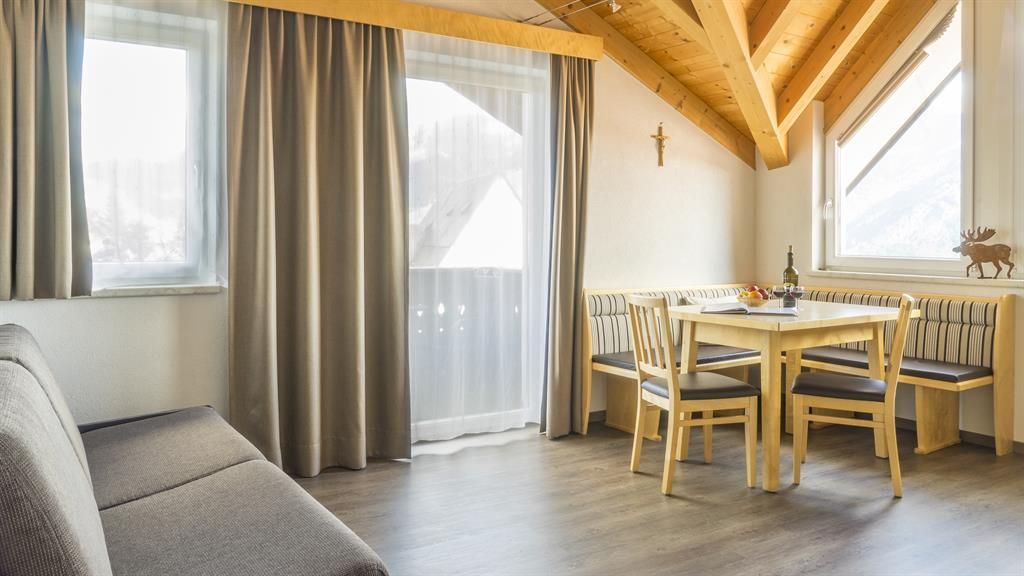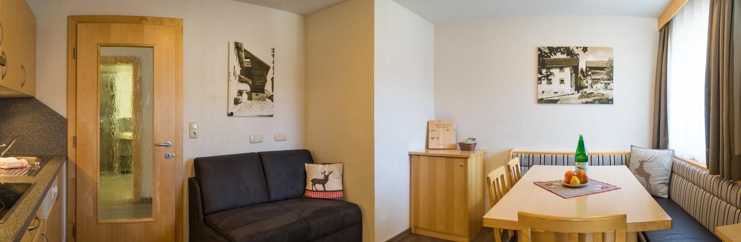 Unser gemütlicher Familienbetrieb liegt zentral ca. 5 Gehminuten von der Seilbahn entfernt. Unsere Appartements sind modernst eingerichtet, gemütliches Wohnzimmer, Sofa, Kabel -TV, Dusche u.WC, Internetzugangsmöglichkeit, Telefon, Wohnküche mit E-Herd,Mikrowelle,Geschirrspüler und Balkon. Wir bieten Brötchenservice und BIO-Produkte! Der Besuch in unserer hauseigenen Sauna ist gegen einer Tagesgebühr buchbar. Die Endreinigung wird separat verrechnet.Folgende INKLUSIV-Leistungen sind hervorzuheben:** Modernes beheiztes Skidepot direkt bei der Seilbahn** kostenlose Parkplatz (großteils in der Garage möglich) Gegen Zusatzgebühr** Saunabenützung (pro Appartement und Tag Euro 50,--) ** Super-Summer-Card pro erwachsene Person Euro 6,-- und pro Kind Euro 3,-- Aufzahlung