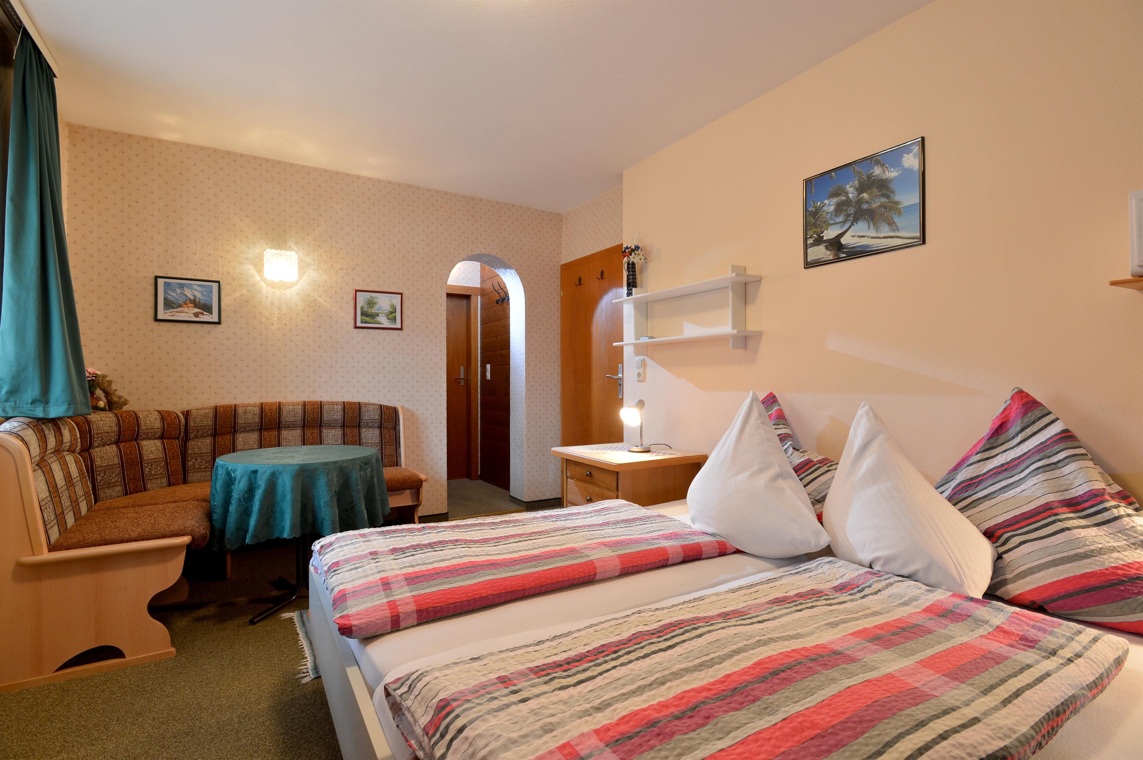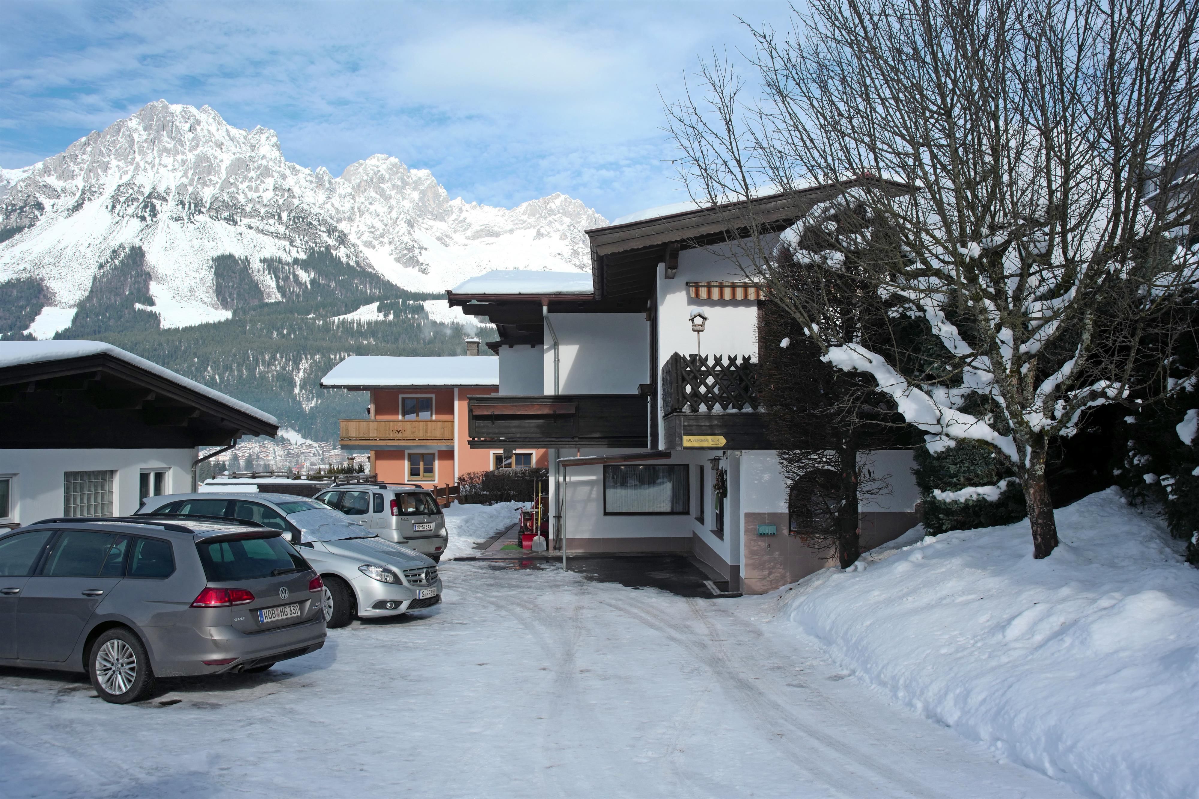 Unser Haus steht am Anfang einer schönen leichten Hanglage, in unmittelbarer Nähe der Gondelbahn zum Hartkaiser, dem Langlaufloipeneinstieg und der Skibushaltestelle. Es sind nur 6 Gehminuten zur Ortsmitte. Die Doppelzimmer sind mit Bad/Dusche/WC, Balkon, TV und Radio/W-Lan ausgestattet. Das Einbettzimmer hat einen seperaten Eingang mit kleinem Vorraum für Garderobe, ist mit DU/WC/TV/Radio und W-Lan/kleinem Kühlschrank und Wasserkocher ausgestattet, hat aber keinen Balkon. Wir bieten auch einen Aufenthalts- und Frühstücksraum mit Kühlschrank, Kaffeeküche und Fernseher an. Vom Balkon aus kann man das schöne Panorama vom Kaisergebirge und der Umgebung genießen. Im Sommer erleben Sie die herrliche Bergwelt vom Wilden Kaiser als Wander-, Rad-, E-Bike- oder auch als Klettergebiet. Aber auch mit dem Mountainbike können Sie so richtig loslegen - erleben Sie unzählige Touren, wie die Kathenrunde oder die Ellmauer Runde. Wer es lieber gemütlicher hat, der besucht das Ellmauer Kaiserbad mit Riesen-Rutschen, Schwimmbecken und kleinem Badesee oder erlebt einen unvergesslichen Golftag am Golfplatz Wilder Kaiser in Ellmau.Im Winter bezaubert Sie die wunderschöne, romantisch weiße Landschaft rund um und auf dem Wilden Kaiser. Herrliche Langlaufloipen, wie die Bichlloipe oder die Dorfloipe, genauso wie zahlreiche Winterwanderwege, warten hier auf Sie.