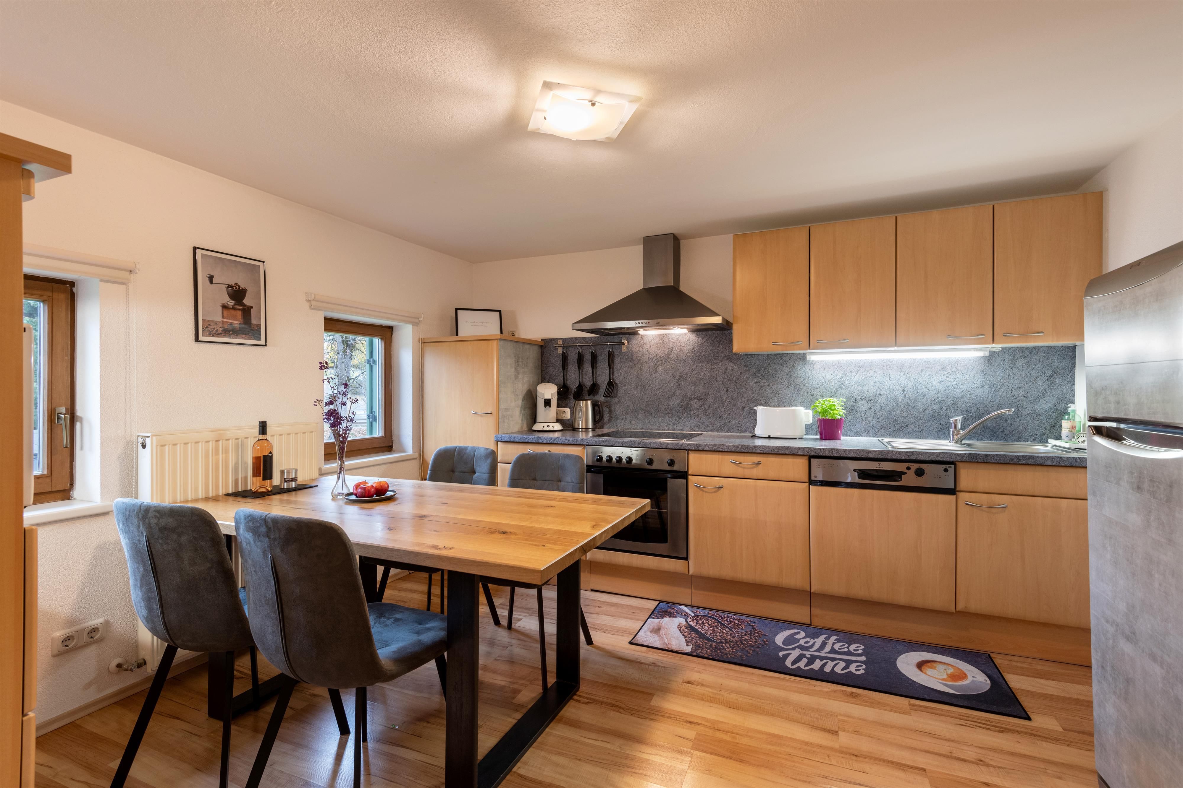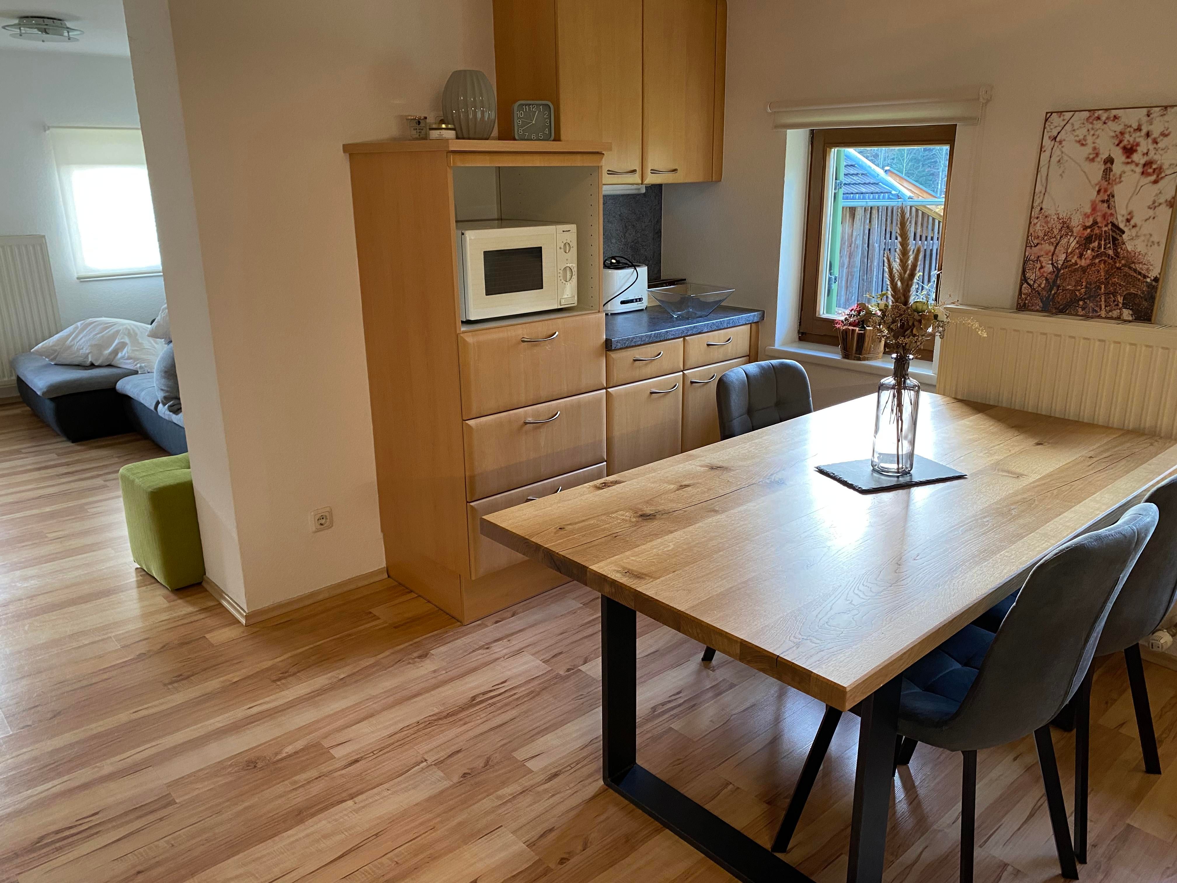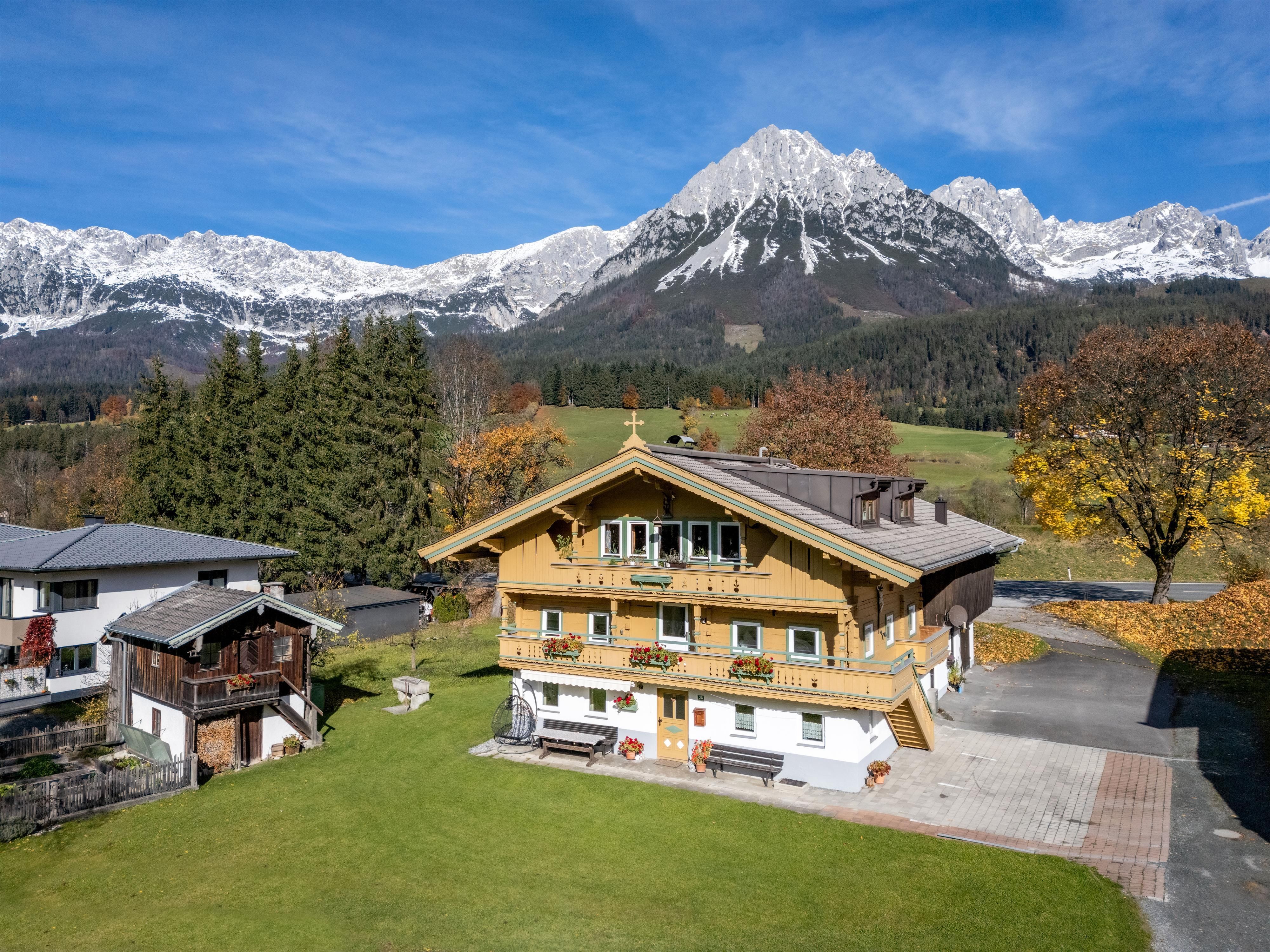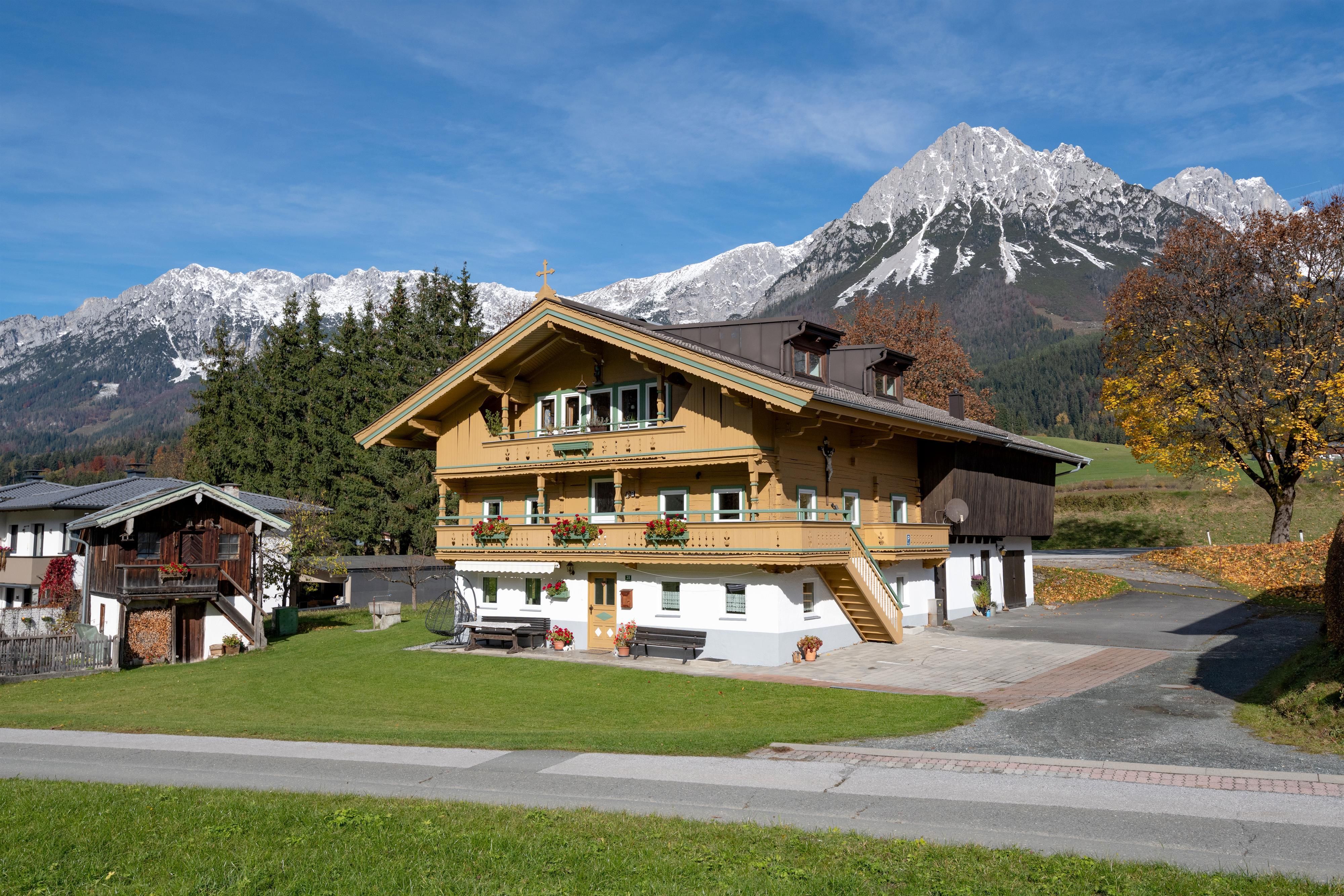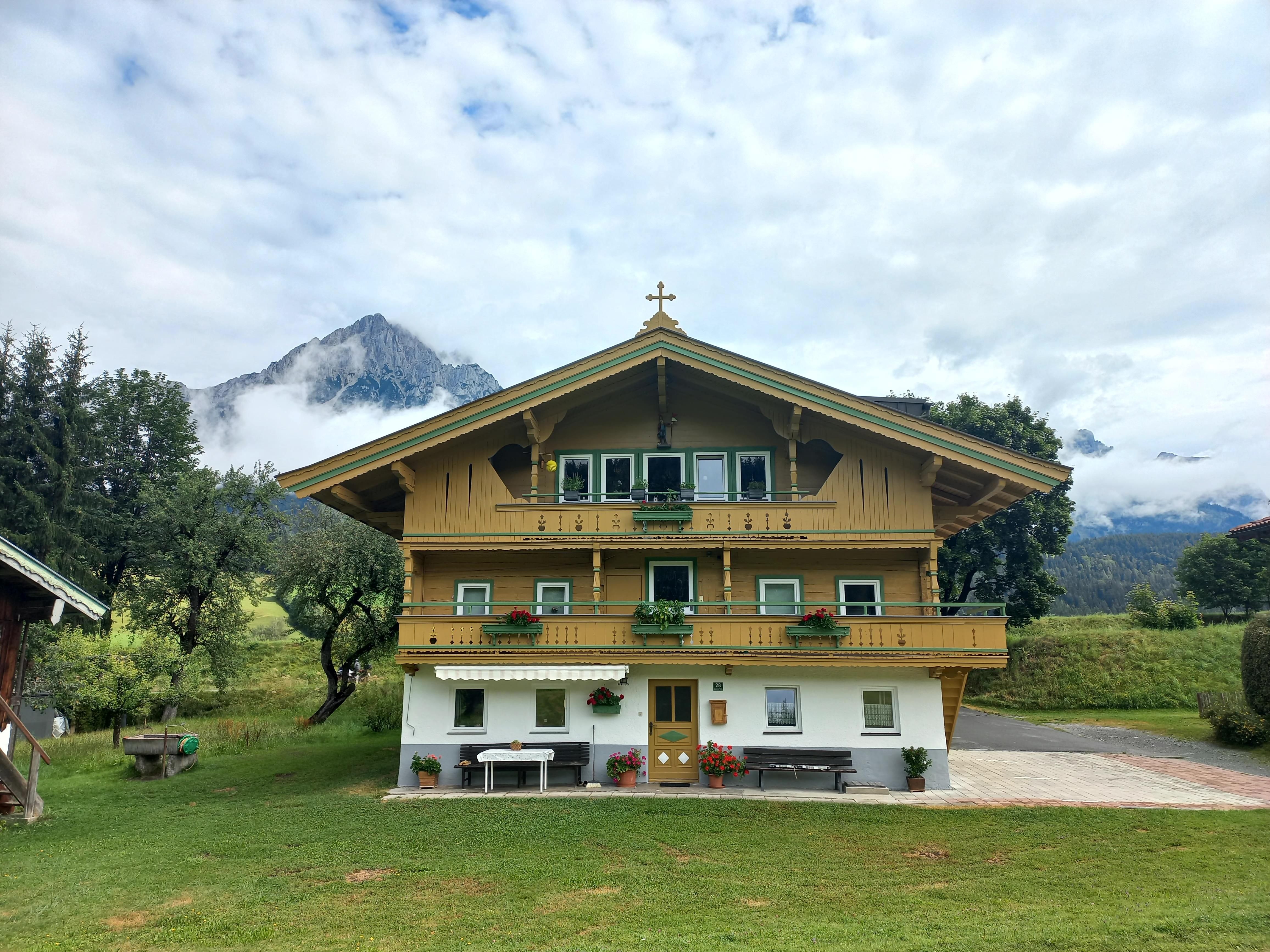 Herzlich willkommen im Gaberhel- Hof Der fast 300 Jahre alte Bauernhof hat schon viele Generationen beherbergt und so manches Naturereignis überstanden - wovon das an der Ostseite des Hauses angebrachte Holzkreuz zeugt. Die ersten Gäste wurden bereits in den 1950er Jahren bewirtet, damals noch unter sehr einfachen Bedingungen, jedoch mit viel Herzlichkeit. Den Charme und die Behaglichkeit des alten Hauses zu erhalten und zeitgemäßes Wohnen zu ermöglichen war bei jeder Renovierung vordergründig. Und renoviert wurde bei uns oft! Das Appartement "Ahorn" nimmt auf 74m2 den gesamten ersten Stock ein und ist ein gelungenes Beispiel dafür. Die Skibus Haltestelle ist direkt hinter dem Haus, ein Restaurant ist ca.100 Meter entfernt. Der nächstgelegene Supermarkt liegt am Ortsanfang von Ellmau und ist 500 Meter entfernt. Eine Besonderheit des Appartements ist der herrliche Ausblick in die freie Natur, den Sie vom Balkon aus genießen können. Winterwanderweg und Radweg sind in unmittelbarer Nähe. Einzigartig ist unser Lagerfeuer - Grillplatz. Ein lauschiges Plätzchen für stimmungsvolle Abende. Knisterndes Feuer, das Zirpen der Grillen und das Plätschern des Baches. Ein windgeschützter Sitzplatz inmitten der Natur, nur 3 Gehminuten vom Haus Gaberhel entfernt und ganz allen fuer unsere Gaeste.