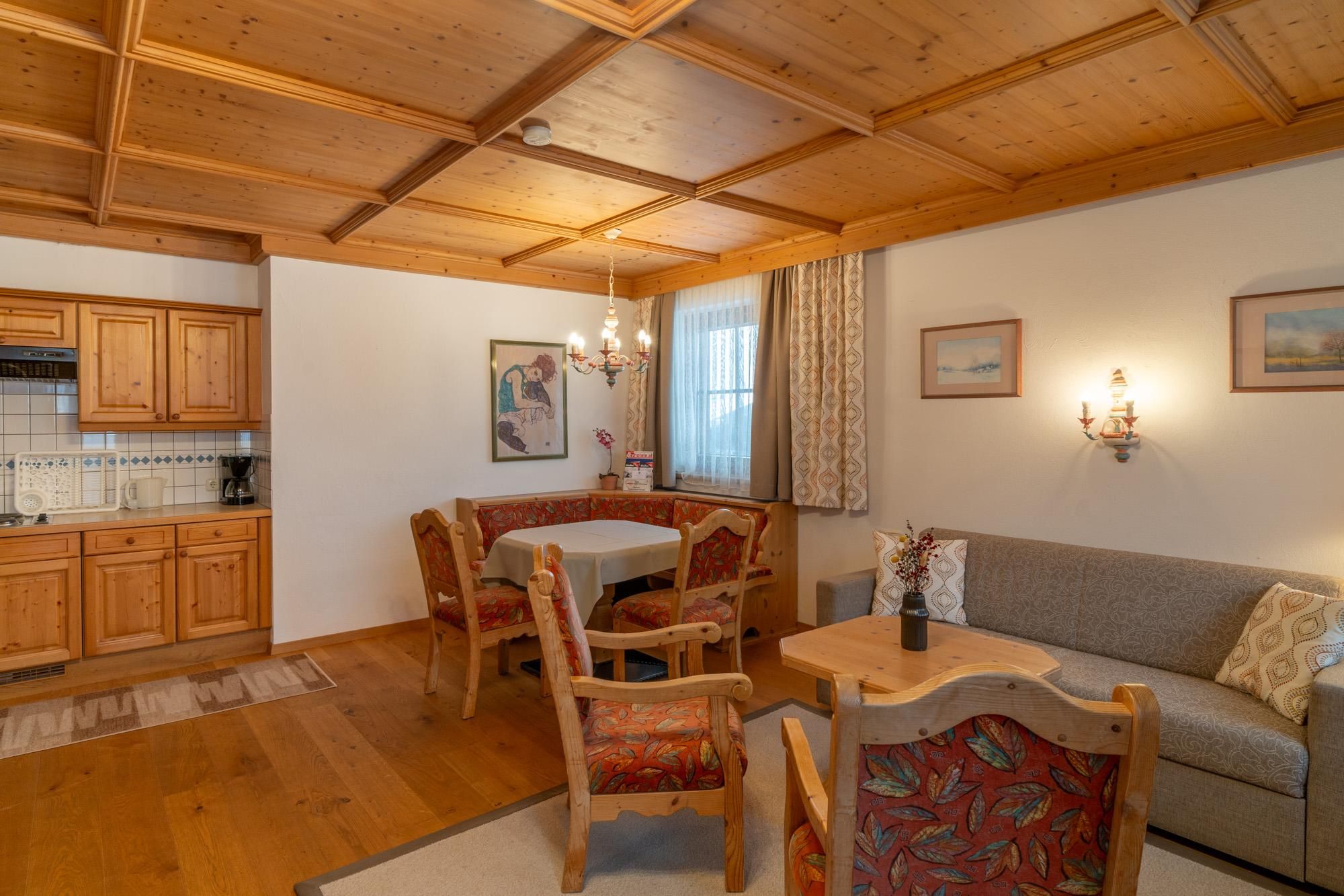 Unser Haus Garden mit 6 gemütlichen Studios liegt direkt gebenüber dem Hotel Hochfilzer im Herzen von Ellmau. Die Studios verfügen alle über eine Tee-/Kaffeeküche (keine Kochmöglichkeit), getrennte Wohn-/Schlafbereiche, Bad, getrenntem WC sowie Balkon und bieten somit die perfekte Unterkunft für Familien mit Kleinkindern. Das reichhaltige Frühstücksbuffet im Haupthaus kann auf Wunsch mit dazu gebucht werden.BITTE BEACHTEN Sie, dass im Haus Garden keine Hunde erlaubt sind.Außerdem befindet sich kein Lift im Haus Garden, alle Studios sind nur über Stiegen erreichbar, keine Kochmöglichkeit.