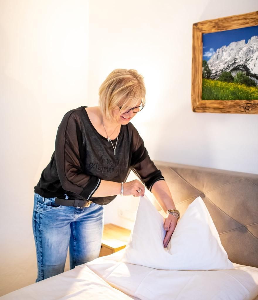 Herzlich willkommen, heißt es in unserem Haus und so sollten Sie sich auch fühlen.Ankommen. Eintreten. Wohlfühlen.Unser Haus liegt in zentraler und ruhiger Lage, in unmittelbarer Nähe aller sportlichen Aktivitäten und Einkaufsmöglichkeiten. Jeden Montag im Winter Glühwein.Im Sommer laden wir Sie einmal zu Kaffee und hausgemachten Kuchen ein (mind. Aufenthalt 7 Tage).Aus unseren Wasserhähnen fließt "GRANDER WASSER".Unser Haus hat ganzjährig für Sie geöffnet.Kurzaufenthalte willkommen.In unseren wunderschön eingerichteten 2 Appartements für 2-5 Personen wohnen Sie ganz familiär am Fuße des Wilden Kaisers, in zentraler und doch ruhiger Lage. Pro Appartement ein Parkplatz! Sehr gerne können Sie aber mit mehreren Autos anreisen und auf den öffentlichen Parkplatz, ca. 200 m entfernt, Ihr Auto abstellen.Den Sommer erleben Sie bei uns in Ellmau am Wilden Kaiser herrliche Radtouren oder Wandertouren auf zahlreichen Bike-, Rad- und Wanderwegen im Kaisergebirge. Nach einem aktiven Tag auf dem Hartkaiser oder im Kaiserbad in Ellmau oder auch nach einer spektakulären Partie Golf am Golfplatz Wilder Kaiser mit 27 Loch, freuen wir uns, Sie auf einen hausgemachten Kuchen einzuladen. Im Winter starten Sie mit der Hartkaiserbahn in einen zauberhaften Wintertag beim Skifahren, Snowboarden oder Tourengehen. Es erwartet Sie eine herrliche Winterlandschaft, zauberhafte Hänge und jede Menge Hüttengaudi. Langlaufloipen direkt vor der Türe oder auch jede Menge Winterwanderwege freuen sich auf Ihren Besuch.Wir würden uns sehr freuen Sie in unserm Haus begrüßen und kennen lernen zu dürfen! Stornobedingungen auf Anfrage!