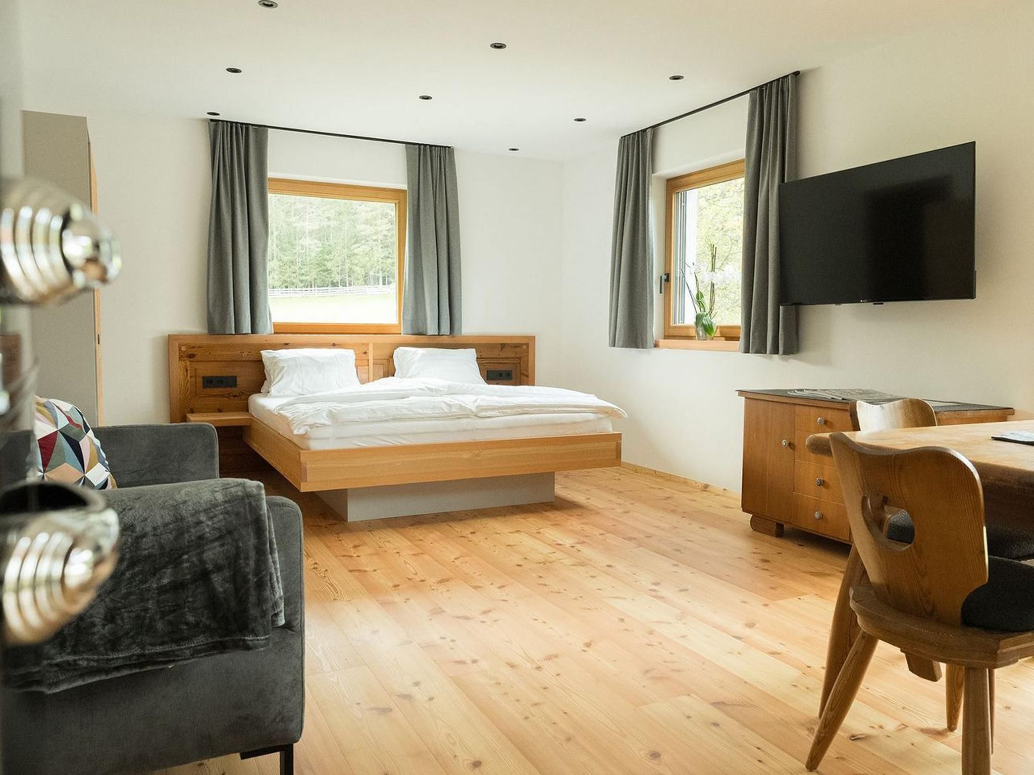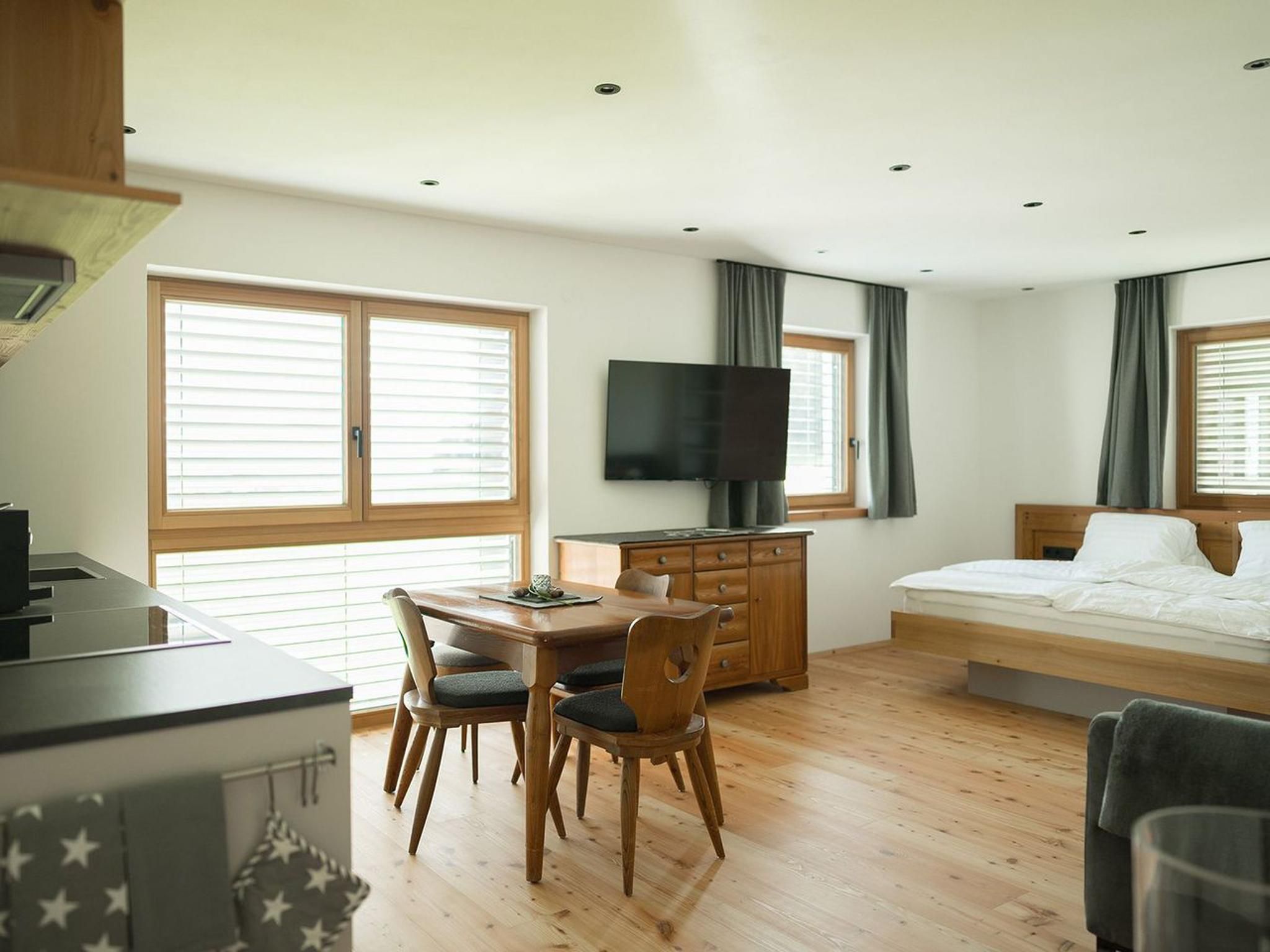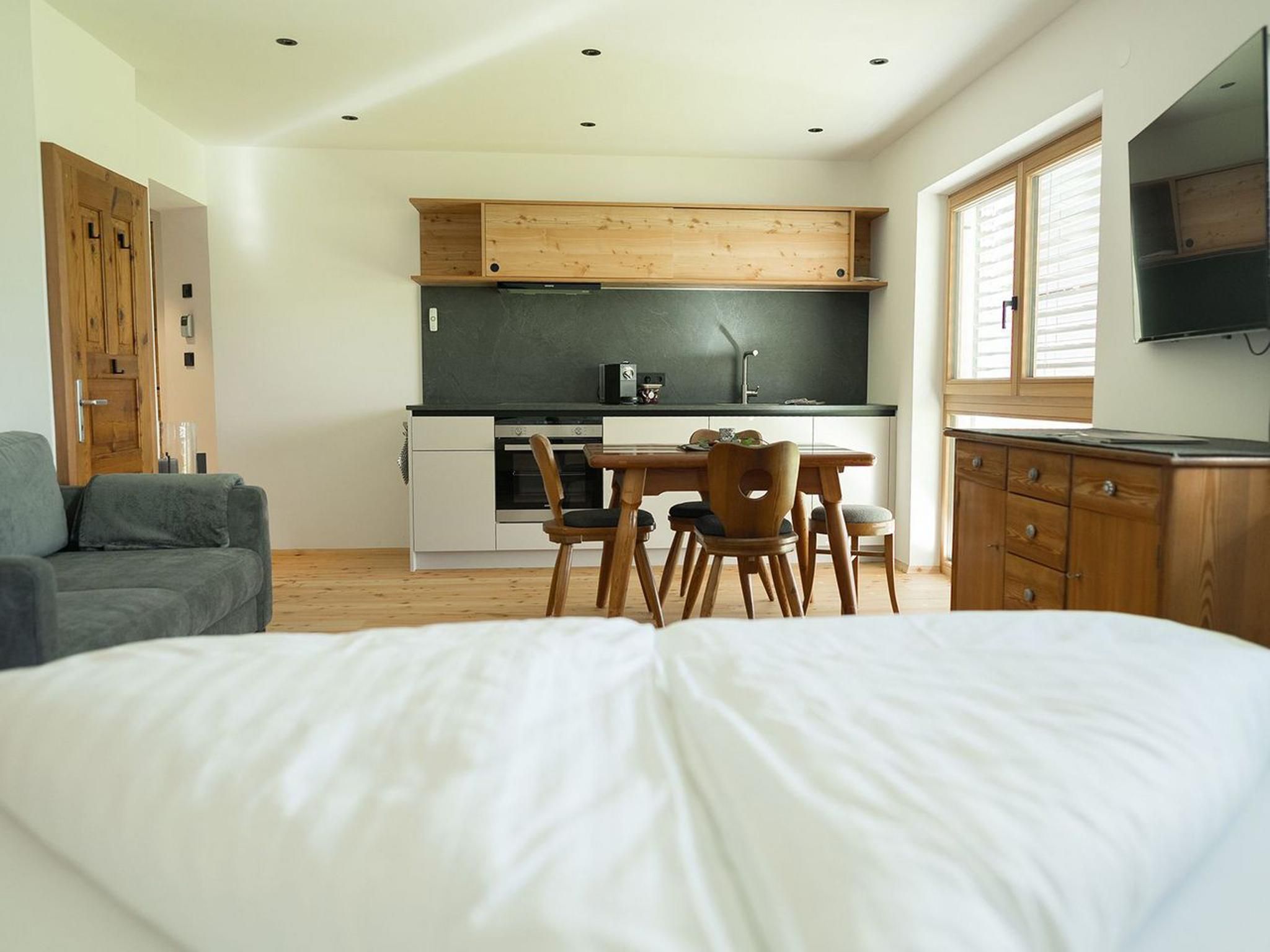 Appartments Berta und Burgi (je 39 m² / 2-4 Personen) Die Appartements Berta und Burgi sind ideal für 2 bis 4 Personen und bieten jeweils ein komfortables Wohn-/Schlafzimmer mit Doppelbett, einer ausziehbaren Couch für bis zu zwei weitere Personen sowie Flat-TV. Die voll ausgestatteten Wohnküchen verfügen über eine Spülmaschine, einen Elektroherd mit 4 Kochfeldern, ein Backrohr, einen Kühlschrank mit Gefrierfach, eine Pad-Kaffeemaschine und Geschirr. Die modernen Badezimmer bieten eine Dusche, einen Föhn und Handtücher für den Aufenthalt. Kostenloses WLAN ist ebenfalls verfügbar.