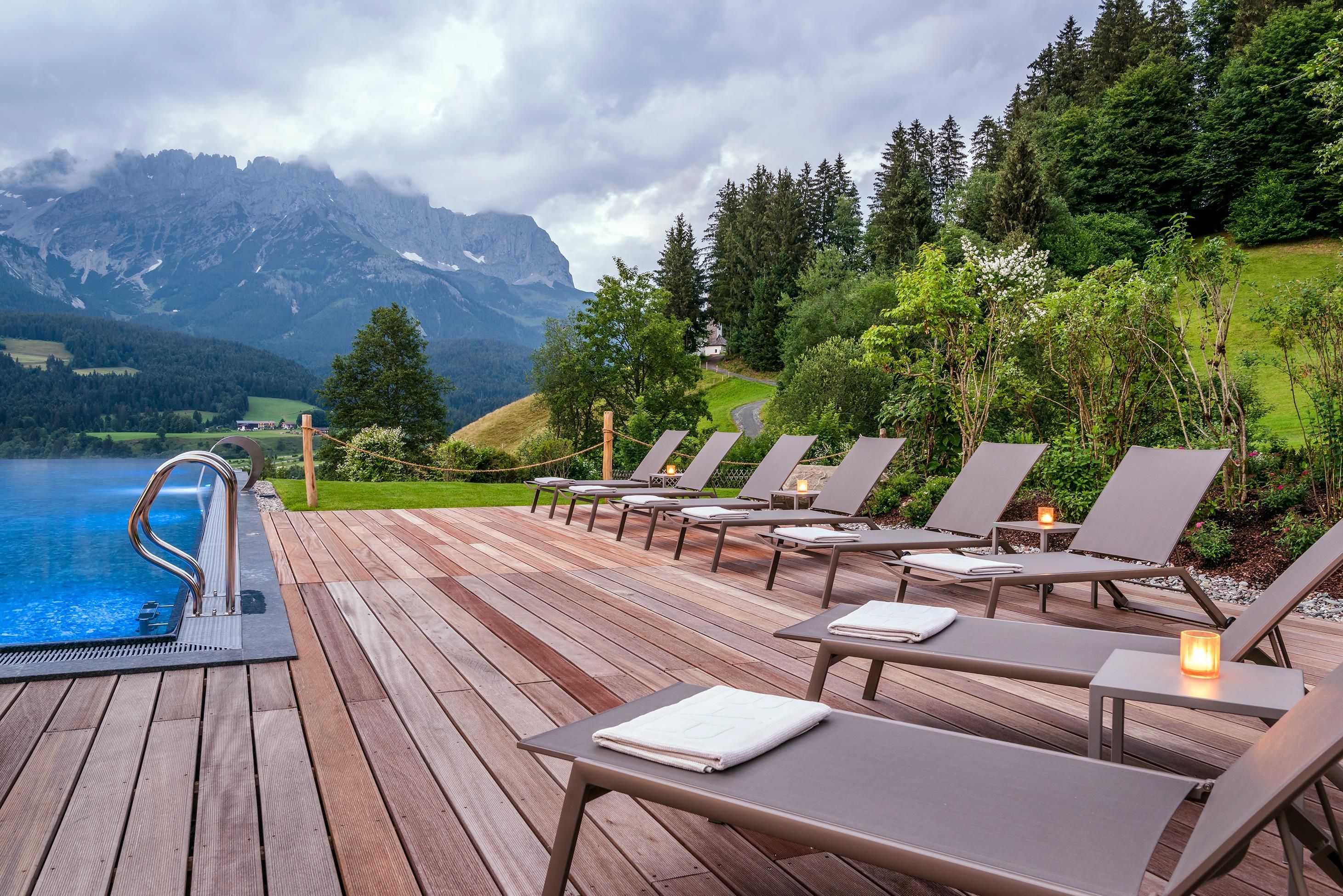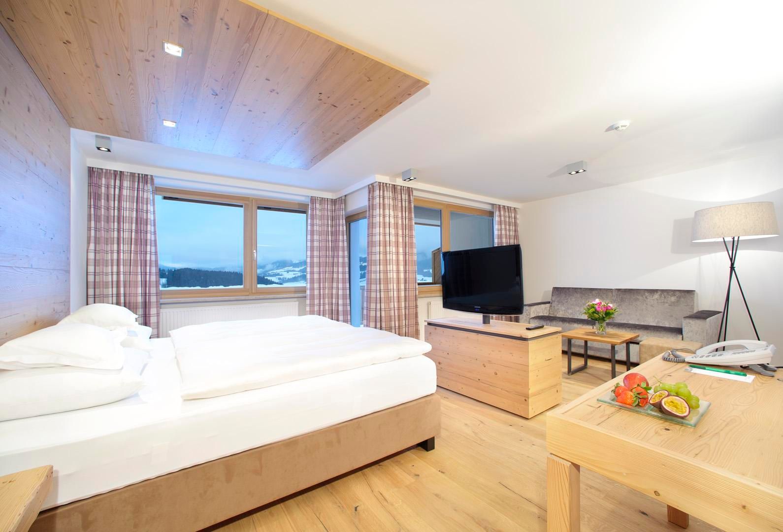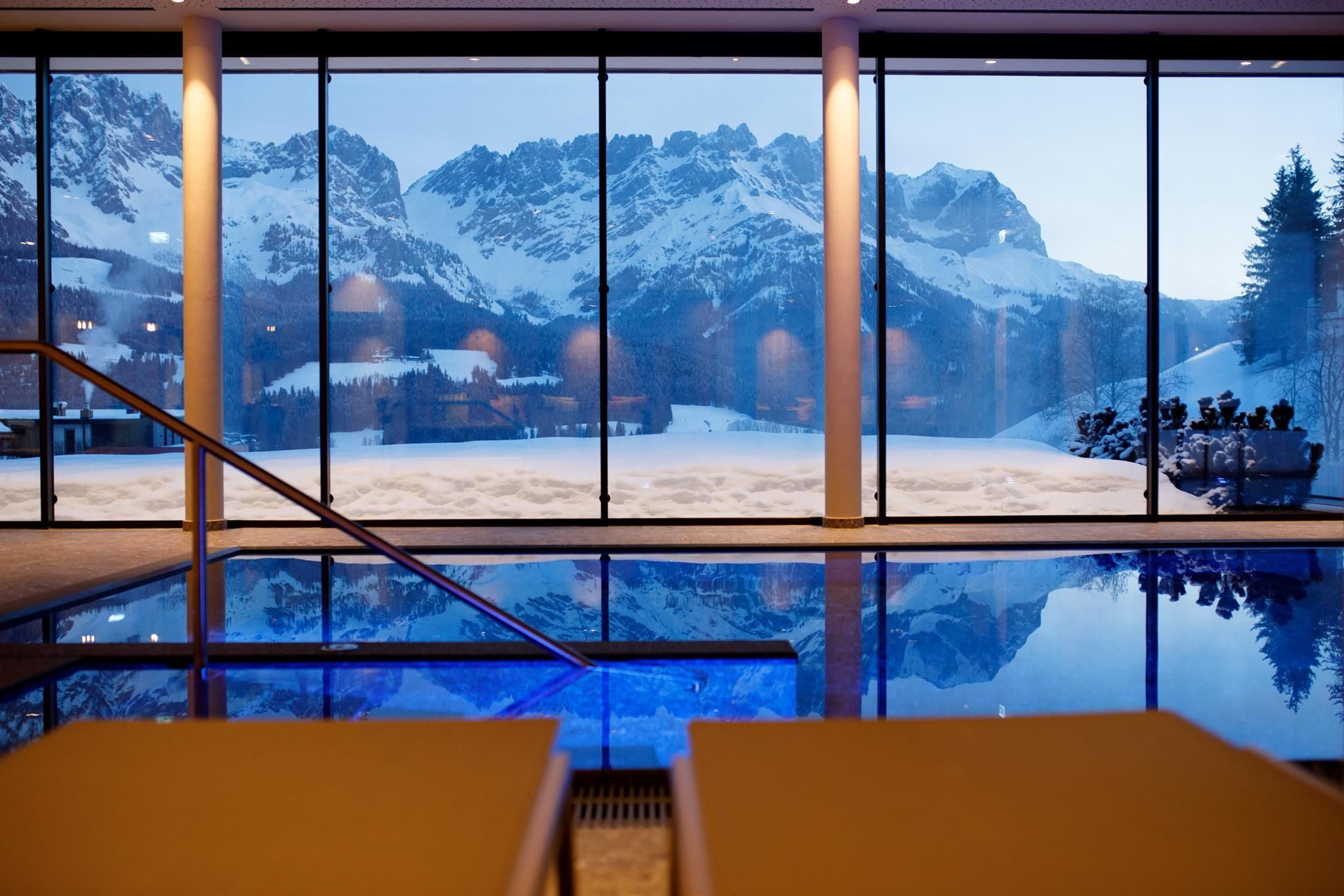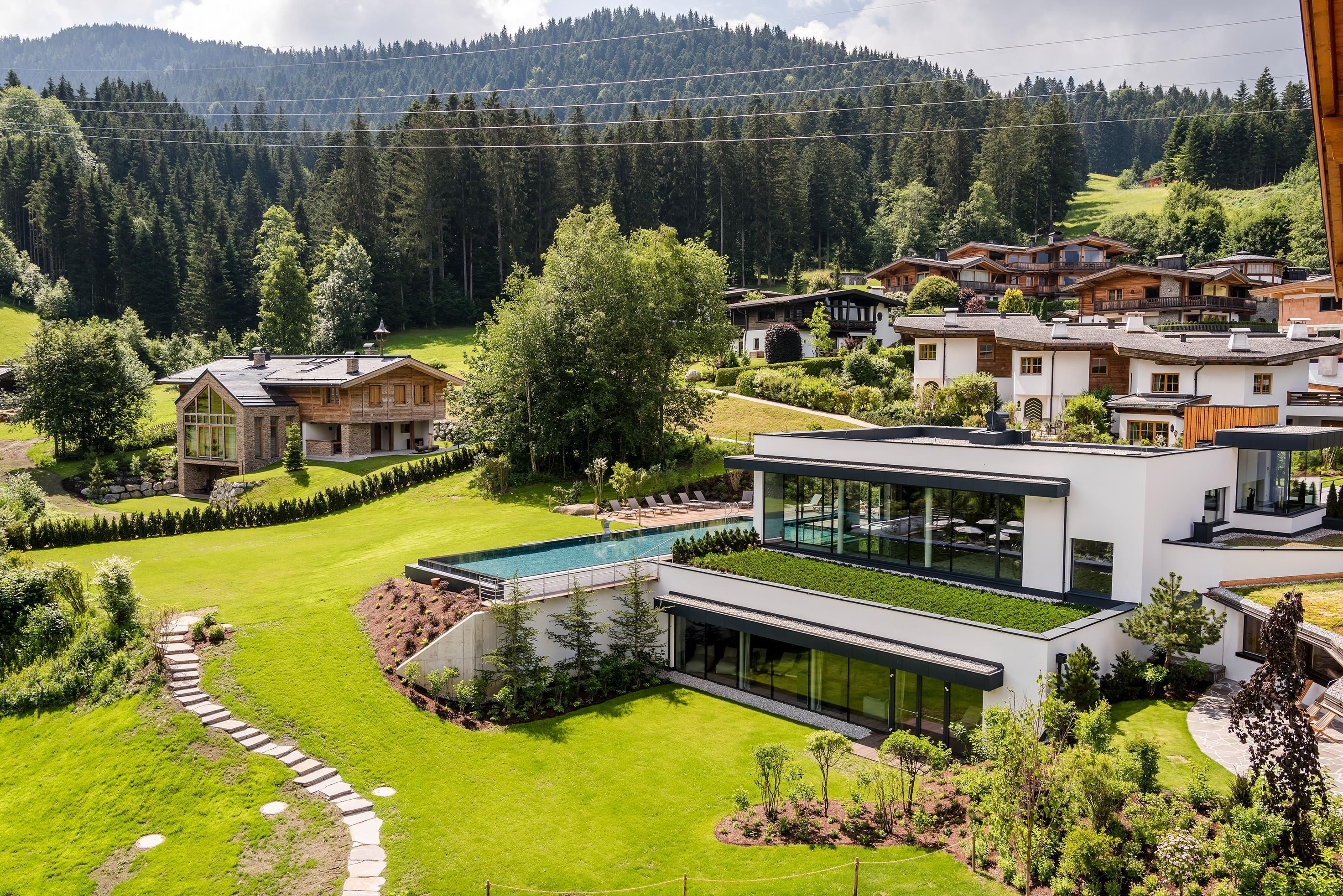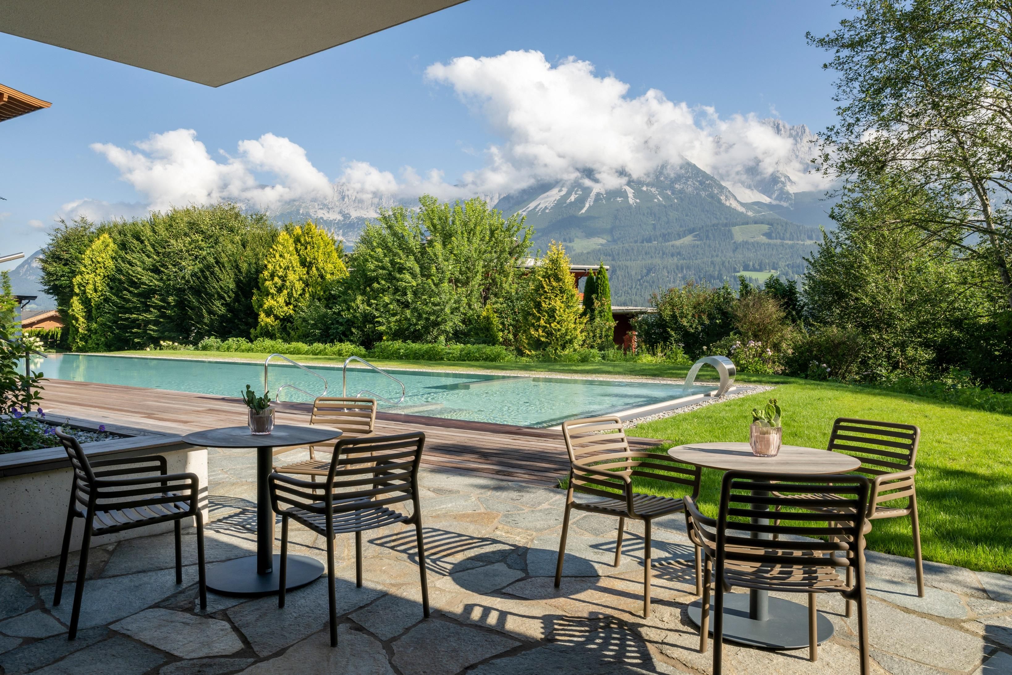 Ein Ort zum Verlieben. In dem von Familie Windisch sehr sorgsam und herzlich geführten, weitläufigen Urlaubsdomizil am Fuße des Wilden Kaisers in Tirol lässt sich das Leben genießen. Das Haupthaus bietet mit geräumigen Doppelzimmern und elegant-luxuriösen Suiten jedem Gast individuelle Räumlichkeiten.Urlaub mit allen SinnenDas Gourmetrestaurant im Hotel DER BÄR - prämiert von Falstaff - serviert regionale sowie internationale Kreationen in gewohnter Spitzenqualität. Sehr wohl fühlt man sich auch an der modernen Hotelbar, wo edle Tropfen und feine Drinks den Abend perfekt ausklingen lassen. Bäriger geht’s nicht. Genuss auf hohem NiveauDer 20 m lange, ganzjährig mit 31° C beheizte Infinity-Pool verspricht grenzenlose Erholung vor Traumkulisse – ist aber „nur“ ein Highlight von vielen! Denn das gesamte Badehaus mit Hallenbad, Saunalandschaft, Ruheraum mit grandiosen Panoramafenstern raubt Genießern den Atem. Ob drinnen oder draußen – hier wird man immer mit einem einmaligen Ausblick auf den Wilden Kaiser belohnt. Auch in den Zimmern und Suiten, die alpinen Charme mit modernem Chic gekonnt kombinieren, gehört der majestätische Berg sozusagen zum Interieur. Und die herrliche Natur der Kitzbüheler Alpen, diese kaiserliche Landschaft, ist zu jeder Jahreszeit ein wunderbarer Ort, um neue Kraft und Energie zu tanken. Im Sommer erhalten Golfer am nahe gelegenen Golfplatz Wilder Kaiser/Ellmau 30% auf Ihr Greenfee und im Winter erleben Wintersportler in der SkiWelt Wilder Kaiser/Brixental auf 279 Pistenkilometern die neue Dimension des Skifahrens. Für die Kleinen haben wir einen Miniclub, großzügig und hell, gleich neben dem Garten.Die etwas Größeren sind im Chillraum unter sich.Wie gut sich das alles anfühlt? Erleben Sie es bitte selbst. Wir erwarten Sie in gewohnter Atmosphäre großer Herzlichkeit.