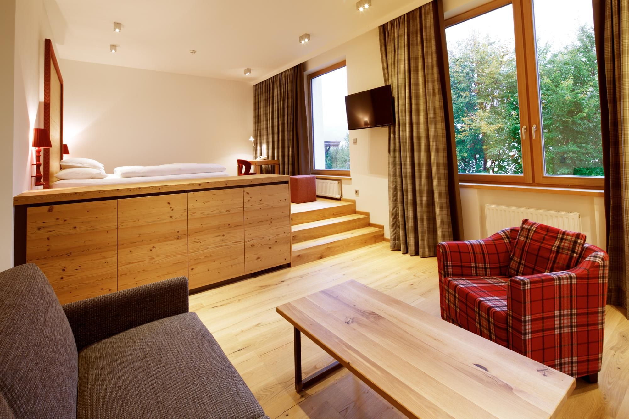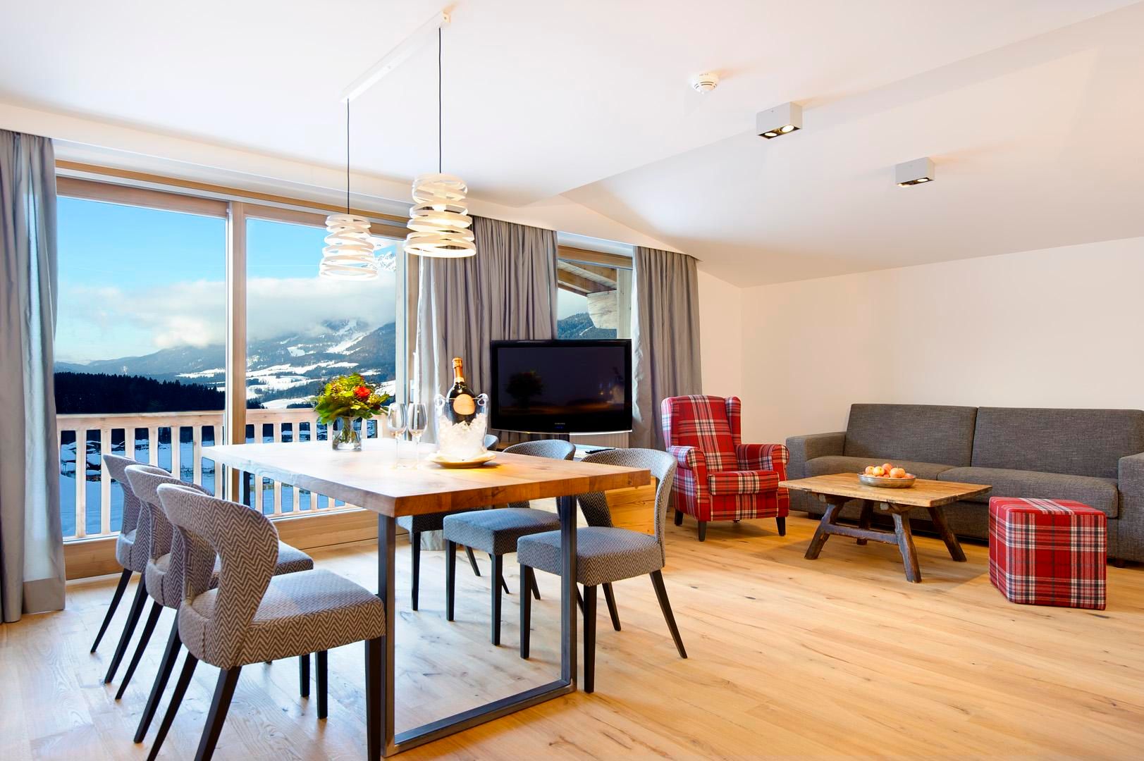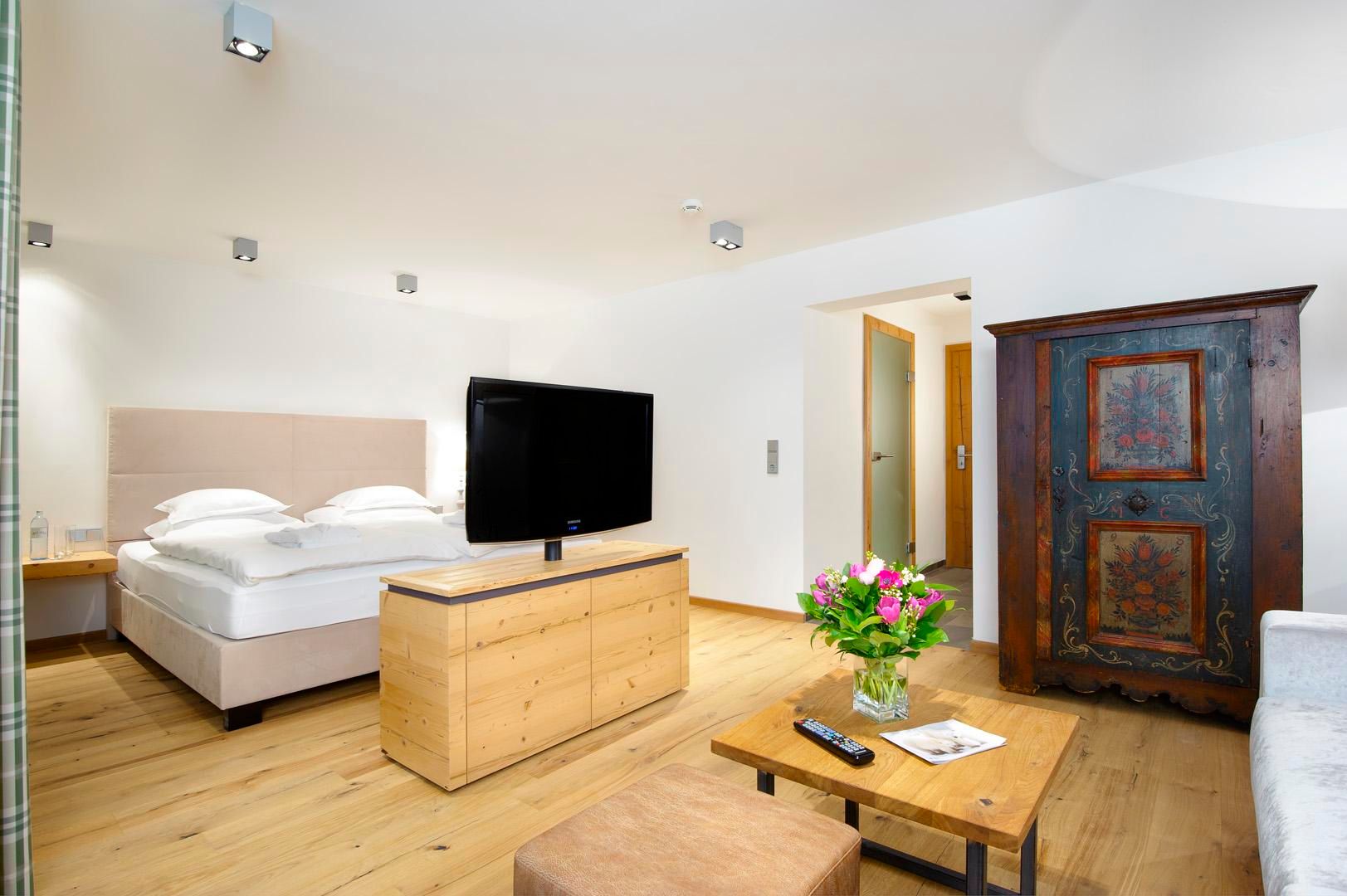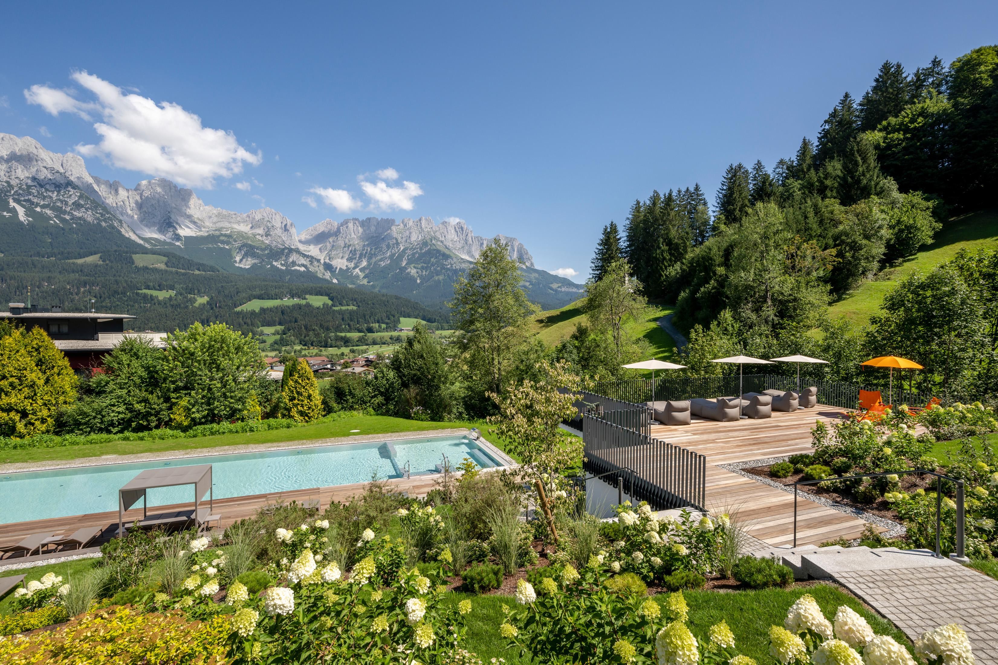 Ein Ort zum Verlieben. In dem von Familie Windisch sehr sorgsam und herzlich geführten, weitläufigen Urlaubsdomizil am Fuße des Wilden Kaisers in Tirol lässt sich das Leben genießen. Das Haupthaus bietet mit geräumigen Doppelzimmern und elegant-luxuriösen Suiten jedem Gast individuelle Räumlichkeiten.Urlaub mit allen SinnenDas Gourmetrestaurant im Hotel DER BÄR - prämiert von Falstaff - serviert regionale sowie internationale Kreationen in gewohnter Spitzenqualität. Sehr wohl fühlt man sich auch an der modernen Hotelbar, wo edle Tropfen und feine Drinks den Abend perfekt ausklingen lassen. Bäriger geht’s nicht. Genuss auf hohem NiveauDer 20 m lange, ganzjährig mit 31° C beheizte Infinity-Pool verspricht grenzenlose Erholung vor Traumkulisse – ist aber „nur“ ein Highlight von vielen! Denn das gesamte Badehaus mit Hallenbad, Saunalandschaft, Ruheraum mit grandiosen Panoramafenstern raubt Genießern den Atem. Ob drinnen oder draußen – hier wird man immer mit einem einmaligen Ausblick auf den Wilden Kaiser belohnt. Auch in den Zimmern und Suiten, die alpinen Charme mit modernem Chic gekonnt kombinieren, gehört der majestätische Berg sozusagen zum Interieur. Und die herrliche Natur der Kitzbüheler Alpen, diese kaiserliche Landschaft, ist zu jeder Jahreszeit ein wunderbarer Ort, um neue Kraft und Energie zu tanken. Im Sommer erhalten Golfer am nahe gelegenen Golfplatz Wilder Kaiser/Ellmau 30% auf Ihr Greenfee und im Winter erleben Wintersportler in der SkiWelt Wilder Kaiser/Brixental auf 279 Pistenkilometern die neue Dimension des Skifahrens. Für die Kleinen haben wir einen Miniclub, großzügig und hell, gleich neben dem Garten.Die etwas Größeren sind im Chillraum unter sich.Wie gut sich das alles anfühlt? Erleben Sie es bitte selbst. Wir erwarten Sie in gewohnter Atmosphäre großer Herzlichkeit.