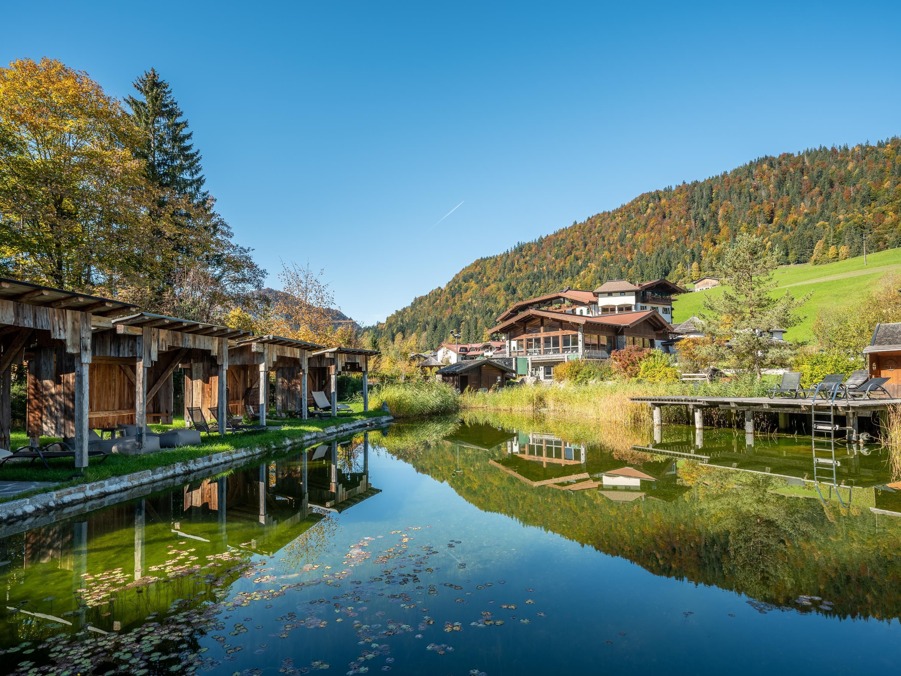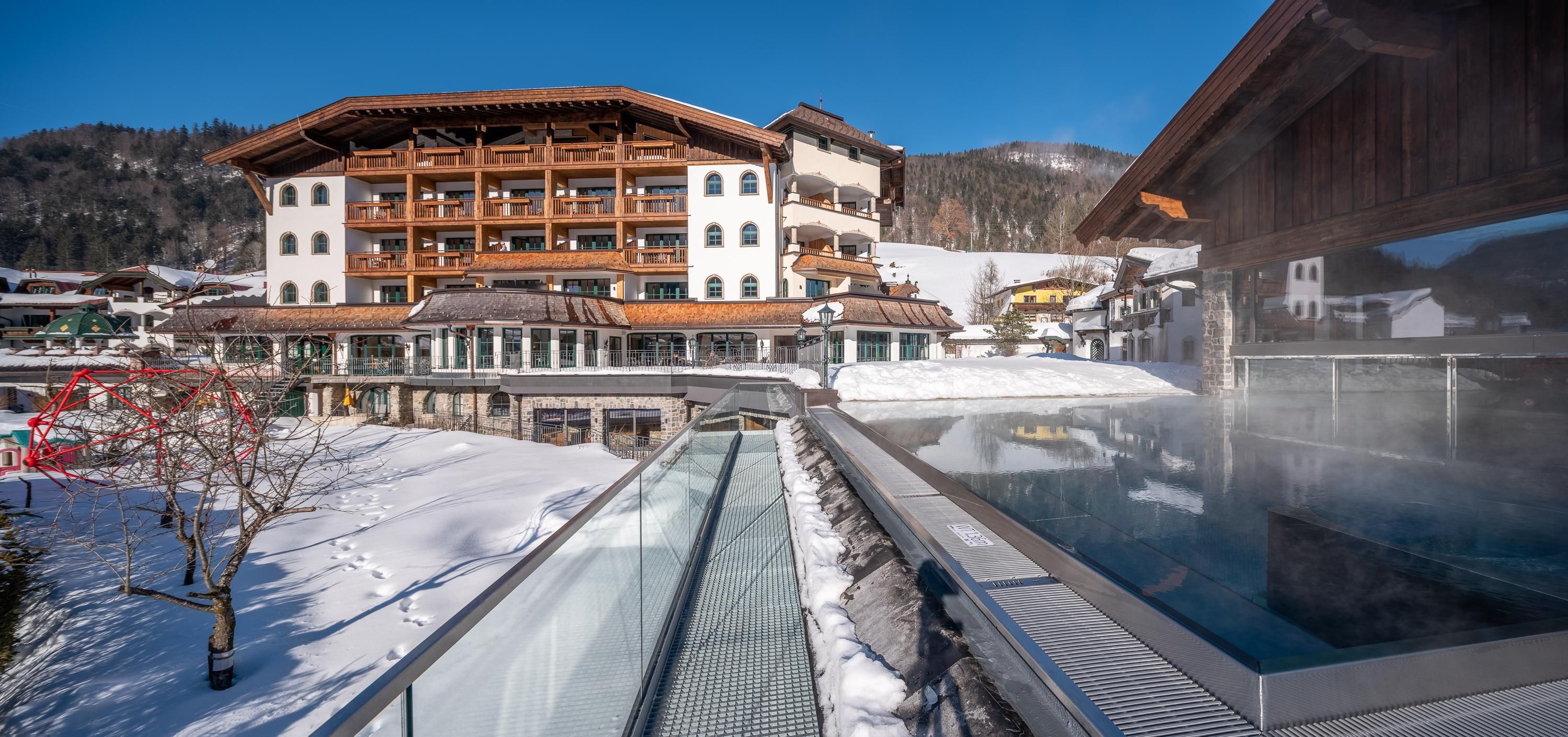 Das Hotel Jagdschlössl liegt im beschaulichen Weiler Gasteig, auf einer Anhöhe zwischen St. Johann in Tirol und Kirchdorf. Der einzigartige Blick vom Jagdschlössl auf den Wilden Kaiser wird Sie Tag für Tag immer wieder beeindrucken. Genießen Sie hier mit allen Sinnen einen sanften Erlebnisurlaub mit unserer neuen Pool- und Wellnessanlage. Als Mitglied von Golf in Tirol und Golf Alpin sowie die Zusammenarbeit mit dem Golfclub Kaiserwinkl Golf Kössen-Lärchenhof bieten wir Ihnen den perfekten Service für Ihren Golfurlaub und eine Auswahl aus 13 Golfplätzen. Wanderer schätzen die herrliche Lage am Wilden Kaiser und erleben die Natur besonders intensiv bei einem Pirschgang im eigenen Jagdrevier. Familien finden ein großartiges Angebot im weitläufigen Schlösslgarten samt Landschaftsteich, Ruheoase und der einzigartigen Bergwell-Anlage©. Einzigartig ist auch die mehrfach prämierte Kulinarik, mit regionalen Zutaten und Wild aus der eigenen Jagd.