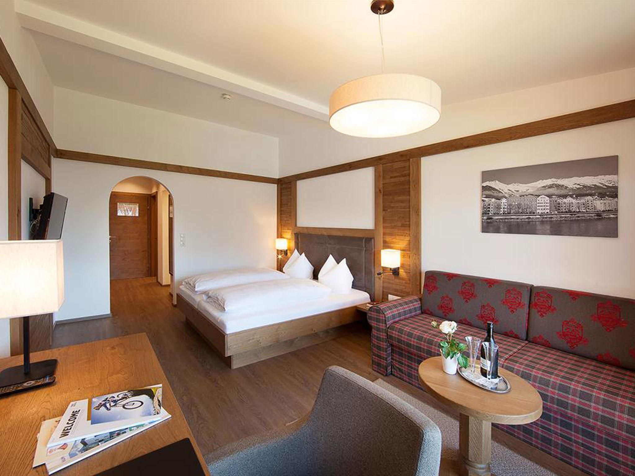 Das familiengeführte Hotel mit Restaurant befindet sich in ruhiger Lage im Zentrum von Rum, mit bildschönem Blick auf den Patscherkofel und Innsbruck, umgeben von einem großen Garten mit Freischwimmbad. In den Zimmern im Tiroler Landhausstil trifft Tradition auf Moderne, die modern designten Business-Appartements, bei Geschäftstreisenden besonders beliebt, bieten jeglichen Komfort. Das Frühstücksbuffet bietet regionale Spezialitäten vom Bauern nebenan, sowie ofenfrisches Gebäck vom Bäcker aus dem Ort, heimische Wurst- und Käsespezialitäten und wird im Sommer auf der Terrasse serviert. Im À la Carte - Restaurant wird traditionelle Österreichische Küche geboten, mit typischen Tiroler Speisen, welche vorwiegend aus heimischen Produkten von der Umgebung zubereitet werden.Die Hotelbar ist ein beliebter Treffpunkt bei Gästen und Einheimischen, ebenso in den Sommermonaten die Terrasse mit wunderbarem Blick auf die Tiroler Bergwelt.Restaurant - ÖffnungszeitenMo – Do 14.00 – 21.00 Uhr, Fr u. Sa 12.00 – 21.00, So 11.30 – 16.00 UhrDie Unterkunft ist geeignet für Workation.