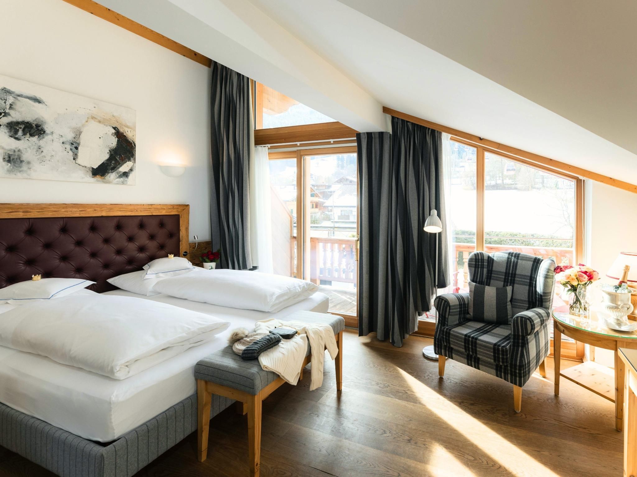 Das stilvolle und mit viel Liebe zum Detail geführte Hotel liegt direkt an der Talstation der Hahnenkammbahn, nur wenige Gehminuten vom romantischen Stadtzentrum. Im Sommer lädt die Terrasse mit atemberaubender Kulisse auf die Kitzbüheler Bergwelt zum Entspannen ein, während die Gondeln der Hahnenkammbahn anmutig über das Hotel schweben. Im Winter ist der Kaiserhof das perfekte Skihotel mit Ski in Ski out Direkt-Zugang zur Piste. Die gemütlich eingerichteten Zimmer und Suiten bieten feinen Komfort. Kuschelige Bademäntel und Badetücher liegen für einen erholsamen Aufenthalt im Wellnessbereich mit Panorama-Indoor-Pool, verschiedenen Saunen, Dampfbad und Ruheraum bereit. Für aktive Momente steht ein modern ausgestatteter Fitnessraum mit hochwertigen Trainingsgeräten zur Verfügung. Auf unsere kleinen Gäste wartet ein kleines aber feines Spielzimmer. Mit einem kaiserlichen Frühstücksbuffet starten Sie gestärkt in Ihren Urlaubstag. Im Winter verwöhnen wir Sie mit einer köstlichen Halbpension mit 5-Gang-Wahlmenü inklusive Salatbuffet aus der Gourmetküche von Haubenkoch Ernst Köstenbaumer. Am Abend lädt die stilvolle Bar mit gemütlichem Ambiente zum Verweilen ein. Im Kaiserhof erwartet Sie ein servicereiches Angebot, verbunden mit echter Tiroler Gastfreundschaft und herzlichen Mitarbeitern, die den feinen Unterschied ausmachen. Ein Ort, an dem man ankommt – und einfach gerne bleibt.