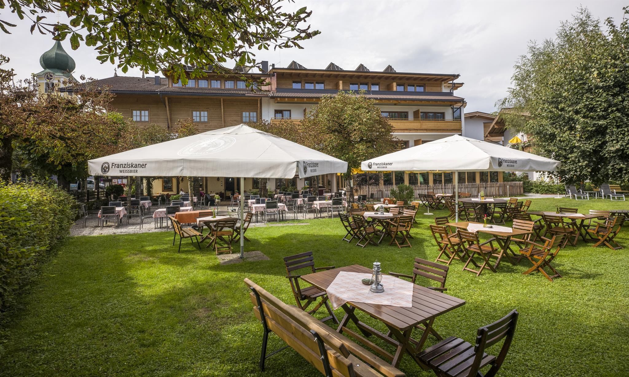 Unser Hotel liegt mitten im Zentrum von Westendorf. Alle Sport- und Freizeiteinrichtungen finden sich in unmittelbarer Nähe vom Haus. Zum Schilift sind es nur 200 m. Im Sommer bieten wir einen sehr schönen Gastgarten zum genießen und entspannen.