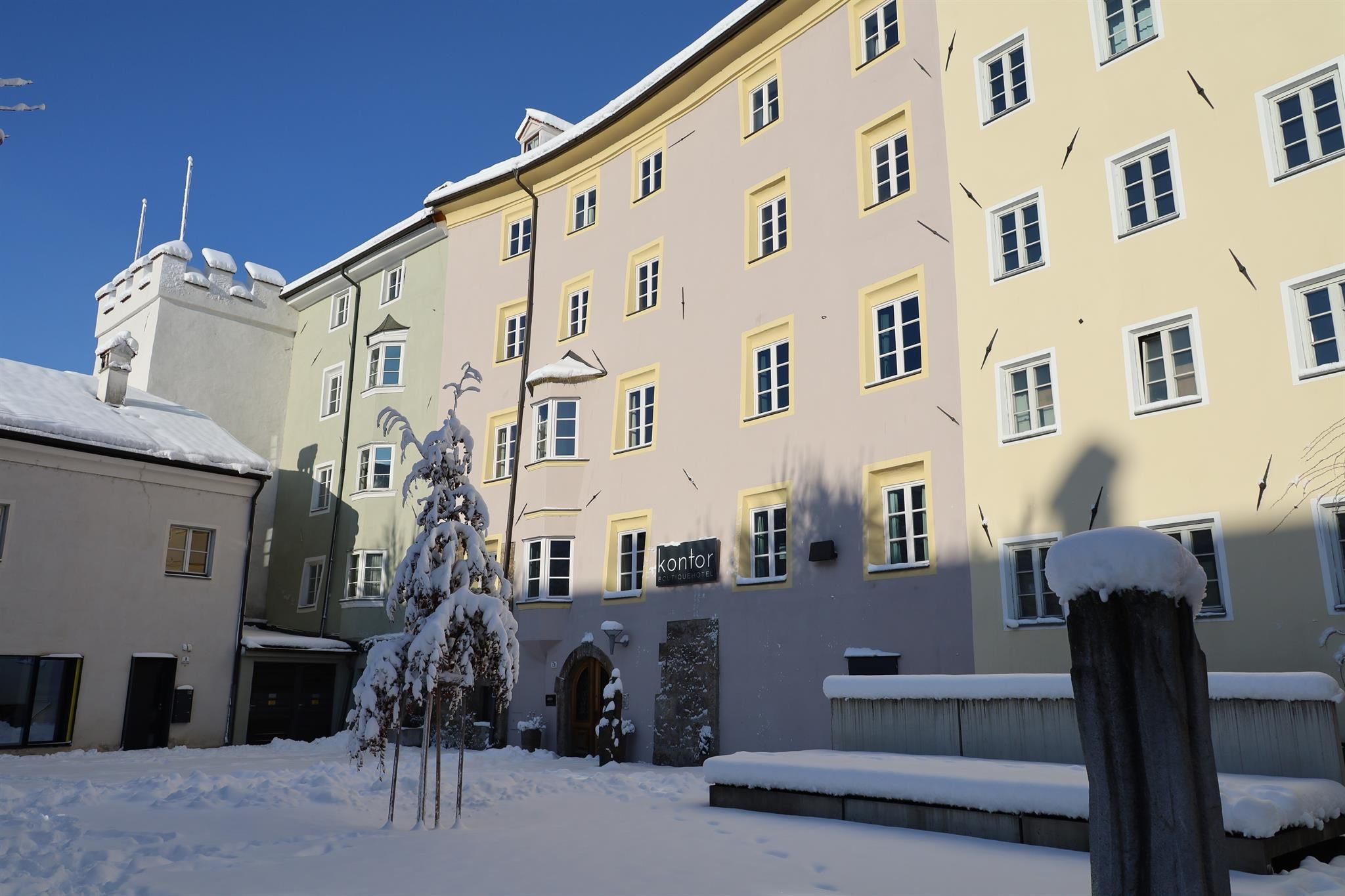 kontor Boutiquehotel - Hall in Tirol Das einst ehrwürdige Handelshaus – früher auch Kontor genannt – eingebettet in die Haller Altstadt, erhält Ende des Jahres eine neue Bestimmung. In Eigenregie verwandeln die Gastgeber Ursula & Marek das denkmalgeschützte, geschichtsträchtige Haus mit viel Herzblut, Geschick und Mut in aufwendiger Restaurierung in ein kleines, aber feines Boutiquehotel für Ihren Aufenthalt in Hall in Tirol.Kein Raum gleicht dem anderenDie Hotel-Einrichtung und das Wohlfühl-Service entsprechen einem 4-Sterne-Standard. Jedes Zimmer ist sehr großzügig und einzigartig gestaltet. Das individuelle Interieur besticht durch Unikate, bricht das Vergangene mit einer zeitlosen Eleganz, welche mit modernen Annehmlichkeiten ergänzt werden. Das Frühstück wird im Barocken Saal serviert, dem die Stuckdecke aus dem 18. Jahrhundert eine ganz besondere Atmosphäre verleiht. Ursula & Marek legen sehr viel Wert auf regionale sowie saisonale Lebensmittel & selbstgemachte Produkte! Lassen Sie sich verwöhnen! Inklusivleistungen:Best-Preis bei Direktbuchung über die Hotelwebsite garantiert Frühstück inklusive: Genießen Sie täglich ein feines Frühstücksbuffet im Barocken Saal mit hausgemachten Köstlichkeiten. Zusätzlich serviert Ihnen Ursula gerne frisch zubereitete Eierspeisen sowie Omeletts. Kostenloses WLAN im gesamten Haus Verglaster Lift mit Einblick in das historische Gemäuer Nespresso-Maschine & Safe warten in jedem Zimmer auf ihren Einsatz! Zusatzleistungen:Garagenparkplatz „Untere Stadt" um € 10,20 pro Tag