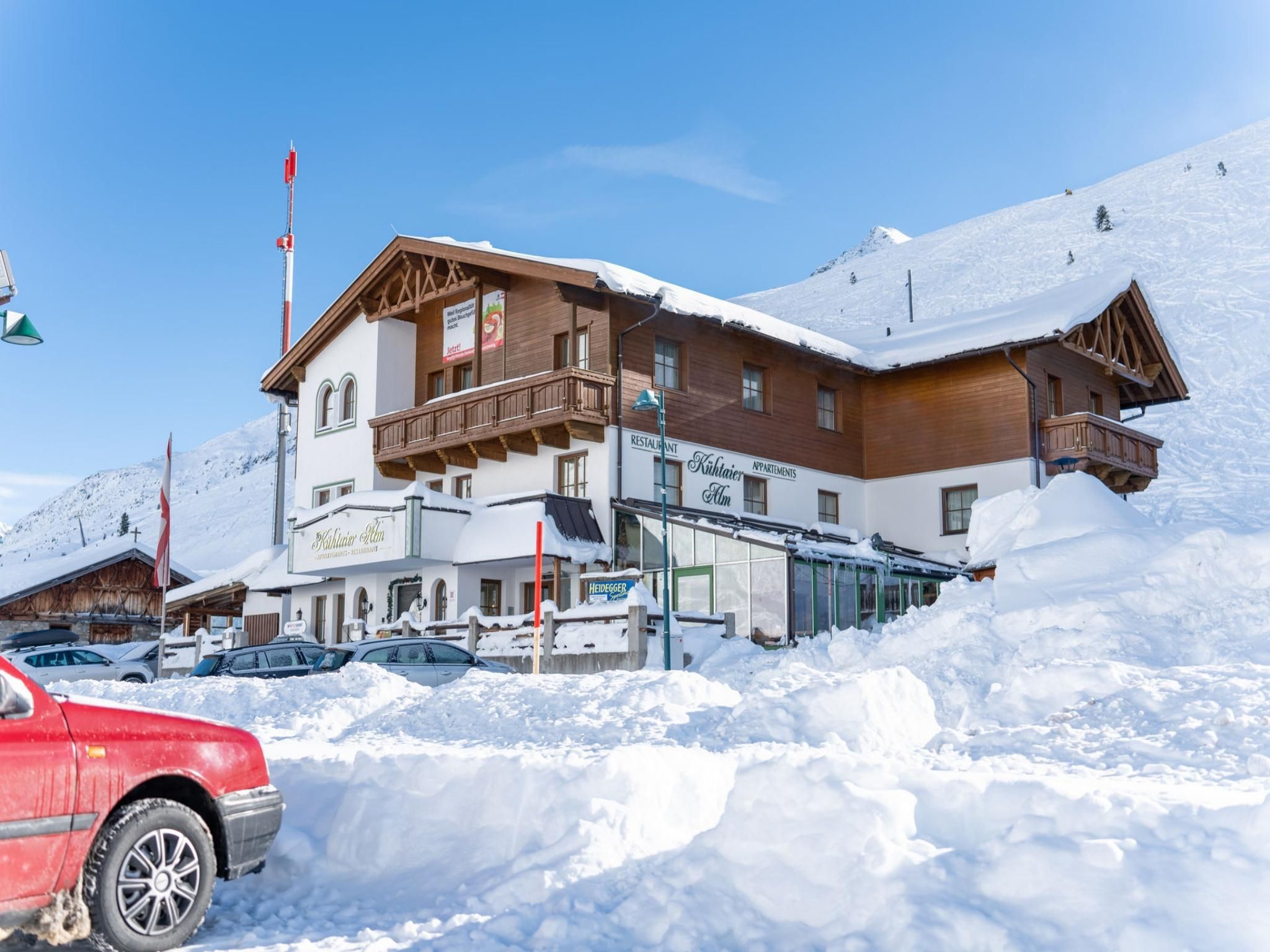 Sie wollen etwas Besonderes erleben? Sie wollen in Ihrem Urlaub alles haben? Ruhe, Erholung und doch ein wenig Rambazamba? Kühtai und Ihr Urlaubsdomizil Kühtaier Alm bieten Ihnen diese exzellente Mischung!Tagsüber genießen Sie die Ruhe auf 2.020 m und mehr - lassen Sie sich berauschen von der Schönheit einer unberührten Natur und fühlen Sie sich frei!Am Abend stürzen Sie sich ins Kühtaier Nachtleben oder sitzen gemütlich mit Freunden zusammen.Das Appartementhaus Kühtaier Alm liegt am östlichen Ende des Ortes, direkt an den Liften!Neu erbaut und den Anforderungen eines anspruchsvollen Gastes entsprechend eingerichtet bietet die Kühtaier Alm komfortable Appartements mit Telefon, Sat-TV, Balkon, Bad/Dusche, WC.Unsere Saune bietet die Möglichkeit zu entspannen und abzuschalten!In unserer gemütlich eingerichteten Gaststube verwöhnen wir Sie mit Speis´und Trank, teilweise mit Produkten aus eigener Landwirtschaft!Auch an unserer Hausbar herrst stets gute Stimmung bei lockerer Atmosphäre!Wir freuen uns auf Ihren Besuch!Familie Föger und Mitarbeiter!