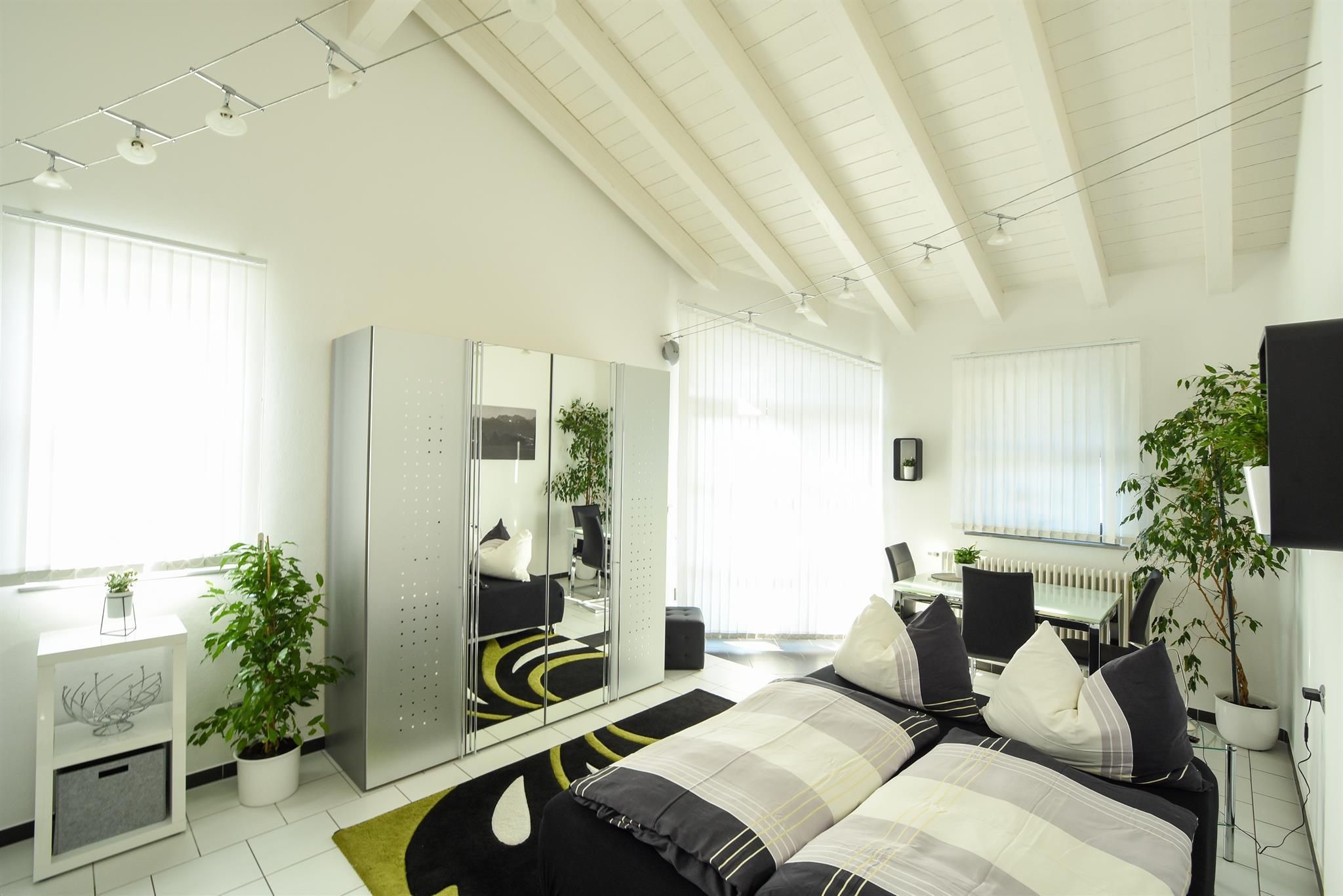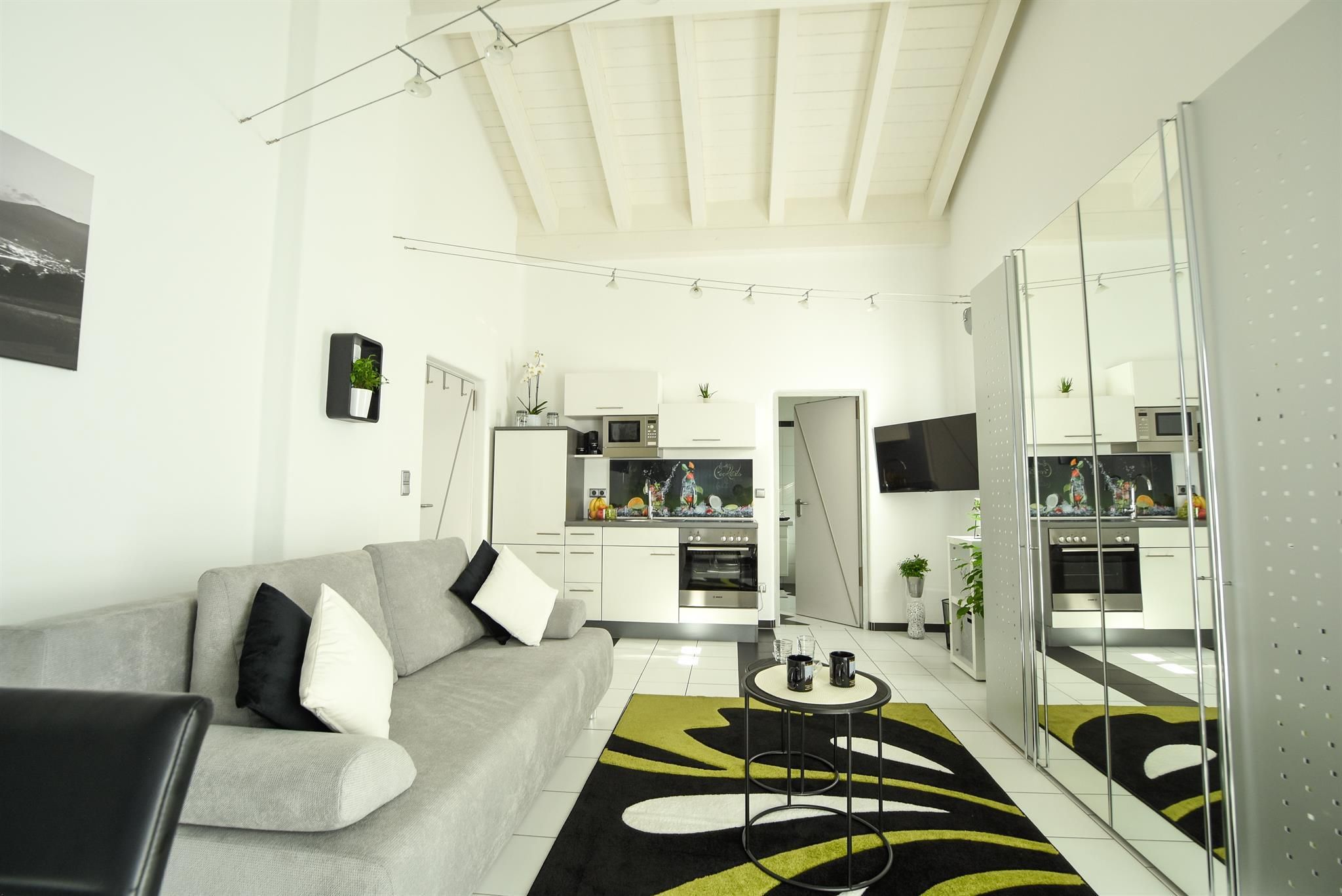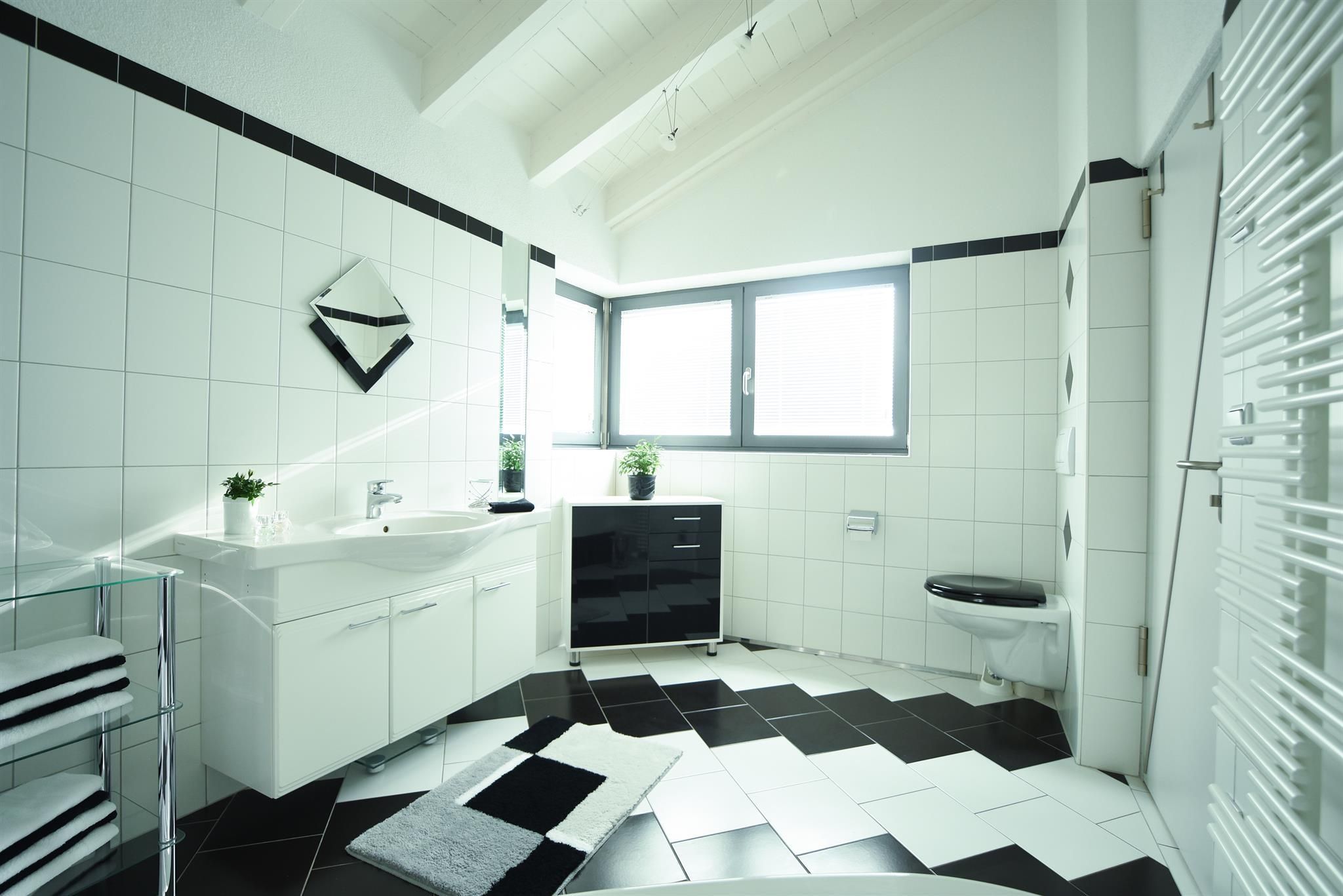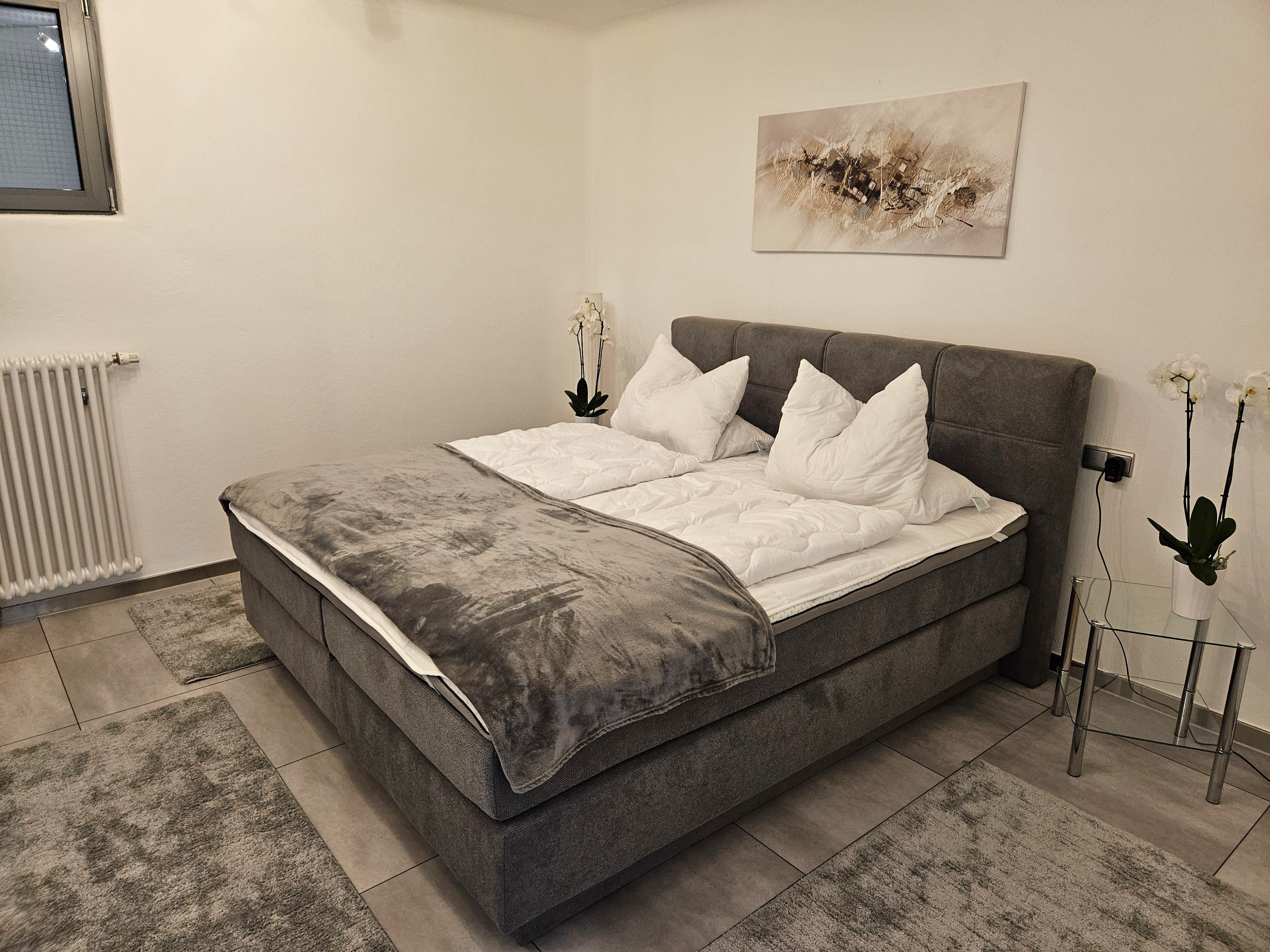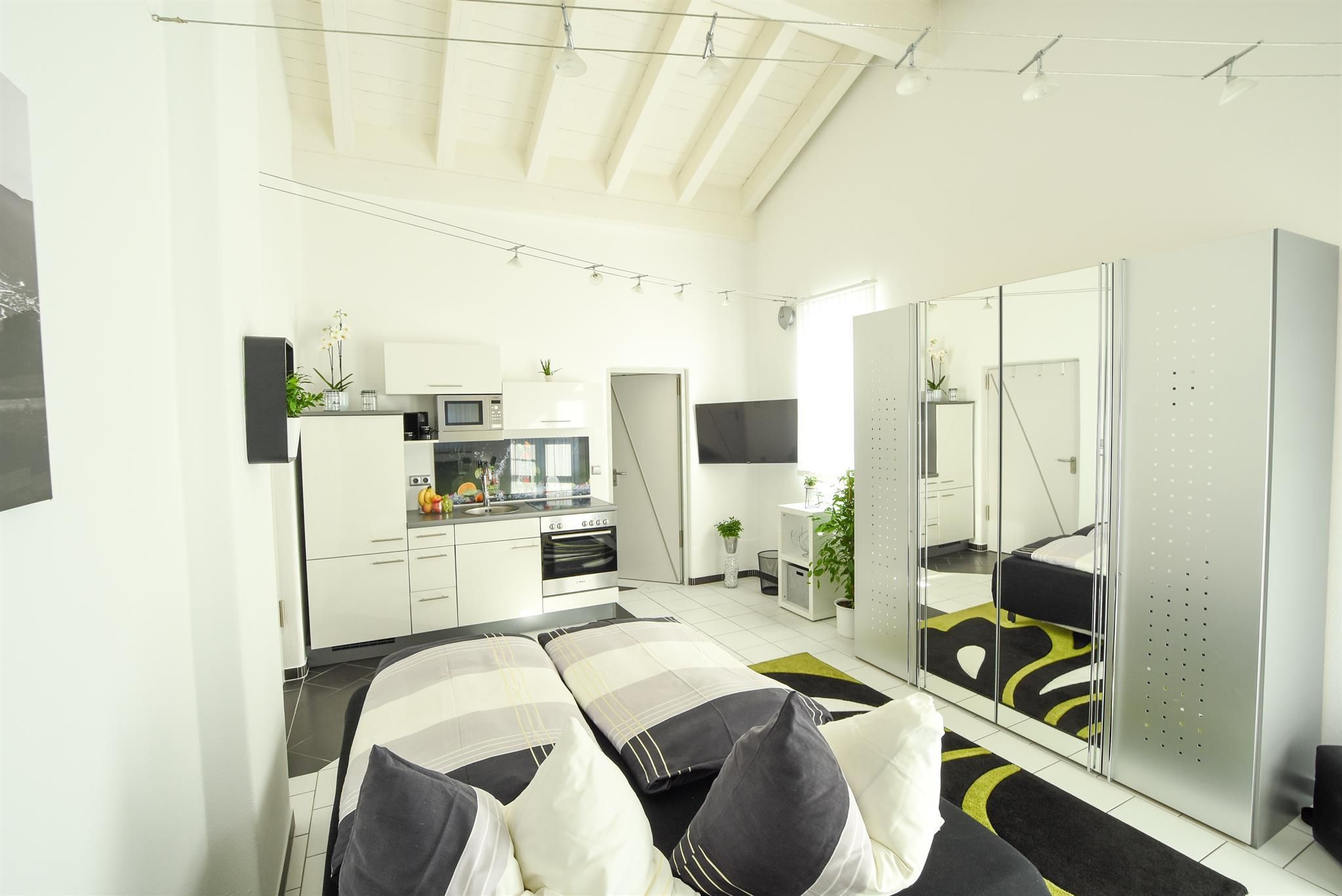 Entspannen Sie sich zu zweit, oder mit der ganzen Familie in einer dieser Wohnungen. Das Appartement liegt im Obergeschoss, die große Ferienwohnung im Untergeschoss eines Einfamilienhauses. Beide Wohnungen sind jeweils mit einer Wohnküche, Sat-TV, kostenlosem Internetzugang W-LAN und Grill ausgestattet. Die Dachterrasse im OG, und die Terrasse inkl. Gartennutzung im UG-Bereich sind getrennt und stehen nur den jeweiligen Gästen allein zur Verfügung. Kostenlose Autoabstellplätze sind vorhanden. Ausstattung der Wohnungen: Bettwäsche, Handtücher, Geschirrtücher, Elektroherd mit Backofen, Mikrowelle, Kühlschrank inkl. Gefrierfach, Geschirrspüler, Kaffeemaschine, Toaster, Mixer, Bügeleisen, Bügelbrett und Waschmaschine.