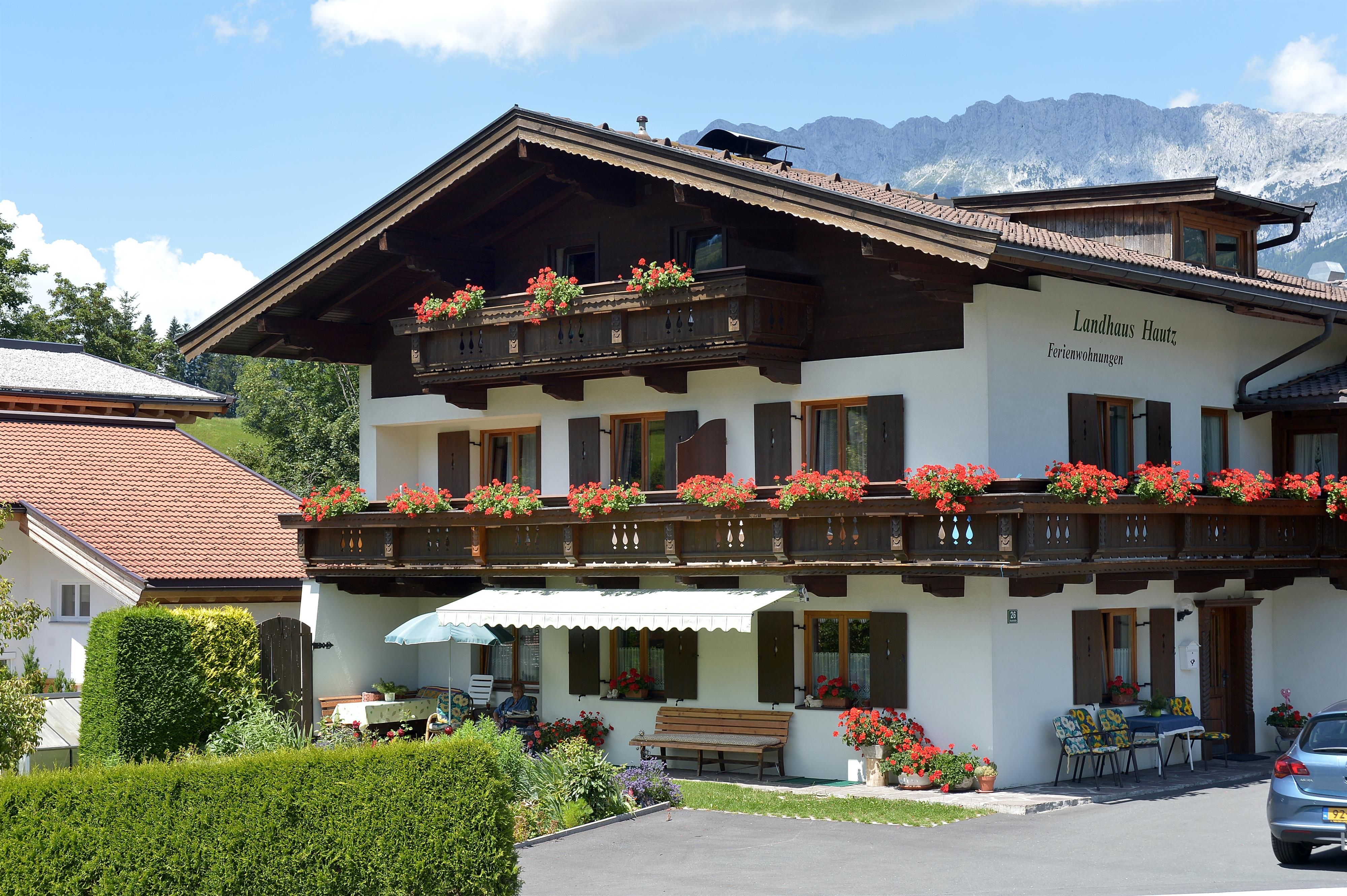 Unser wunderschön gelegenes Landhaus liegt unweit vom Ellmauer Zentrum entfernt.Die Unterkunft ist in angenehm, ruhiger Lage und bietet charmant eingerichtete, traditionelle Appartements.Im Sommer liegt unmittelbar vor unserer Haustür ein unverwechselbares Wanderparadies am Wilden Kaiser.Mountain-Bikern und Wanderern steht ein Wegenetz von fast 70 km zur Verfügung.Den 27-Loch-Golfplatz „Wilder Kaiser“ in Ellmau, eine Minigolf-Anlage, Tennisplätze, und das Kaiserbad erreichen Sie nach einer kurzen Anfahrt oder auch zu Fuß.Die Talstation der Hartkaiserbahn ist nur 250 Meter entfernt und bringt Sie im Winter in das größte zusammenhängende Skigebiet Österreichs mit 279 km Pistenspaß, etlichen Hütten und Aprés-Ski-Möglichkeiten. Ein Skikeller mit beheiztem Skischuhtrockner steht zur freien Verfügung. In Ihren Langlauftag starten Sie wenige Gehminuten vom Haus entfernt auf bestens präparierten Loipen.Zusätzliches Doppelzimmer auf Anfrage.