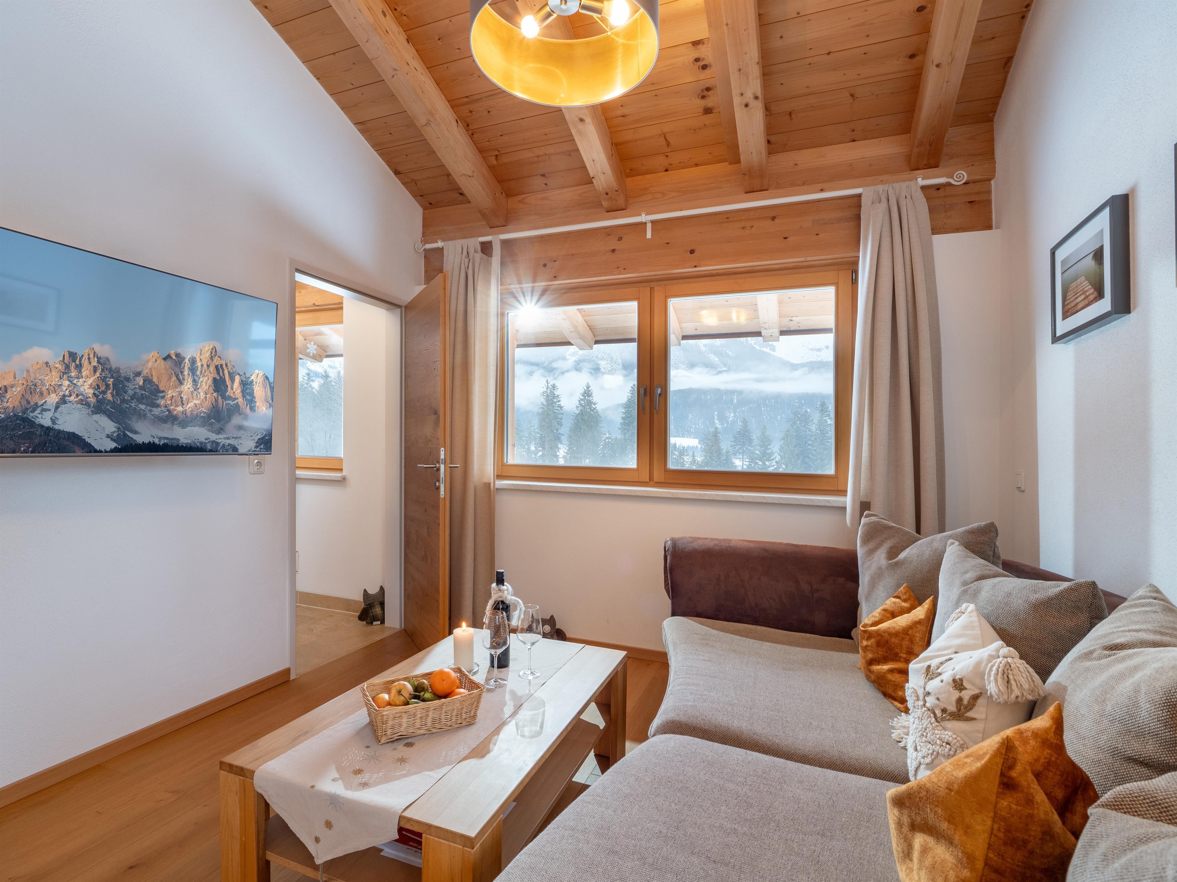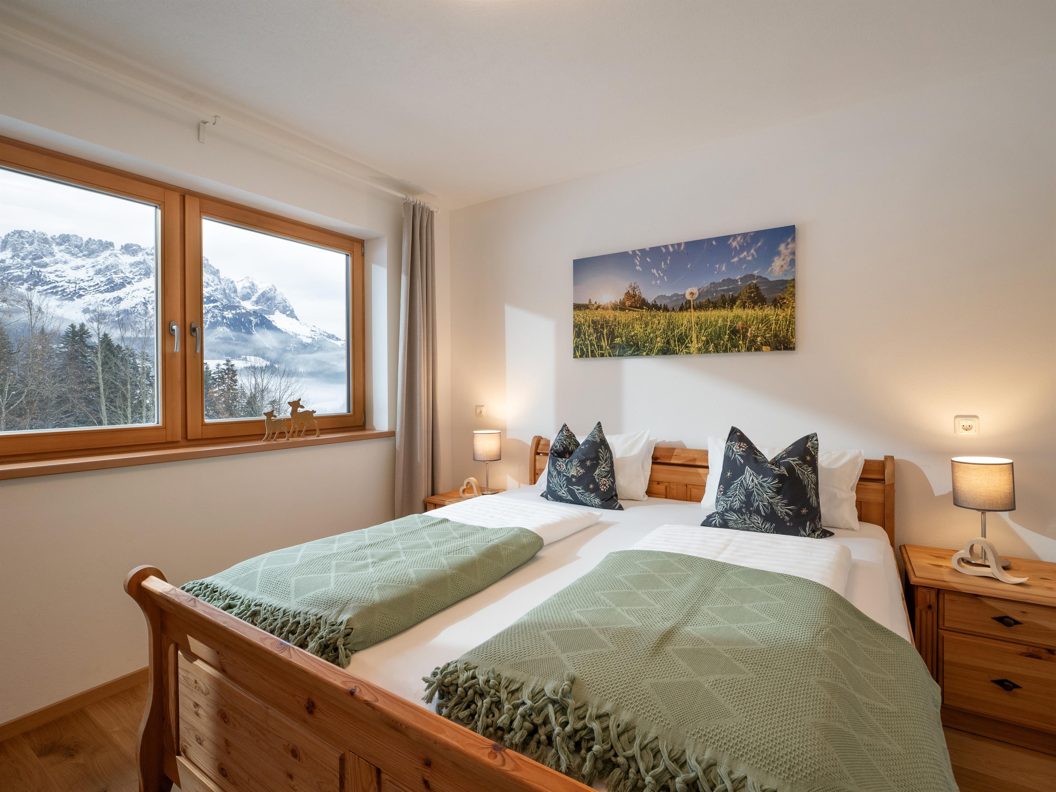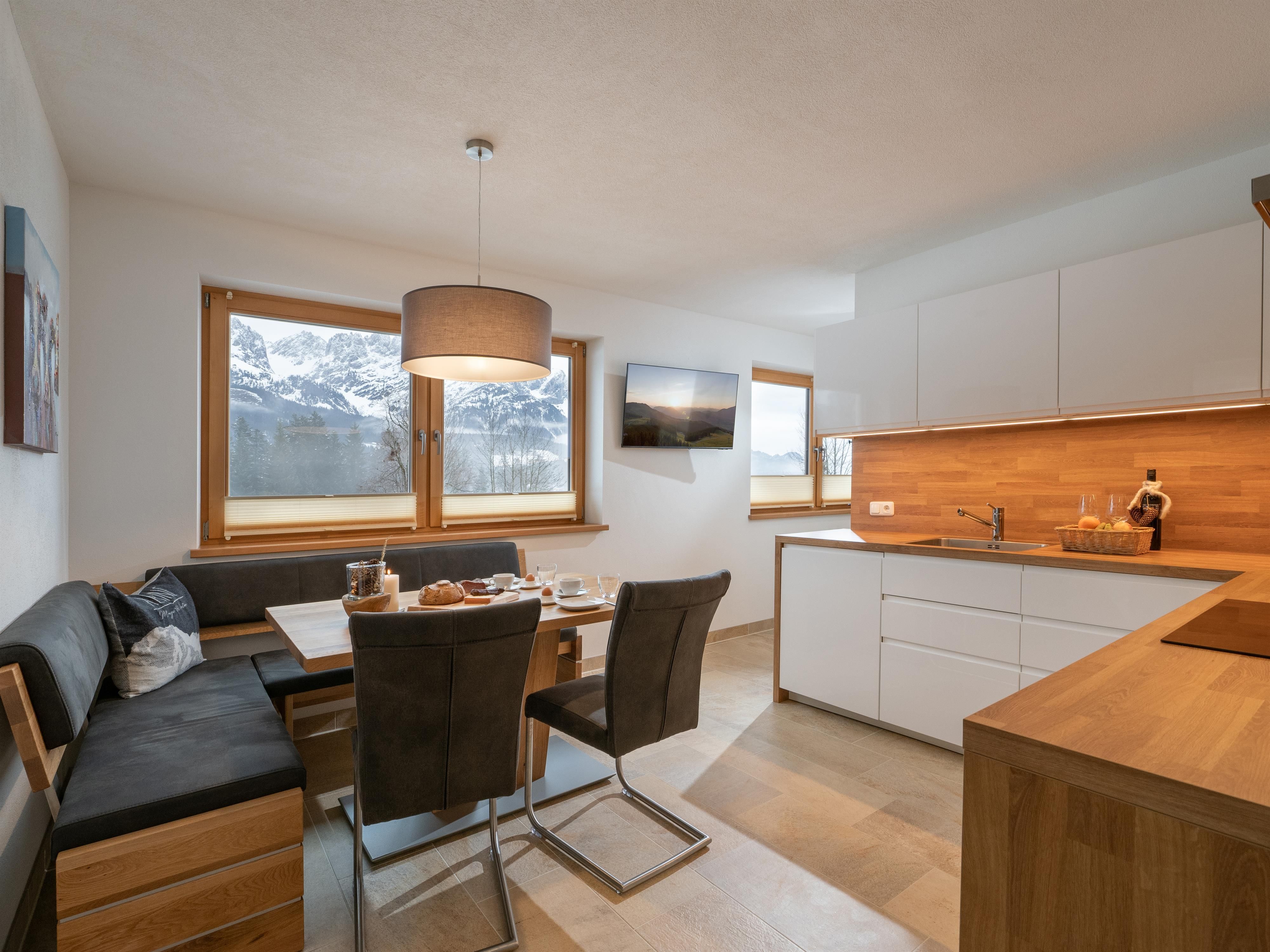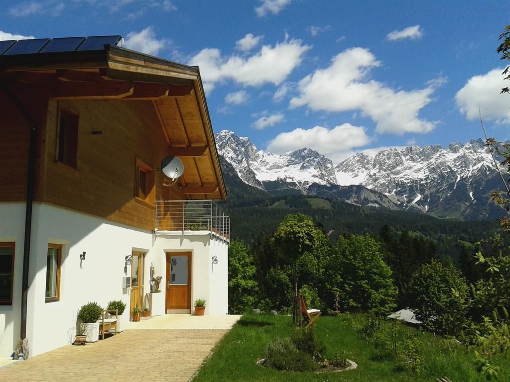 Unser Landhaus Wöss liegt in einer wunderschönen, ruhigen und sonnigen Lage mit faszinierendem Blick auf den Wilden Kaiser. Es gehört zu einer kleinen Siedlung auf einer Anhöhe umgeben von blumigen Wiesen und ein wenig Wald. Nur wenige hundert Meter entfernt befindet sich die Bergdoktor-Praxis und der Ortskern ist mit dem Auto in nur ca. 5 Minuten erreichbar. Wir bieten Ihnen ein familienfreundliches Haus mit einer Ferienwohnung. Im Sommer ist hier der ideale Platz zum Wandern, Klettern, Radfahren, Segelfliegen, Golfen oder Mountainbiken. Die Hartkaiserbahn, der Golfplatz und der Ellmauer Fitness-Parcours, die sogenannte Forstmeile, sind in nächster Nähe. Segelflieger finden vom 15 km entfernten Flugplatz St. Johann in Tirol (LOIJ) aus optimalen Anschluss an die Alpenthermik sowie Föhnfluggebiete. Auch sonst ist das Unterhaltungsangebot in Ellmau und Umgebung sensationell, denn Sie finden bei uns für eine Vielfalt an unterschiedlichen Sport- und Freizeitaktivitäten optimale Bedingungen.Im Winter ist Ellmau ein geschätztes und bekanntes Urlaubsziel, denn viel Schnee, die prachtvolle Landschaft, die herzliche Gastfreundschaft und ein umfangreiches Angebot an Freizeitaktivitäten haben die Region Wilder Kaiser vor allem zu einem beliebten Wintersportdomizil gemacht. Über die nur ca. 1 km entfernte Talstation der Hartkaiser Bahn haben Sie den idealen Einstieg, in die Schiwelt Wilder Kaiser, Österreichs größtem zusammenhängendem Schigebiet. Wer es abenteuerlicher liebt, der kann auch über die nahe gelegene Wochenbrunner Alm oder den Jägerwirt in Scheffau zu einer Schitour am Wilden Kaiser starten. Erfahrene Bergführer und Schilehrer zählen zu unseren unmittelbaren Nachbarn.