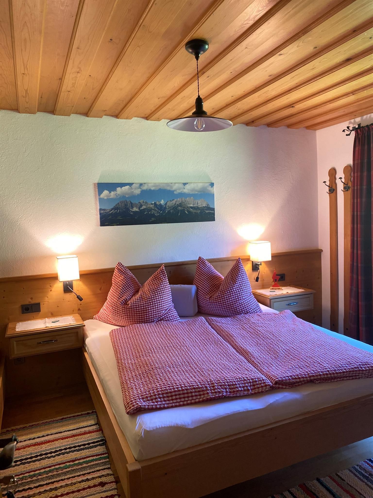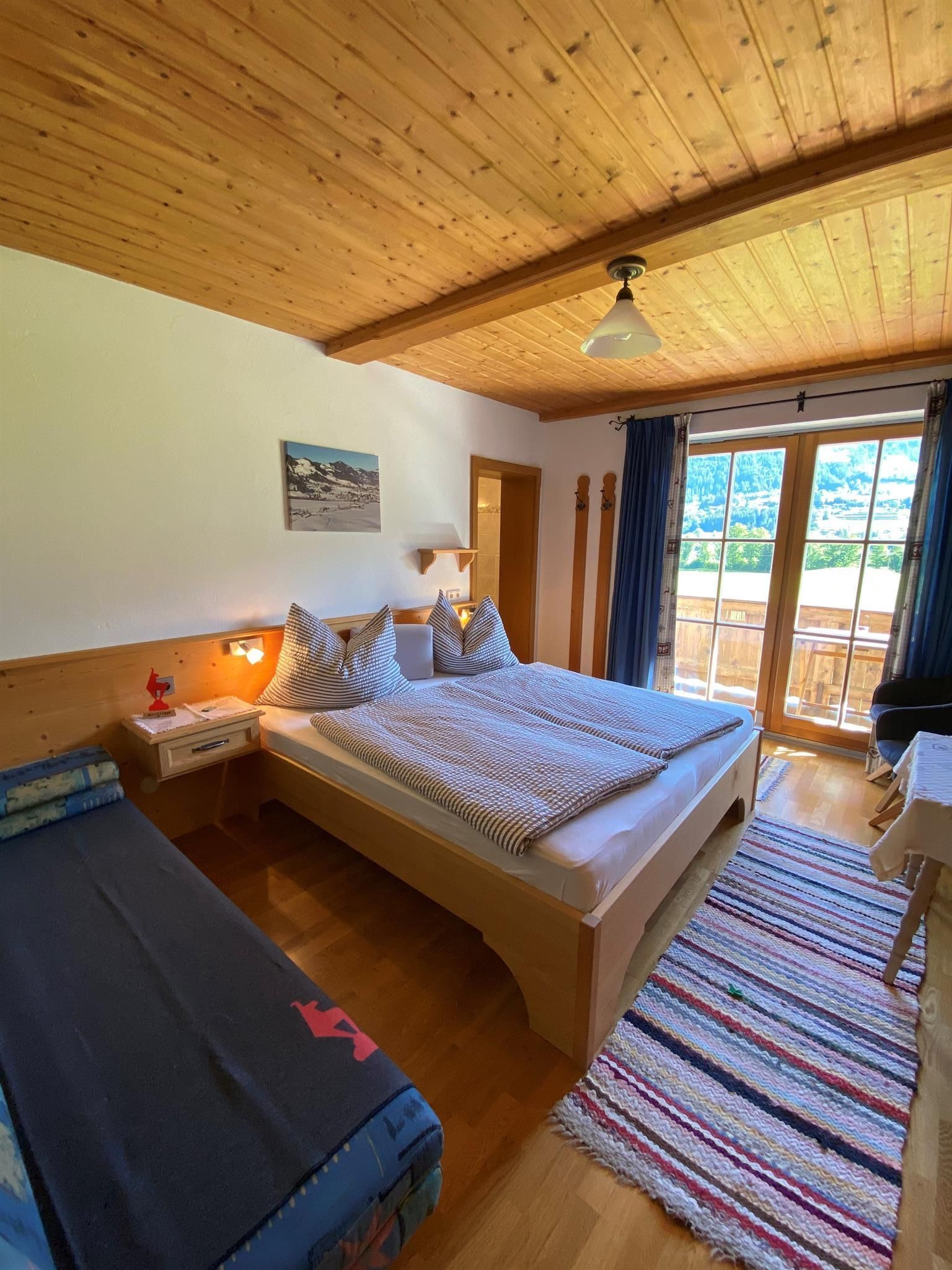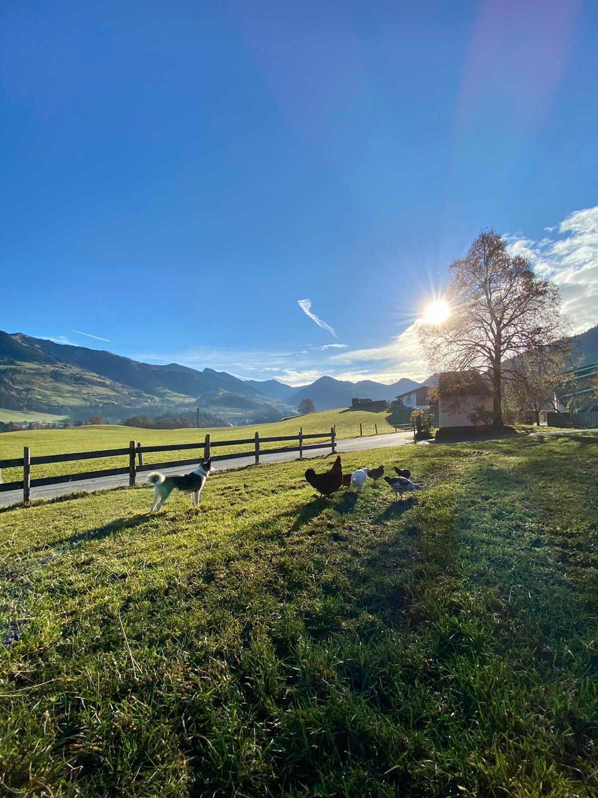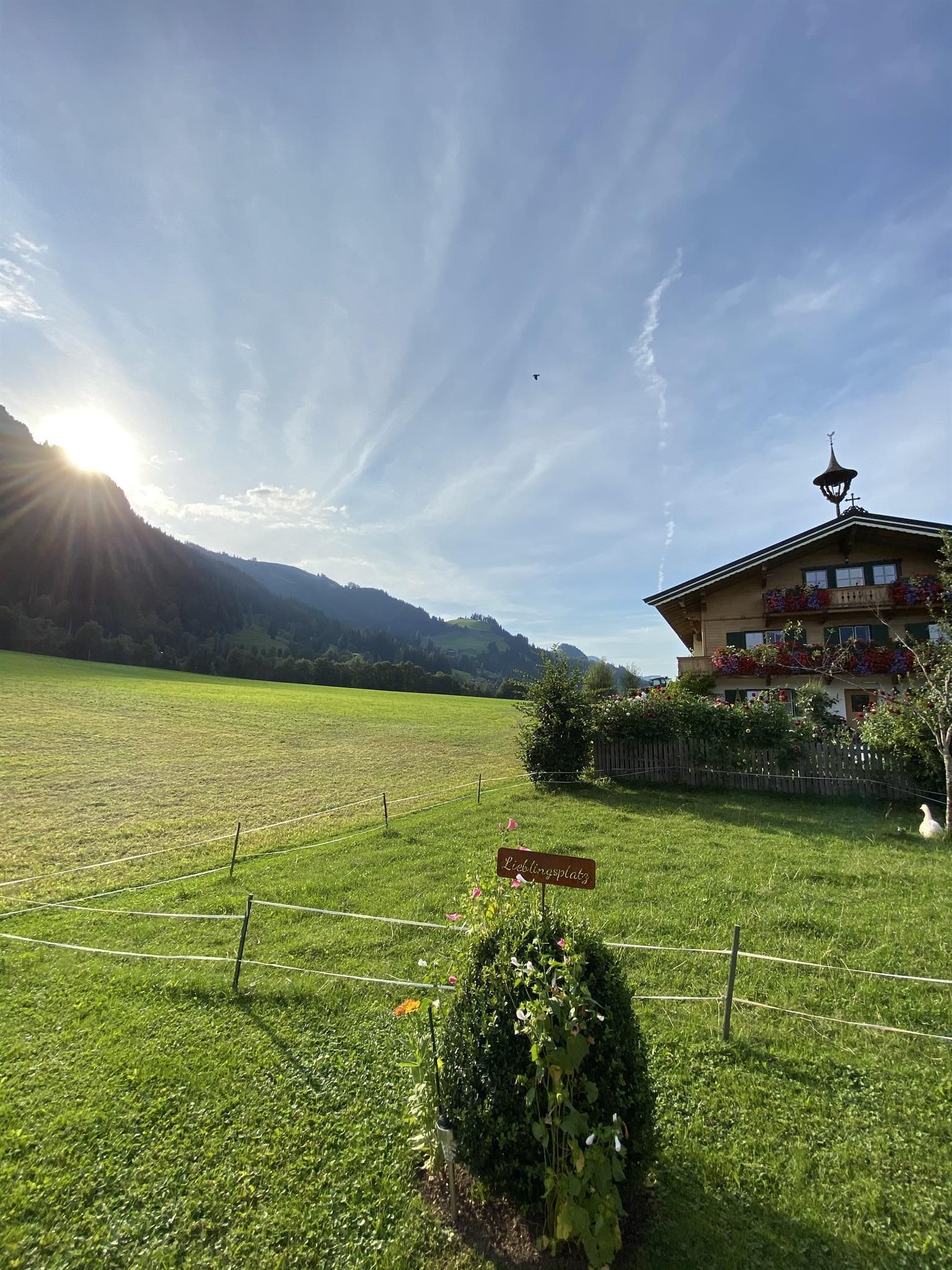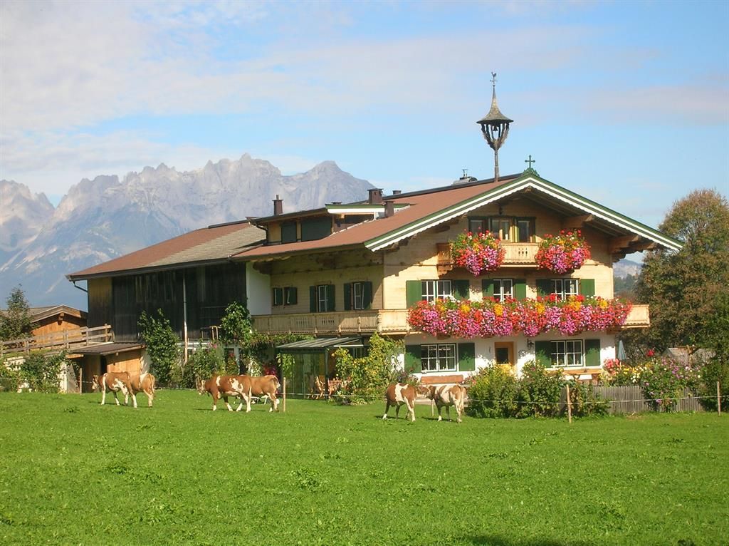 Wir liegen inmitten grüner Wiesen und vom Stadtzentrum in Kitzbühel ca. 20 Gehminuten entfernt. Unser Bauernhof ist Ausgangspunkt für viele schöne Wanderungen (z.B.: am Hahnenkamm) und Rad- und Mountainbikewege. Schilifte, Hallenbad und Badesee sowie andere Freizeiteinrichtungen sind in der Nähe und die Langlaufloipe führt direkt am Hof vorbei. Hoftypische Besonderheiten: Alle Zimmer sind mit Kabel-TV, DU/WC, Balkon, gemütliche Stube mit Kachelofen, kleine Küche für die Gäste, Liegewiese, Schaukel, genug Platz zum Ballspielen, Tischtennis, Grillmöglichkeit. Zu unseren Tieren am Hof zählen Kühe, Hühner, Enten, 1 Hund, Schafe und einige Hasen. Wir bieten Ihnen frische Milch, Apfelsaft, ein Schnaps'l und auch Eier. Frisches Brot vom heimischen Bäcker! WLAN-Verbindung.