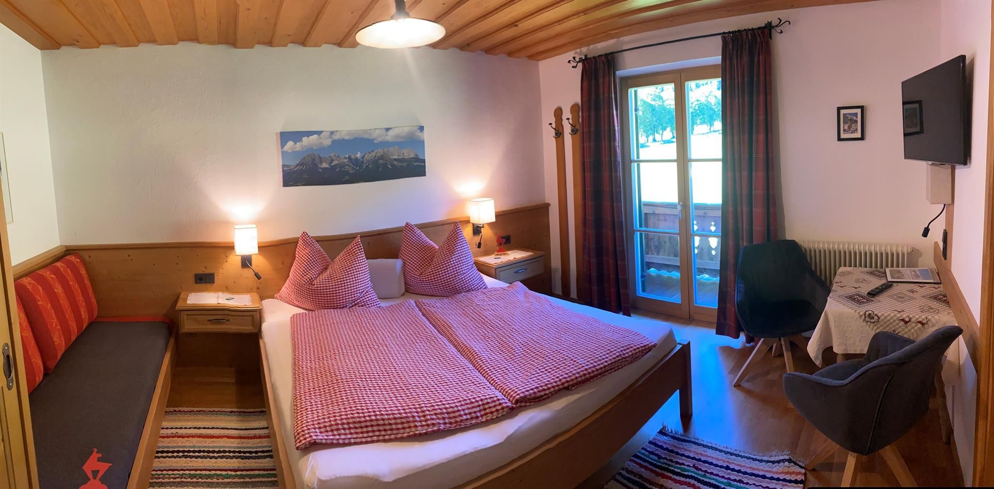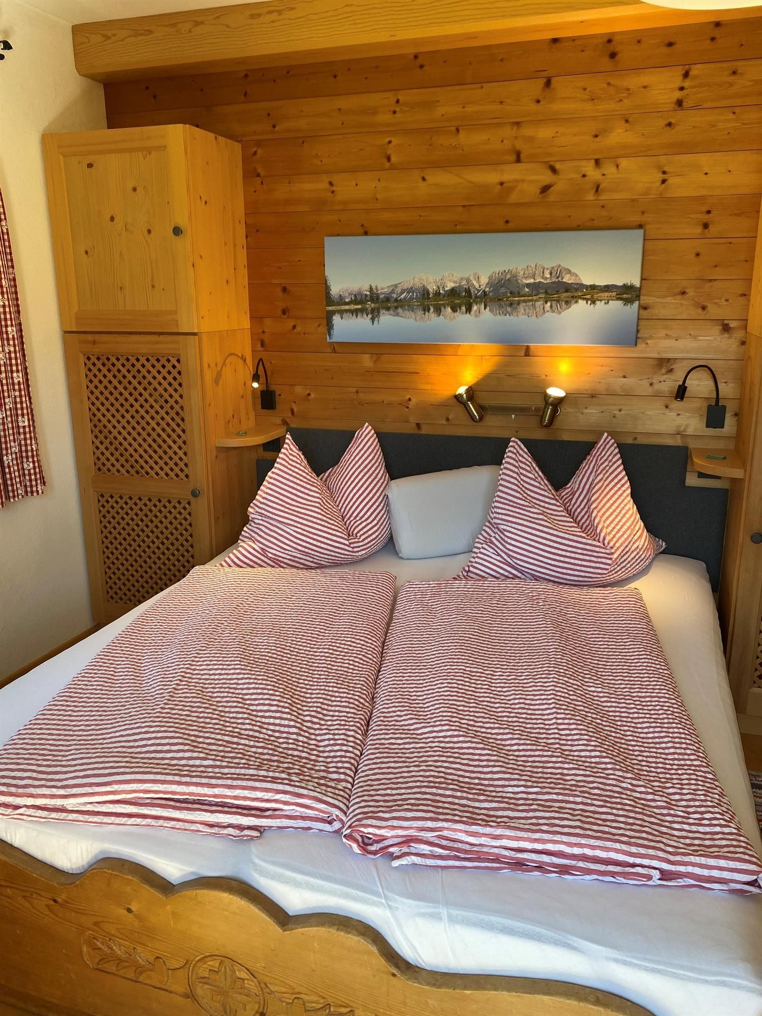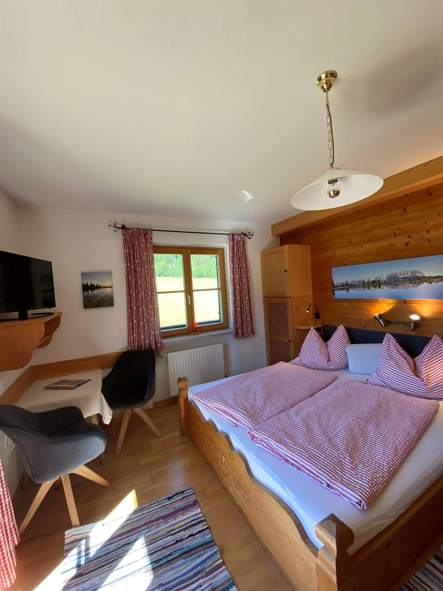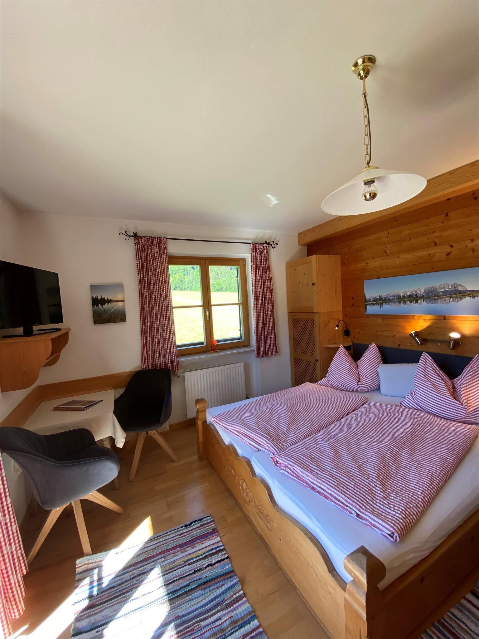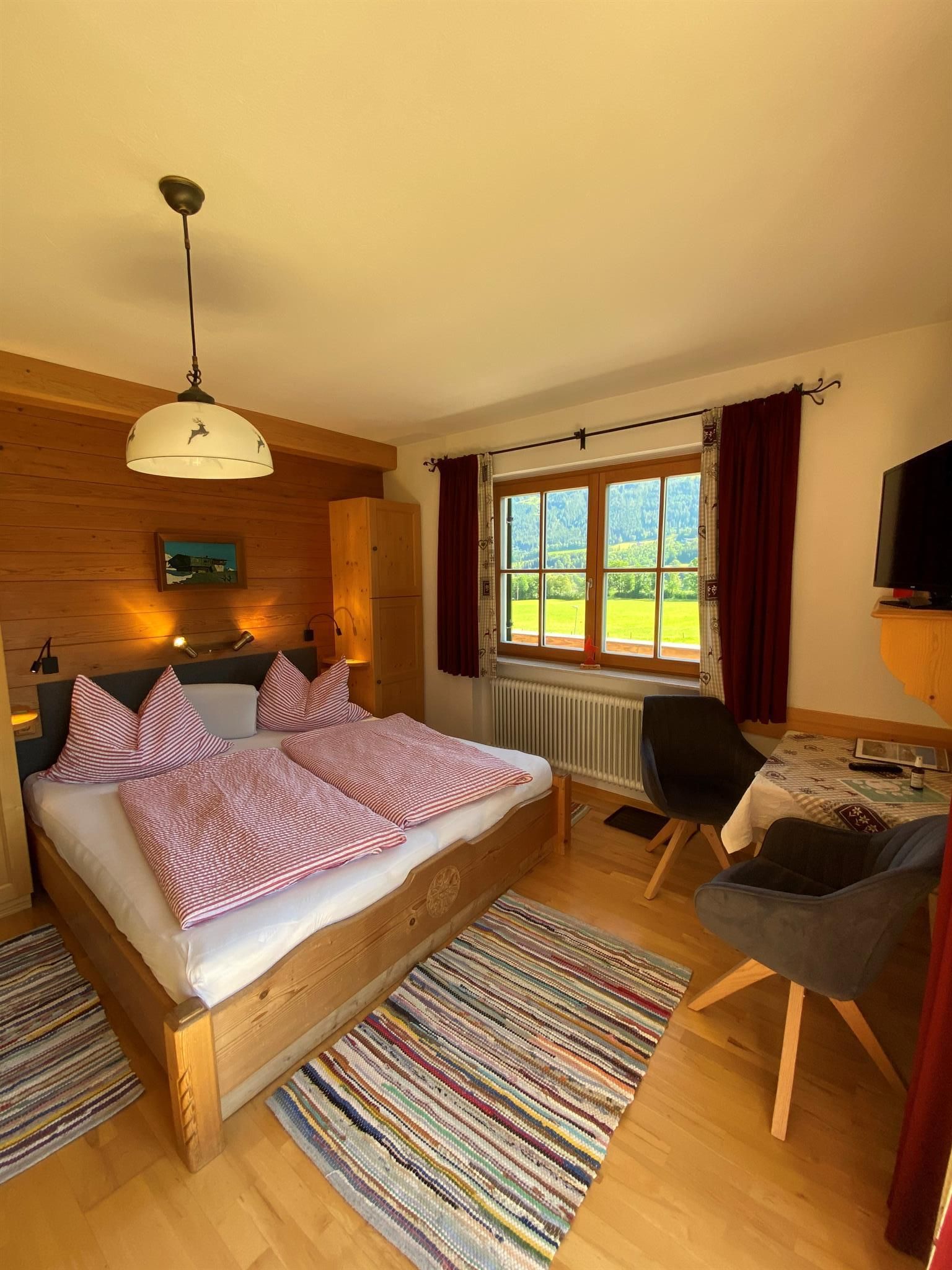 Wir liegen inmitten grüner Wiesen und vom Stadtzentrum in Kitzbühel ca. 20 Gehminuten entfernt. Unser Bauernhof ist Ausgangspunkt für viele schöne Wanderungen (z.B.: am Hahnenkamm) und Rad- und Mountainbikewege. Schilifte, Hallenbad und Badesee sowie andere Freizeiteinrichtungen sind in der Nähe und die Langlaufloipe führt direkt am Hof vorbei. Hoftypische Besonderheiten: Alle Zimmer sind mit Kabel-TV, DU/WC, Balkon, gemütliche Stube mit Kachelofen, kleine Küche für die Gäste, Liegewiese, Schaukel, genug Platz zum Ballspielen, Tischtennis, Grillmöglichkeit. Zu unseren Tieren am Hof zählen Kühe, Hühner, Enten, 1 Hund, Schafe und einige Hasen. Wir bieten Ihnen frische Milch, Apfelsaft, ein Schnaps'l und auch Eier. Frisches Brot vom heimischen Bäcker! WLAN-Verbindung.