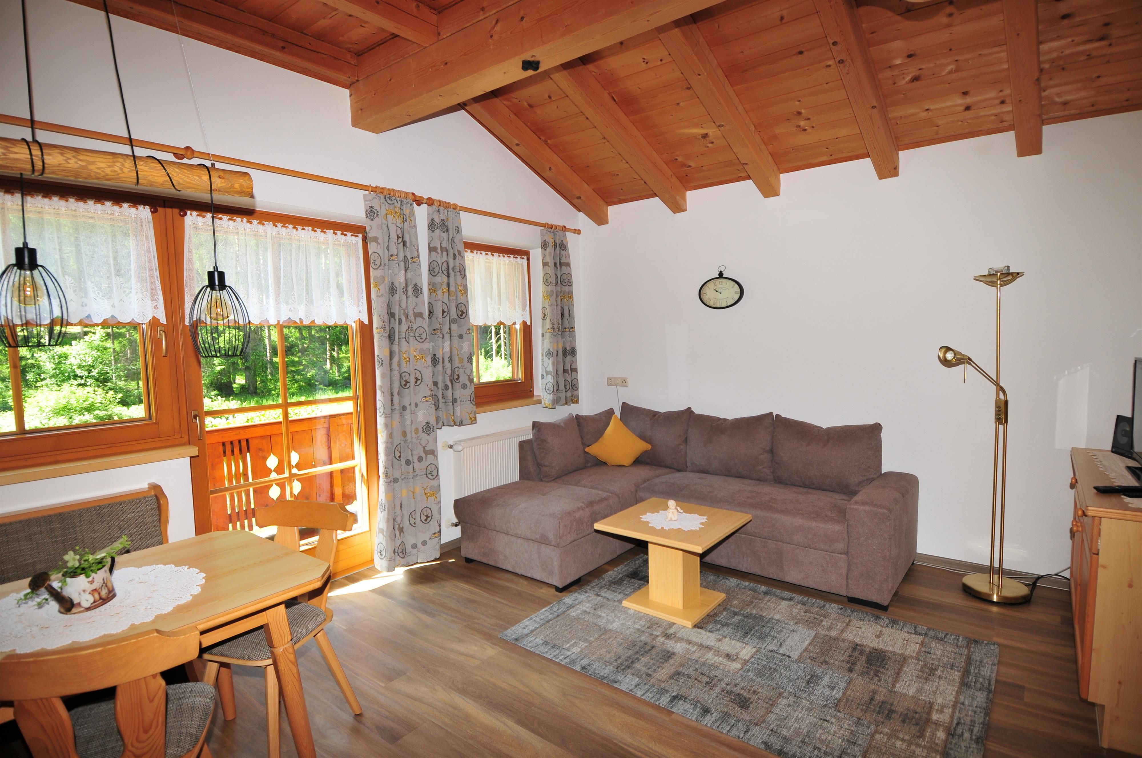 Willkommen in Ihrem Urlaubs-Daheim!Viel Freude bei der Ferienplanung - wir freuen uns, Sie bei uns in familiärer Atmosphäre herzlich zu begrüßen! Wir haben unser Haus im Jahr 1999 gebaut und 'hegen und pflegen' unser Zuhause seither mit viel Liebe und Freude. Es liegt am Waldrand, fern vom Straßenlärm.Die Ferienwohnung ist im ersten Stock und hat fast 90m2 - genug Platz im und ums Haus für Ihren Wohlfühl-Urlaub!Balkone nach Süden und Westen laden zum Verweilen ein.Brötchenservice auf Wunsch.Elektrischer Schuhtrockner vorhanden.