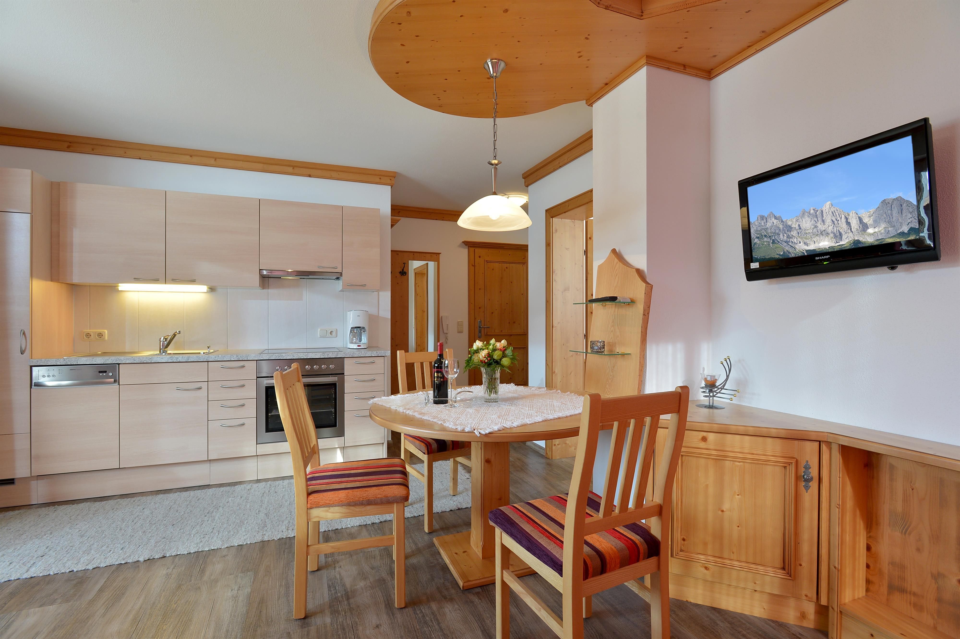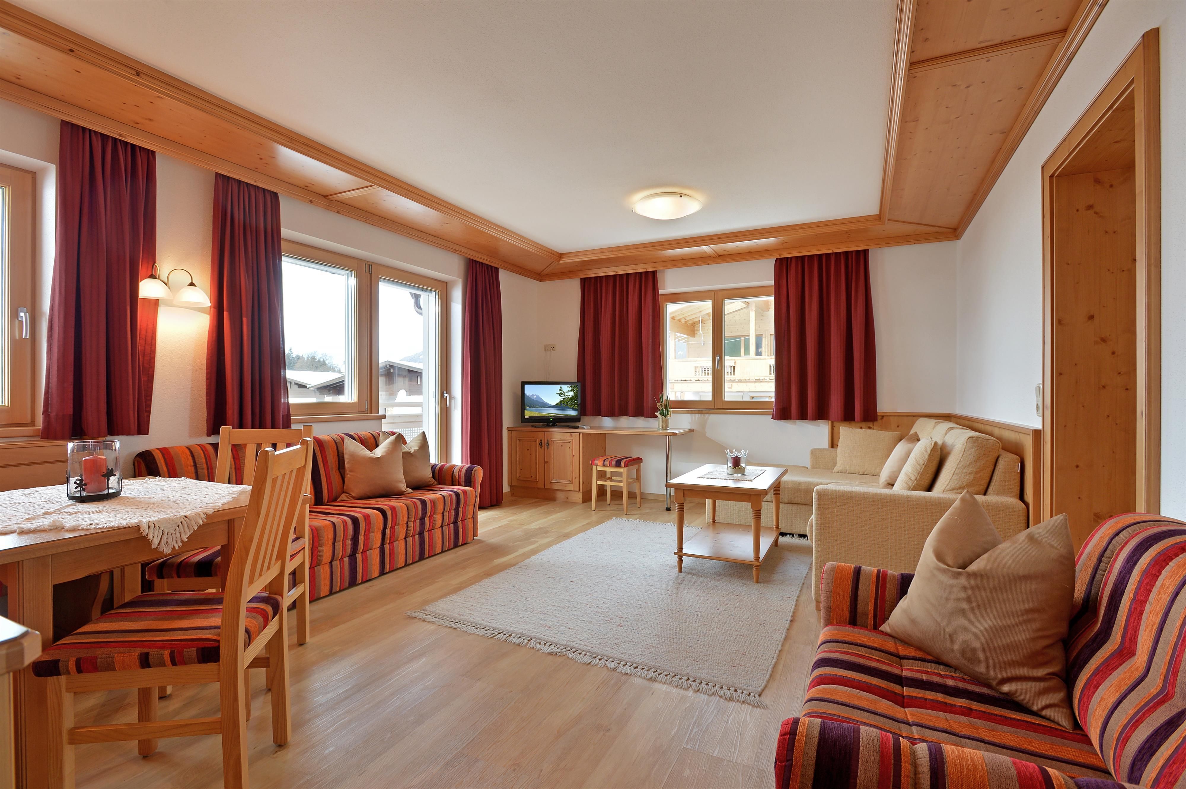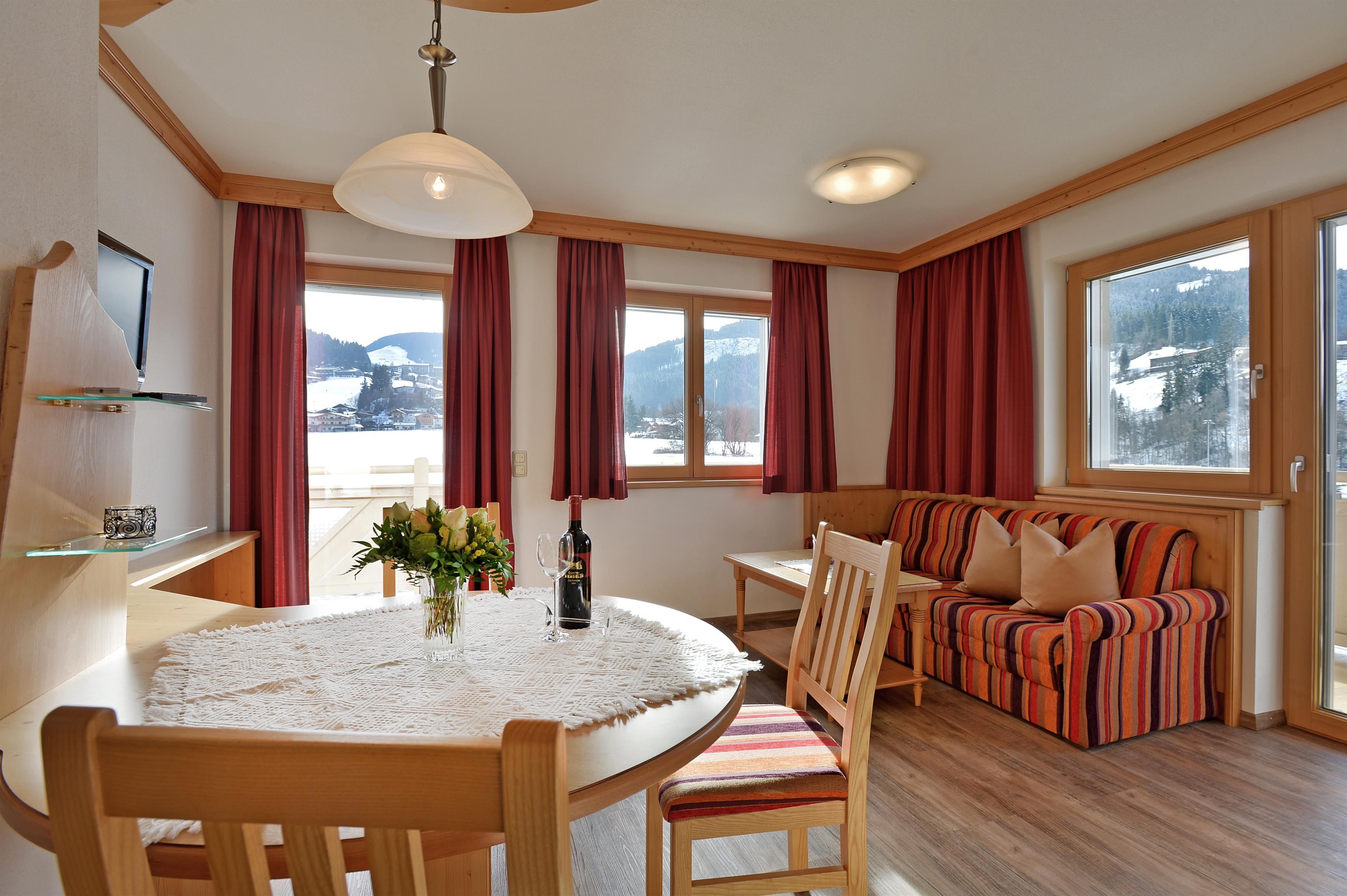 Wohlfühl Appartement für unvergessliche Momente!Den Gästen steht ein neu errichtetes Ferienhaus zur Verfügung, welches ebenfalls nur fünf Minuten vom Ortskern entfernt ist. Mit den Skiern kann man direkt bis zum Ferienhaus fahren. Die zwei Appartements (für 2-6 Personen) im neuen Ferienhaus verfügen über eine Sauna. Eine große Liegewiese sowie ausreichende Parkmöglichkeiten sind vorhanden.Alle Appartements werden bis ins Detail gehegt und gepflegt. Im Gegensatz zu den großen Hotels gelingt es so, eine heimische und familiäre Atmosphäre zu schaffen. In den liebevoll und komfortabel ausgestatteten Zimmern ist pures Wohlfühlen angesagt. Die hellen und hochwertigen Materialien schaffen ein Ambiente, in welchen man sich entspannt fallen lassen kann. Alle Zimmer verfügen über eine moderne Ausstattung, die keine Wünsche offen lassen. Der traditionell-rustikale Einrichtungsstil steigert die Gemütlichkeit und das Geborgenheitsgefühl noch zusätzlich.