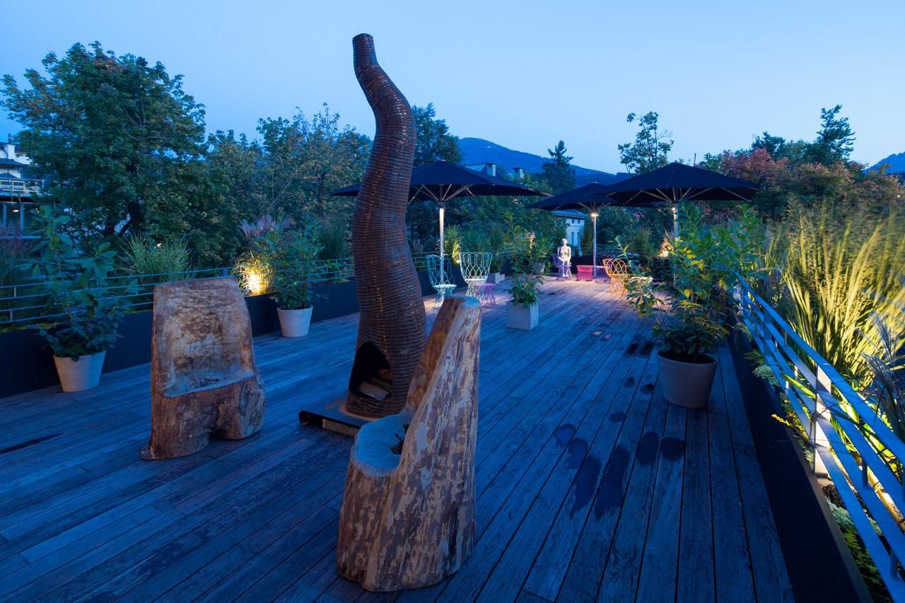 Kaum ein zentrales Innsbrucker Hotel ist so ruhig gelegen wie das NALA - im gemütlichen Stadtteil Wilten. Im Süden hört man neben den eigenen Gedanken den Brunnen im Park und das Vogelgezwitscher. In vielen Zimmern können Sie sogar bei offenem Fenster schlafen und in manchen den herrlichen Balkon, mit freiem Blick auf die südliche Bergwelt und die Bergisel-Schanze genießen. Alle Zimmer verfügen über einen Flachbild-Kabel-TV in der richtigen Größe, Dusche oder Badewanne, Nespressomaschine und allem was Sie sich sonst erwarten. Vor allem aber ist bei uns fast jedes Zimmer ein Einzelstück und hat seinen eigenen Charme. Sie können also im „Cinema“, „Gold“ oder auch „Oriental“ landen. Jedes wird Sie überzeugen! Das NALA Individuellhotel hat mit 150 Mbit/s nicht nur das schnellste Netz aller Innsbrucker Hotels. Es ist natürlich auch kabel- und kostenlos. Eine Bauteilkühlung/Heizung gibt jederzeit die richtige Temperatur und das ohne unangenehme Zugluft. Die Terrasse und viele kleine Räumlichkeiten fördern Kommunikation und Entspannung. Kleiner neuer Fitnessraum mit Infrarotkabine ebenfalls. Zu Fuß sind Sie in zwei Minuten in der Maria-Theresien-Straße, Haupteinkaufsstraße Innsbrucks. 10 Minuten weiter in der Stadt. Parken können Sie beim Hotel oder in der Postgarage Innsbruck.