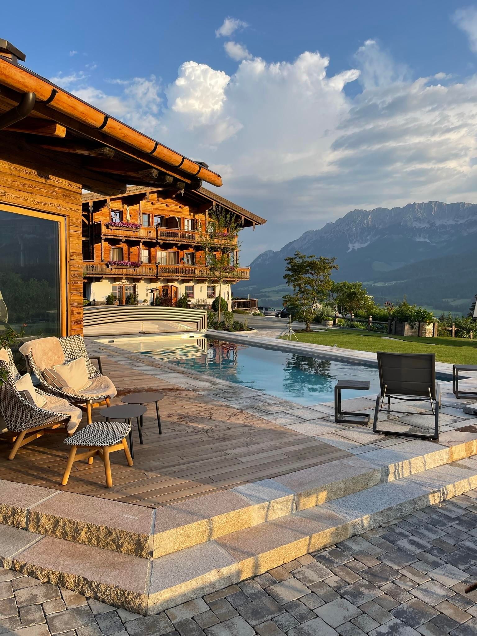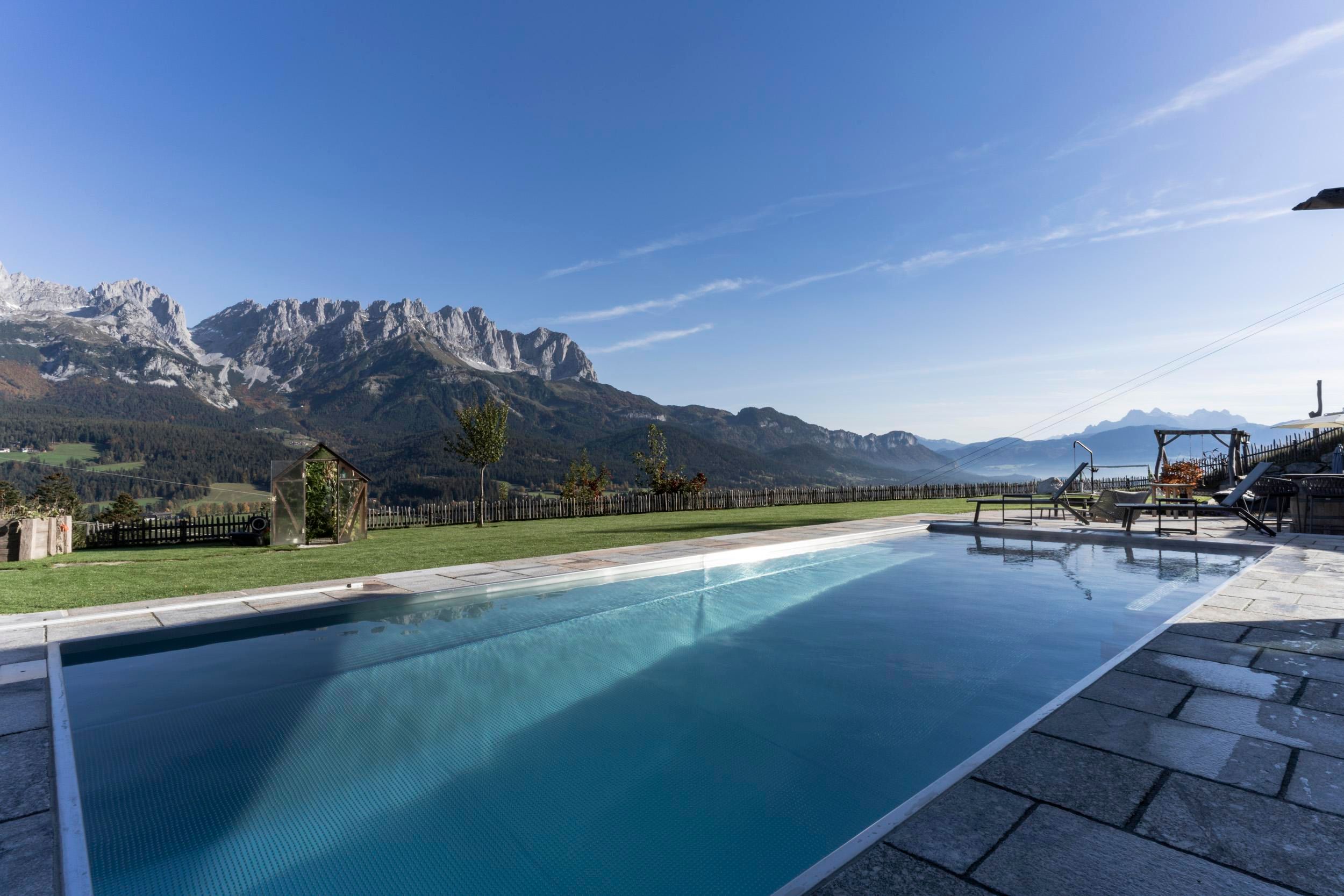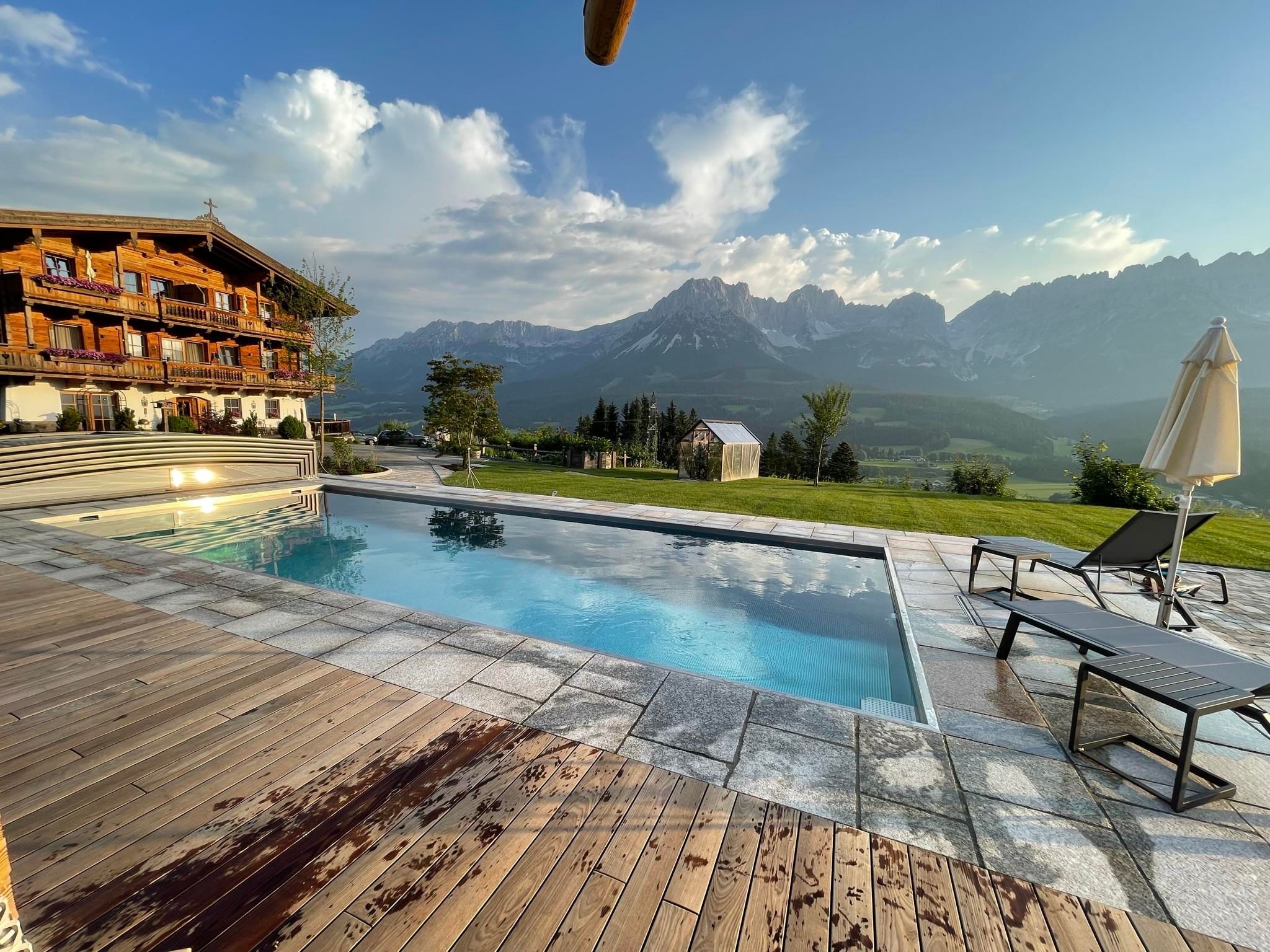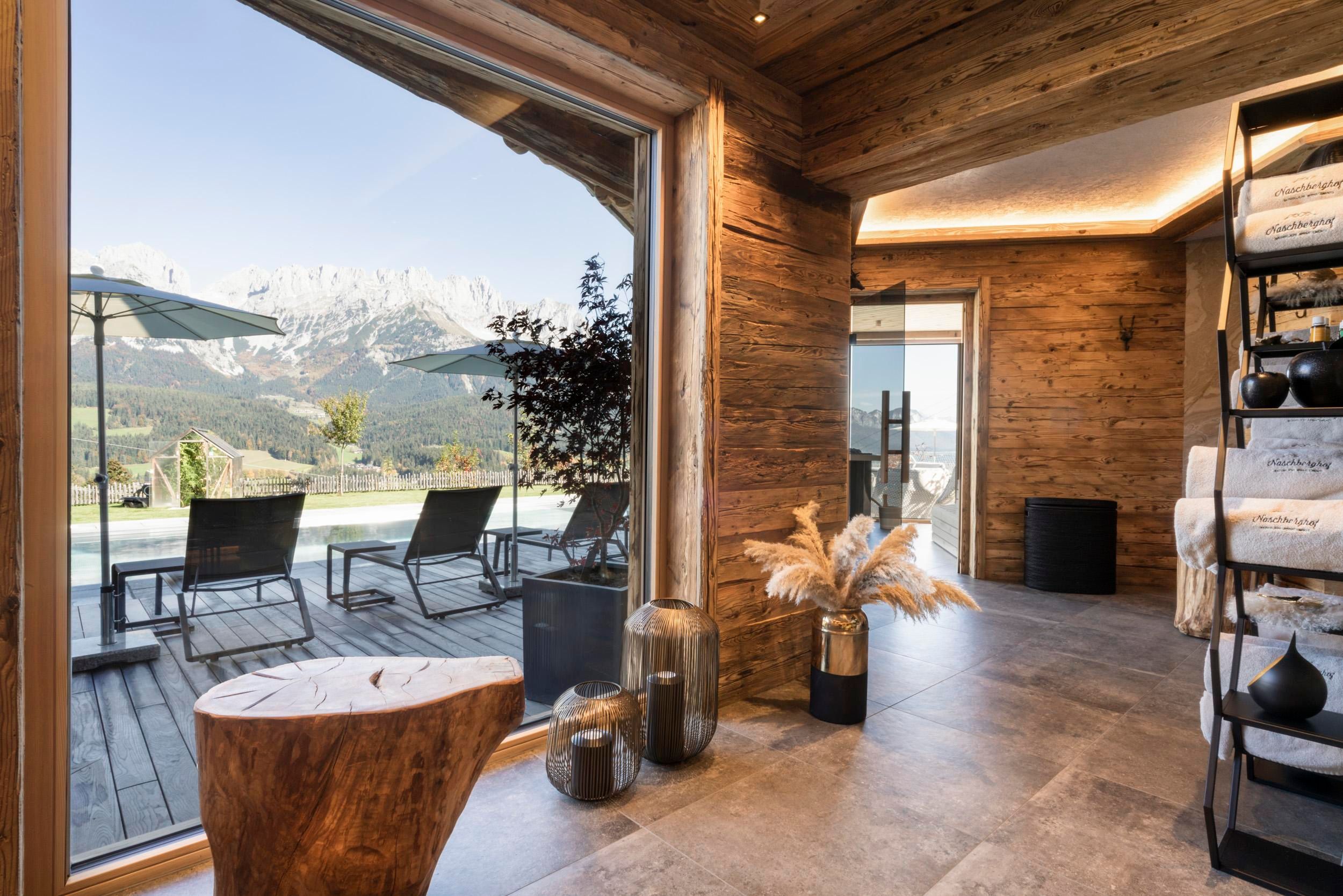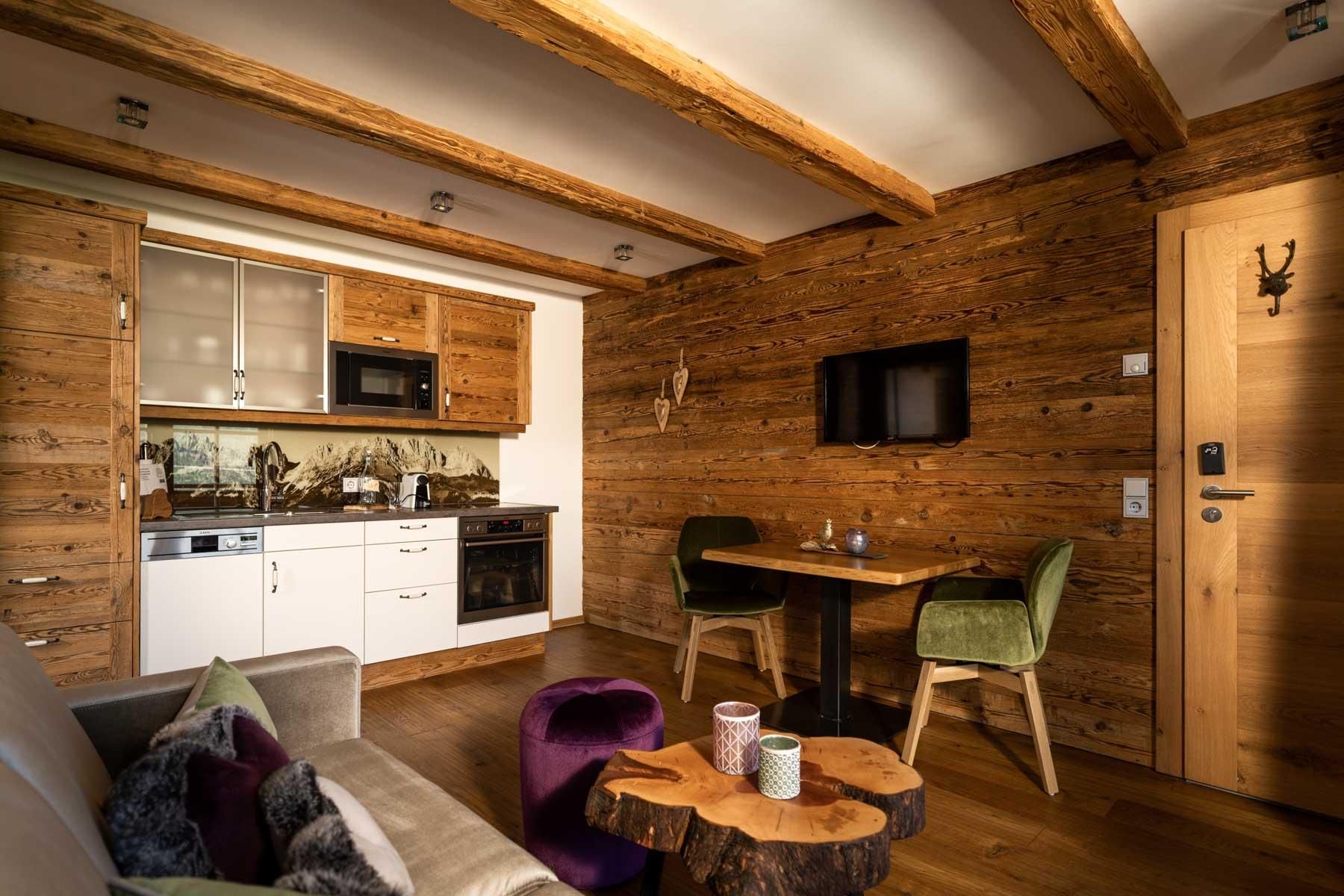 Der geschichtsträchtige Naschberghof wurde im Jahr 2013 neu errichtet. Seit Winter 2014/2015 befinden sich hier drei kaiserliche Appartements in ökologischer Holzbauweise im traditionellen Tiroler Stil mit einer hochwertigen Innenausstattung. Die Küchen erfüllen höchste Ansprüche an Ausstattung und Funktionalität und die Bäder überzeugen durch modernes Design. Jedes Appartement verfügt über einen großen Balkon.„Urlaub in der Natur - Auszeit vom Alltag“Wenn Sie unter dem Motto Ihren Urlaub verbringen möchten, dann sind Sie bei uns genau richtig!Unser Naschberghof liegt auf einem Plateau etwas oberhalb vom Ortszentrum Ellmau inmitten der Natur, umgeben von Wiesen und Wäldern. Von hier genießen Sie einen unverbauten und einzigarten Panoramablick auf das Bergmassiv des Wilden Kaisers sowie auf die gesamte Bergwelt. Zum Ortszentrum sind es 10 Minuten zu Fuß. Jedes Appartement im Naschberghof ist einzigartig, individuell und mit viel Liebe zum Detail und für das Außergewöhnliche gestaltet. Die exklusive Ausstattung lässt keine Wünsche offen. Wir legen höchsten Wert auf die Verarbeitung von natürlichen Materialien!Die Einrichtung ist sehr gemütlich und luxuriös. Naturholz sowie Altholz sorgen für ein entsprechendes Ambiente. Zirbenholz in den Schlafzimmern für einen gesunden Schlaf sowie massive Holzböden mit Fußbodenheizung und in zwei Appartements ein offener Kamin sorgen für eine wohlige Wärme und runden das Wohlbefinden ab. Einem gesunden und behaglichen Raumklima und somit einem erholsamen Urlaub steht nichts mehr im Wege.Die Küchen erfüllen höchste Ansprüche an Ausstattung und Funktionalität und die Bäder überzeugen durch modernes Design. Jedes Appartement verfügt über einen großen Balkon.Der Naschberghof ist idealer Ausgangspunkt für viele Aktivitäten ob Sommer oder Winter.Im Winter heißts bei uns “Skifahren von der Haustüre weg”. Sie haben Anschluss an den Skigroßraum Wilder Kaiser/Brixental sowie zum Skigebiet Astberg/Going . Außerdem führt Sie ein Schlepplift direkt zu unserem Haus. Die 4,5 km lange und beleuchtete Rodelbahn liegt fünf Minuten zu Fuß von uns entfernt. Weiterhin haben wir eine Eisstockbahn mit 2 Bahnen, wo Sie eine lustige Partie spielen können. Im Sommer haben Sie direkten Anschluss ins Wanderwegenetz. Wanderwege führen direkt am Haus entlang.Im Winter benötigen Sie Schneeketten oder Allrad.Wir freuen uns, Sie bei uns begrüßen zu dürfen!