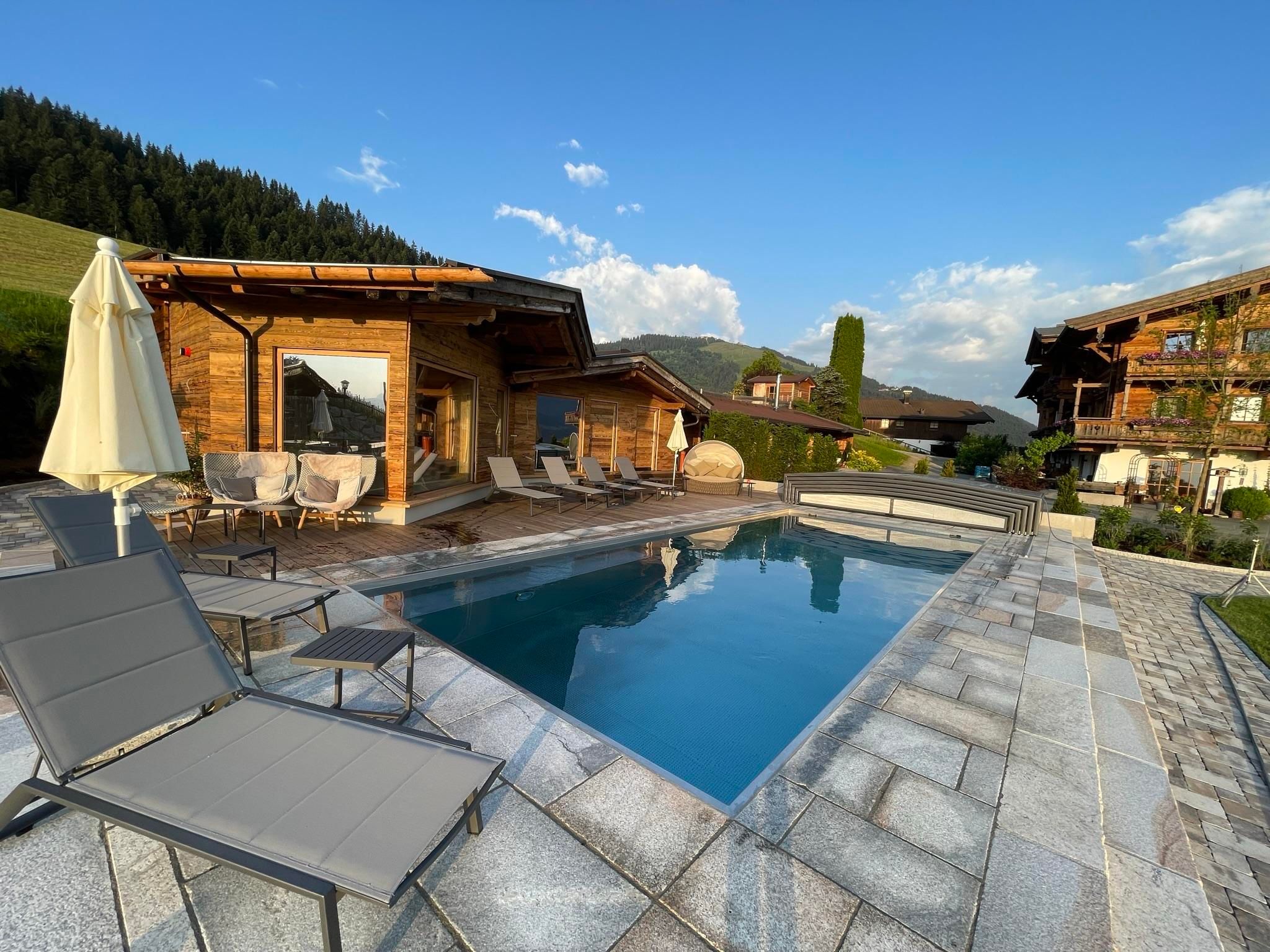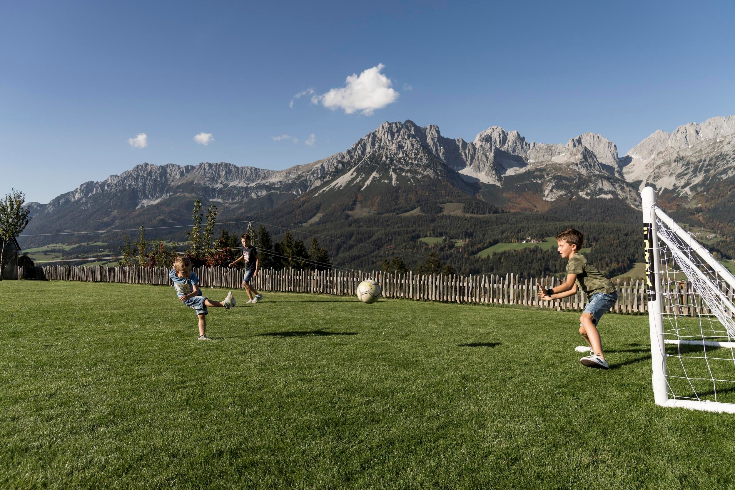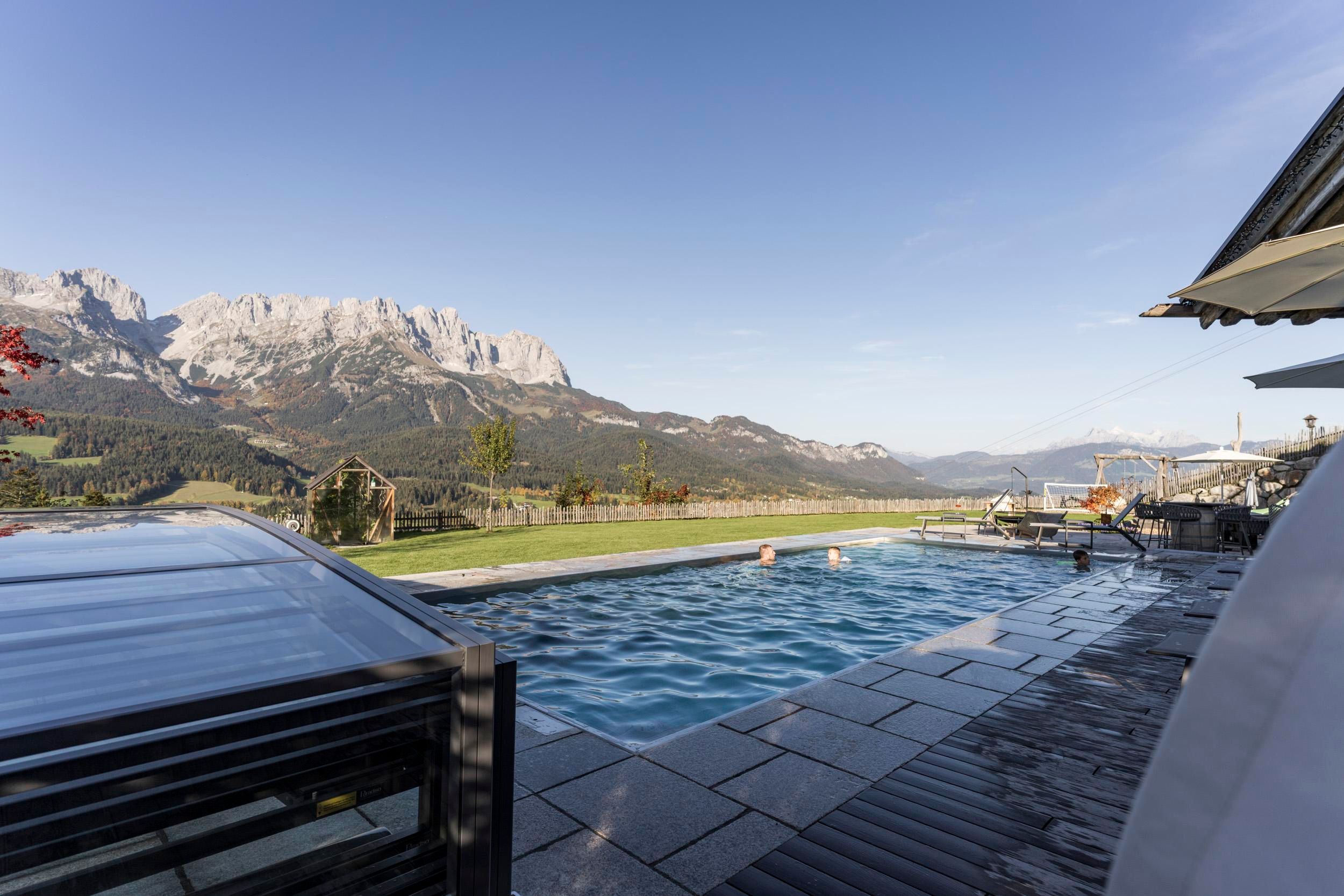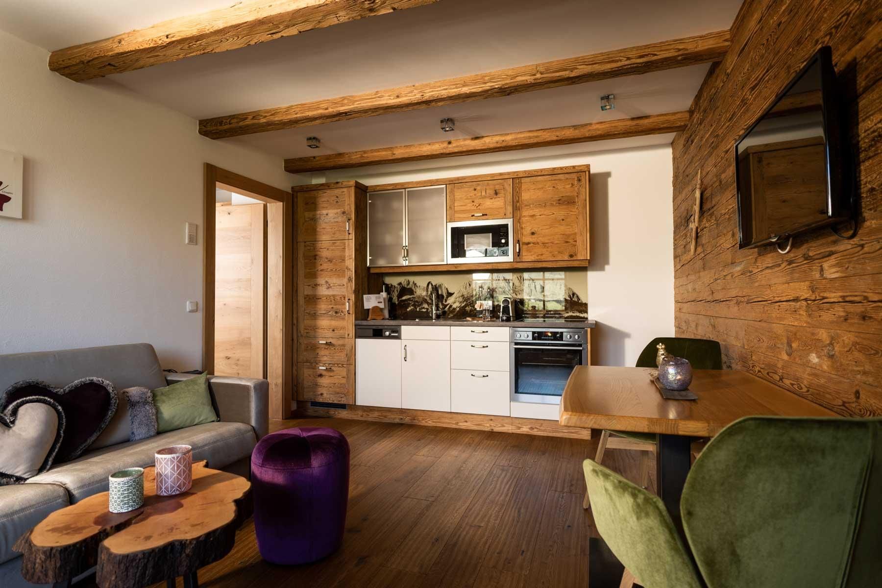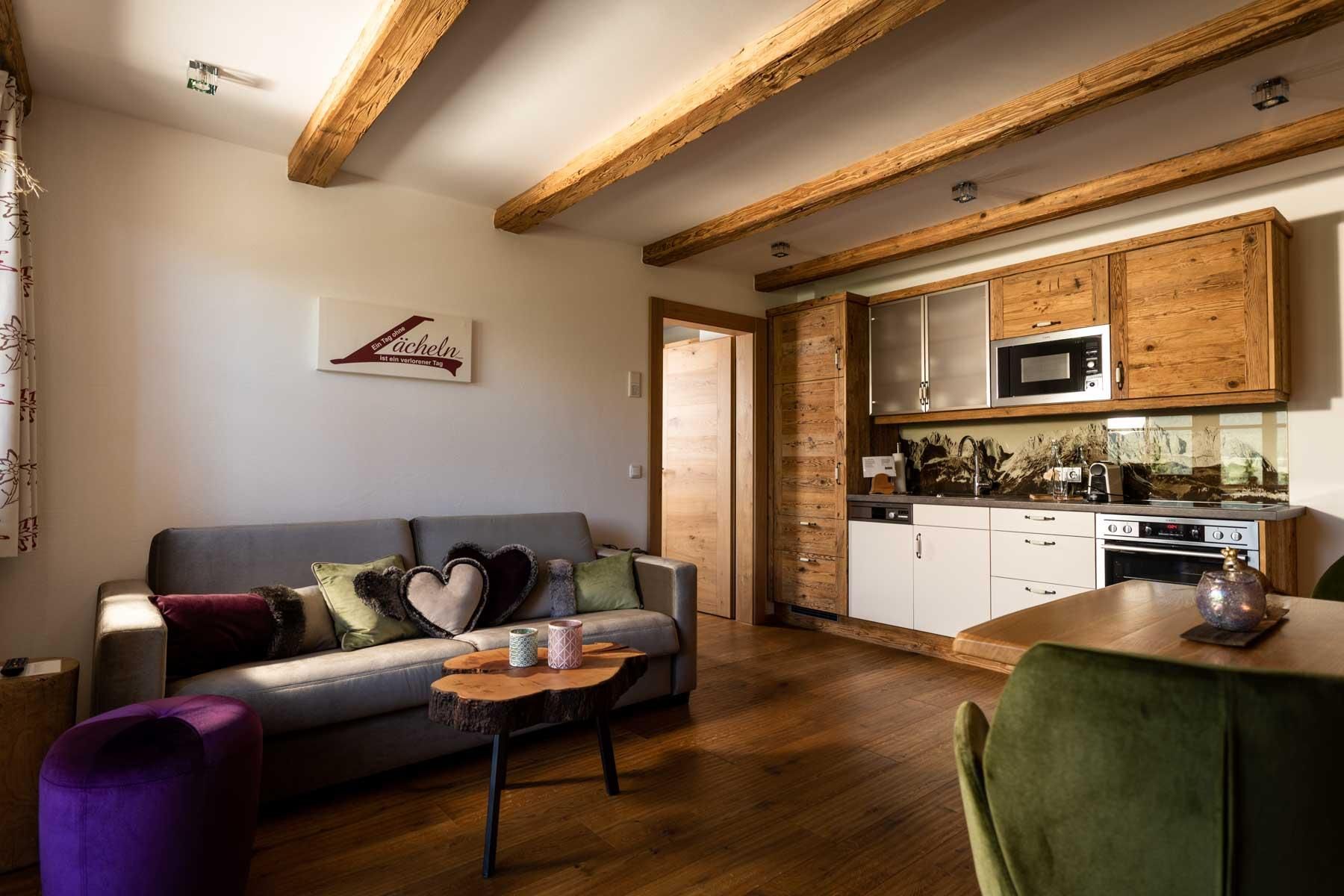 Der geschichtsträchtige Naschberghof wurde im Jahr 2013 neu errichtet. Seit Winter 2014/2015 befinden sich hier drei kaiserliche Appartements in ökologischer Holzbauweise im traditionellen Tiroler Stil mit einer hochwertigen Innenausstattung. Die Küchen erfüllen höchste Ansprüche an Ausstattung und Funktionalität und die Bäder überzeugen durch modernes Design. Jedes Appartement verfügt über einen großen Balkon.„Urlaub in der Natur - Auszeit vom Alltag“Wenn Sie unter dem Motto Ihren Urlaub verbringen möchten, dann sind Sie bei uns genau richtig!Unser Naschberghof liegt auf einem Plateau etwas oberhalb vom Ortszentrum Ellmau inmitten der Natur, umgeben von Wiesen und Wäldern. Von hier genießen Sie einen unverbauten und einzigarten Panoramablick auf das Bergmassiv des Wilden Kaisers sowie auf die gesamte Bergwelt. Zum Ortszentrum sind es 10 Minuten zu Fuß. Jedes Appartement im Naschberghof ist einzigartig, individuell und mit viel Liebe zum Detail und für das Außergewöhnliche gestaltet. Die exklusive Ausstattung lässt keine Wünsche offen. Wir legen höchsten Wert auf die Verarbeitung von natürlichen Materialien!Die Einrichtung ist sehr gemütlich und luxuriös. Naturholz sowie Altholz sorgen für ein entsprechendes Ambiente. Zirbenholz in den Schlafzimmern für einen gesunden Schlaf sowie massive Holzböden mit Fußbodenheizung und in zwei Appartements ein offener Kamin sorgen für eine wohlige Wärme und runden das Wohlbefinden ab. Einem gesunden und behaglichen Raumklima und somit einem erholsamen Urlaub steht nichts mehr im Wege.Die Küchen erfüllen höchste Ansprüche an Ausstattung und Funktionalität und die Bäder überzeugen durch modernes Design. Jedes Appartement verfügt über einen großen Balkon.Der Naschberghof ist idealer Ausgangspunkt für viele Aktivitäten ob Sommer oder Winter.Im Winter heißts bei uns “Skifahren von der Haustüre weg”. Sie haben Anschluss an den Skigroßraum Wilder Kaiser/Brixental sowie zum Skigebiet Astberg/Going . Außerdem führt Sie ein Schlepplift direkt zu unserem Haus. Die 4,5 km lange und beleuchtete Rodelbahn liegt fünf Minuten zu Fuß von uns entfernt. Weiterhin haben wir eine Eisstockbahn mit 2 Bahnen, wo Sie eine lustige Partie spielen können. Im Sommer haben Sie direkten Anschluss ins Wanderwegenetz. Wanderwege führen direkt am Haus entlang.Im Winter benötigen Sie Schneeketten oder Allrad.Wir freuen uns, Sie bei uns begrüßen zu dürfen!