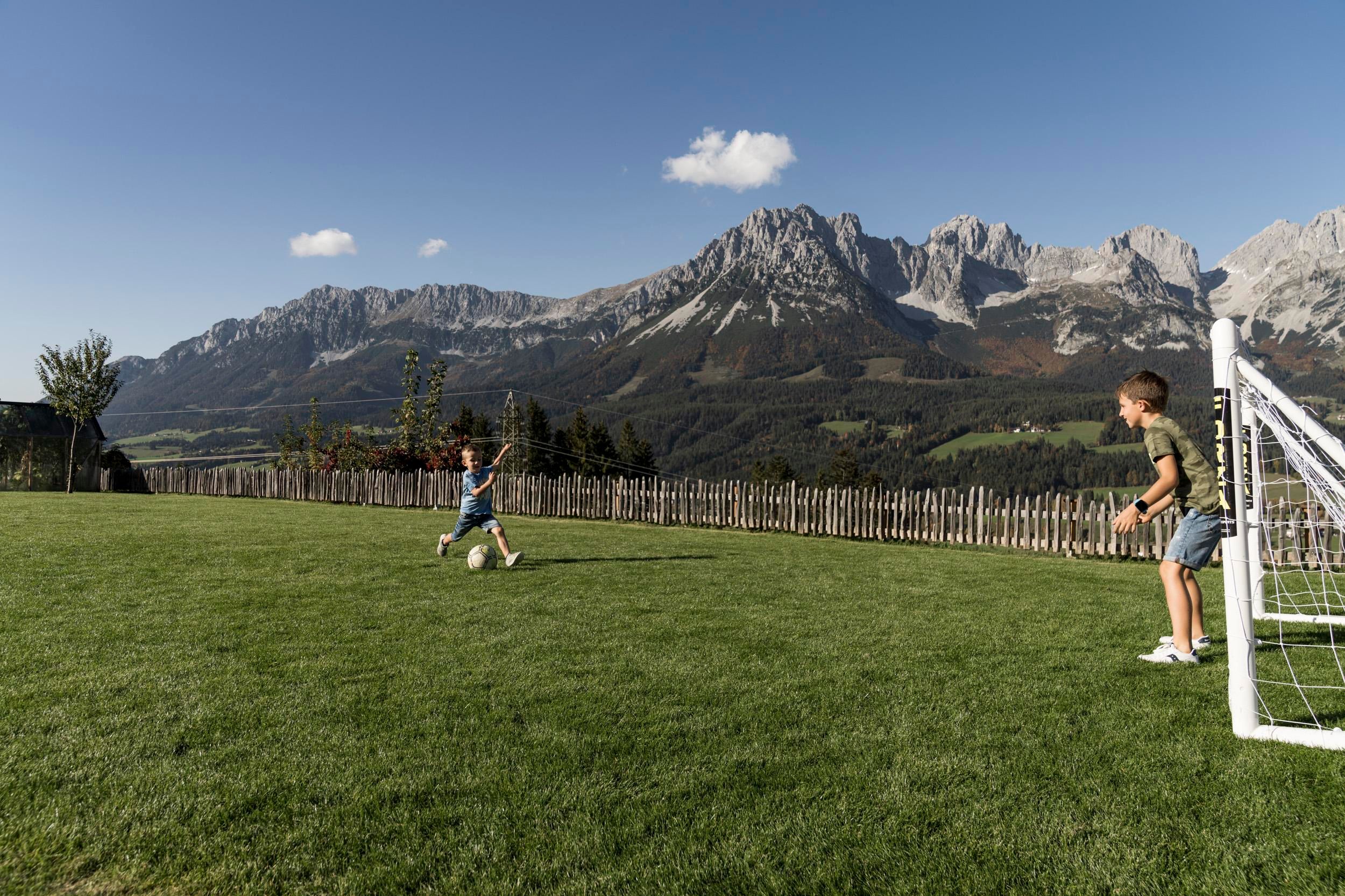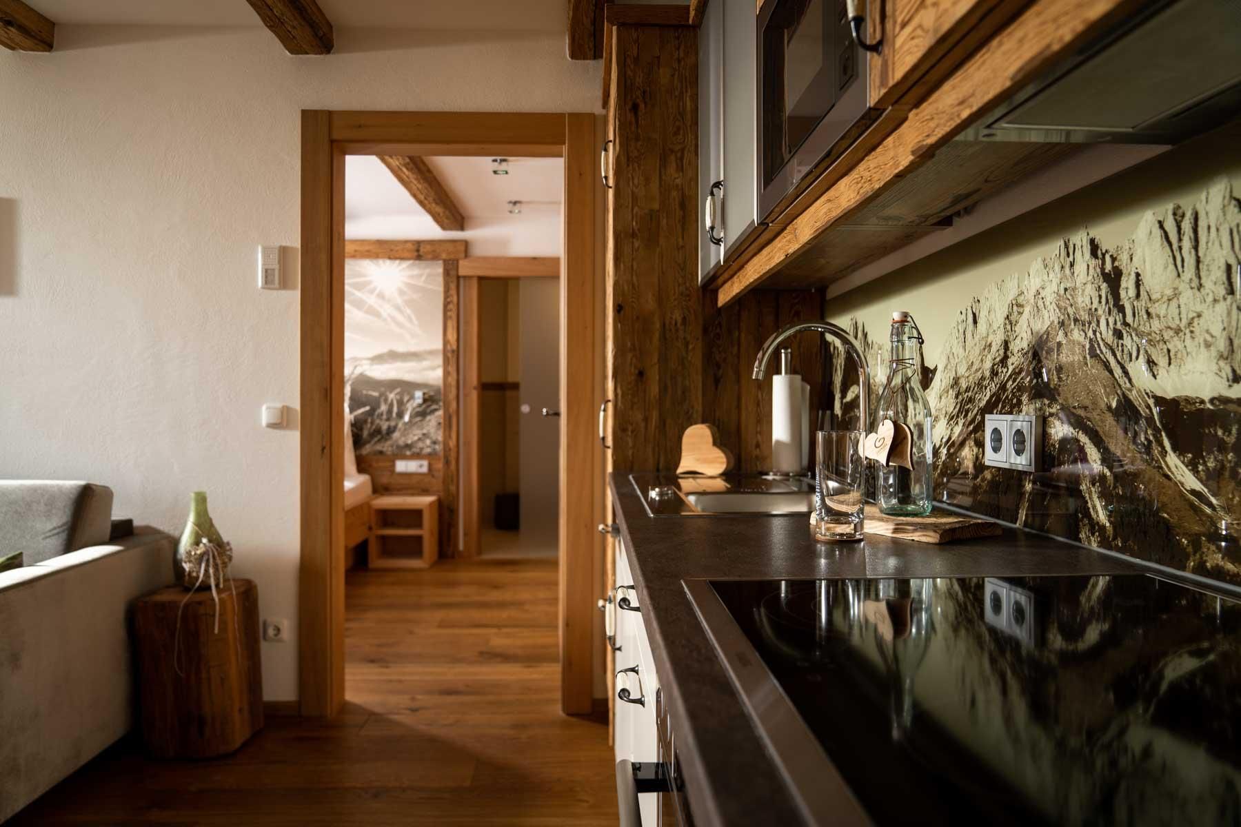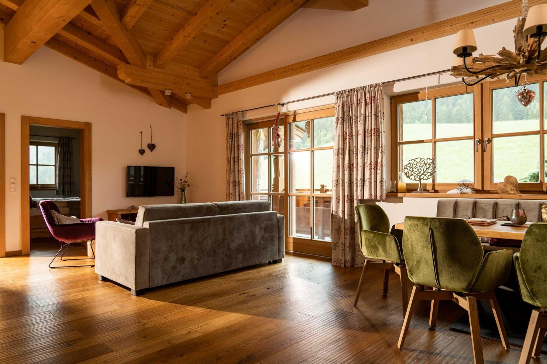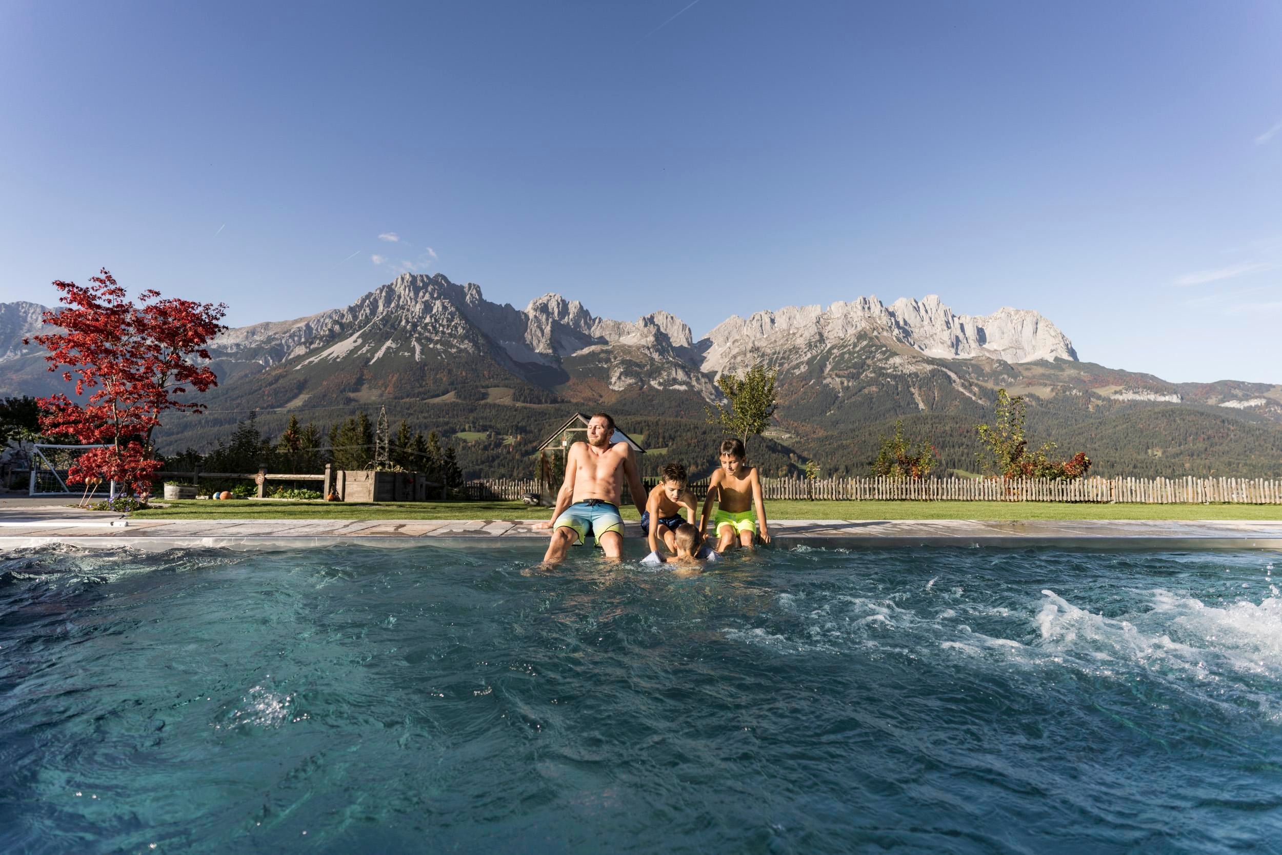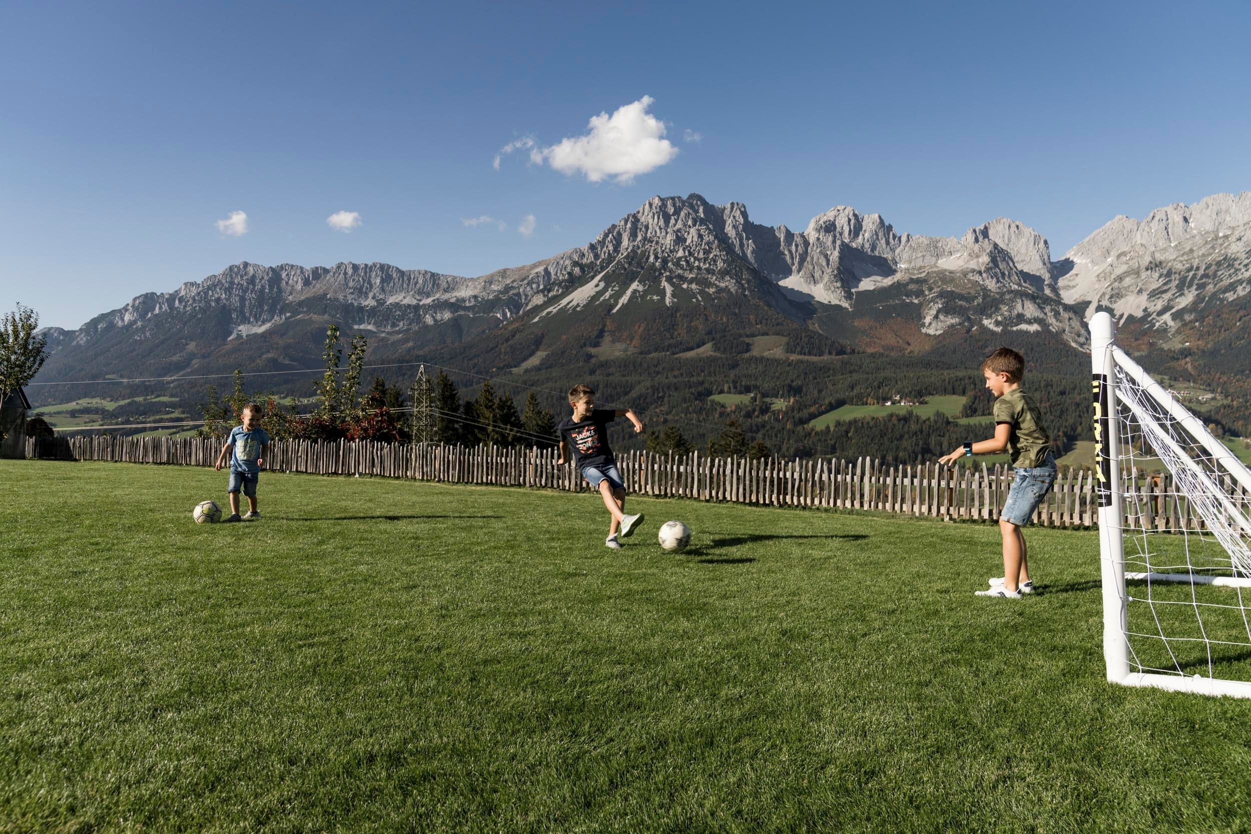 Der geschichtsträchtige Naschberghof wurde im Jahr 2013 neu errichtet. Seit Winter 2014/2015 befinden sich hier drei kaiserliche Appartements in ökologischer Holzbauweise im traditionellen Tiroler Stil mit einer hochwertigen Innenausstattung. Die Küchen erfüllen höchste Ansprüche an Ausstattung und Funktionalität und die Bäder überzeugen durch modernes Design. Jedes Appartement verfügt über einen großen Balkon.„Urlaub in der Natur - Auszeit vom Alltag“Wenn Sie unter dem Motto Ihren Urlaub verbringen möchten, dann sind Sie bei uns genau richtig!Unser Naschberghof liegt auf einem Plateau etwas oberhalb vom Ortszentrum Ellmau inmitten der Natur, umgeben von Wiesen und Wäldern. Von hier genießen Sie einen unverbauten und einzigarten Panoramablick auf das Bergmassiv des Wilden Kaisers sowie auf die gesamte Bergwelt. Zum Ortszentrum sind es 10 Minuten zu Fuß. Jedes Appartement im Naschberghof ist einzigartig, individuell und mit viel Liebe zum Detail und für das Außergewöhnliche gestaltet. Die exklusive Ausstattung lässt keine Wünsche offen. Wir legen höchsten Wert auf die Verarbeitung von natürlichen Materialien!Die Einrichtung ist sehr gemütlich und luxuriös. Naturholz sowie Altholz sorgen für ein entsprechendes Ambiente. Zirbenholz in den Schlafzimmern für einen gesunden Schlaf sowie massive Holzböden mit Fußbodenheizung und in zwei Appartements ein offener Kamin sorgen für eine wohlige Wärme und runden das Wohlbefinden ab. Einem gesunden und behaglichen Raumklima und somit einem erholsamen Urlaub steht nichts mehr im Wege.Die Küchen erfüllen höchste Ansprüche an Ausstattung und Funktionalität und die Bäder überzeugen durch modernes Design. Jedes Appartement verfügt über einen großen Balkon.Der Naschberghof ist idealer Ausgangspunkt für viele Aktivitäten ob Sommer oder Winter.Im Winter heißts bei uns “Skifahren von der Haustüre weg”. Sie haben Anschluss an den Skigroßraum Wilder Kaiser/Brixental sowie zum Skigebiet Astberg/Going . Außerdem führt Sie ein Schlepplift direkt zu unserem Haus. Die 4,5 km lange und beleuchtete Rodelbahn liegt fünf Minuten zu Fuß von uns entfernt. Weiterhin haben wir eine Eisstockbahn mit 2 Bahnen, wo Sie eine lustige Partie spielen können. Im Sommer haben Sie direkten Anschluss ins Wanderwegenetz. Wanderwege führen direkt am Haus entlang.Im Winter benötigen Sie Schneeketten oder Allrad.Wir freuen uns, Sie bei uns begrüßen zu dürfen!