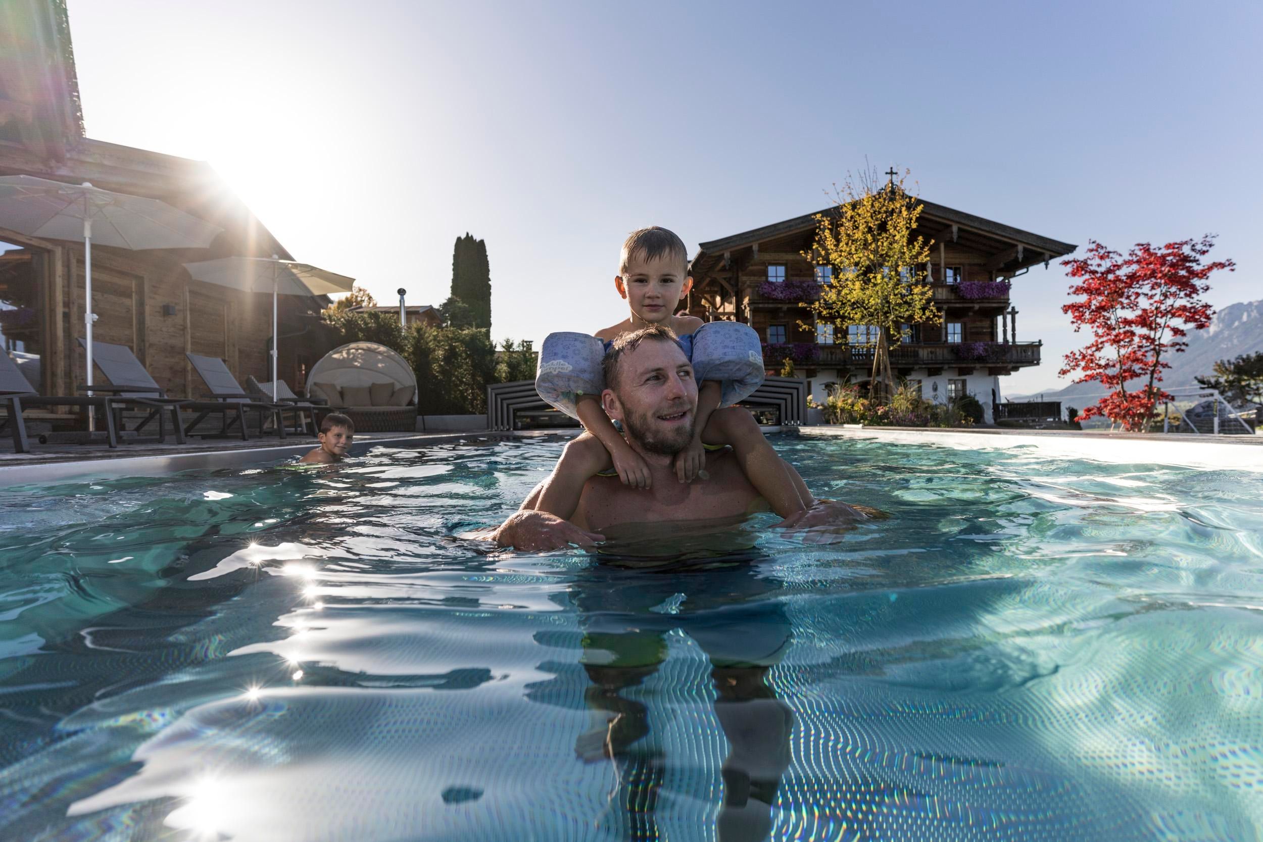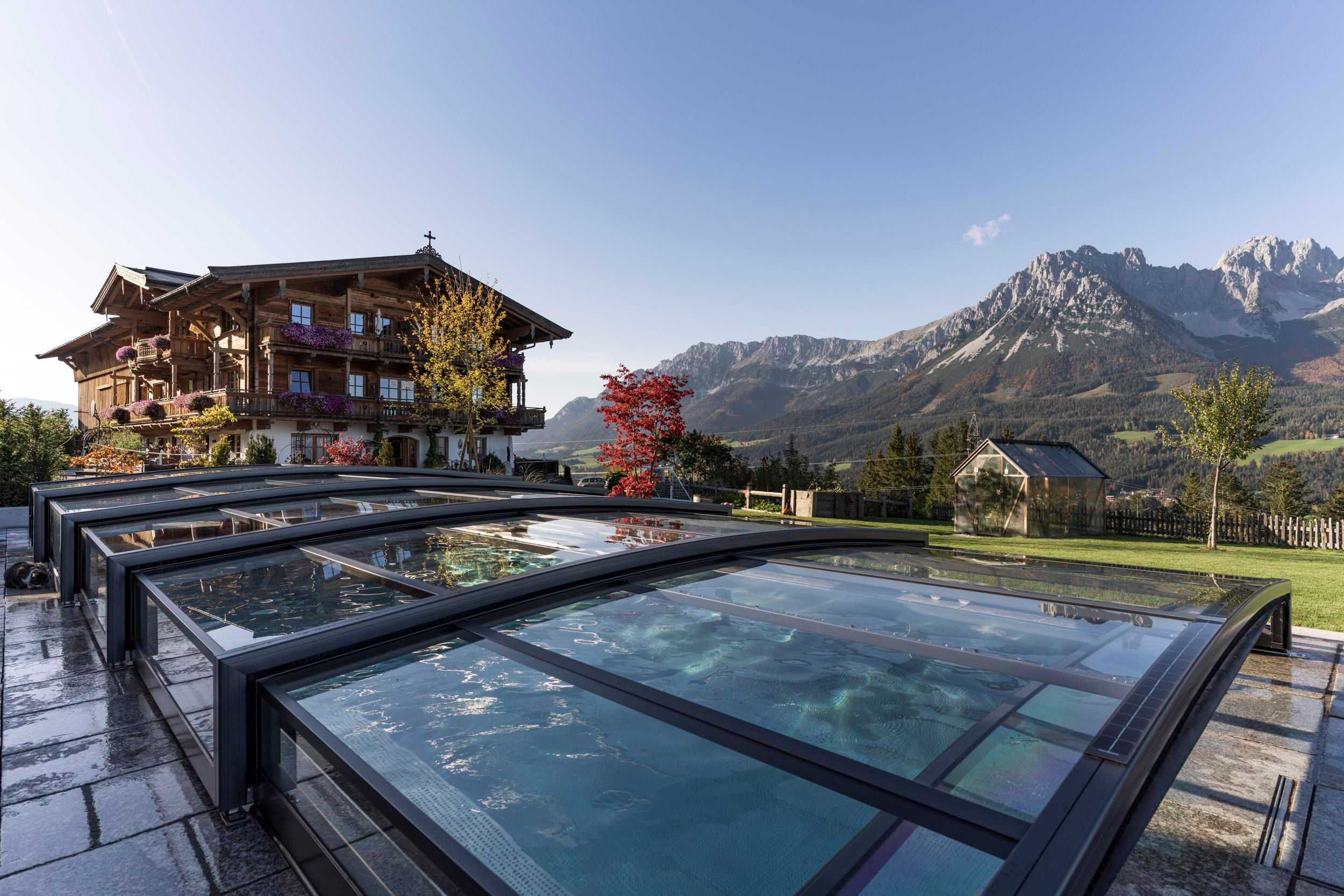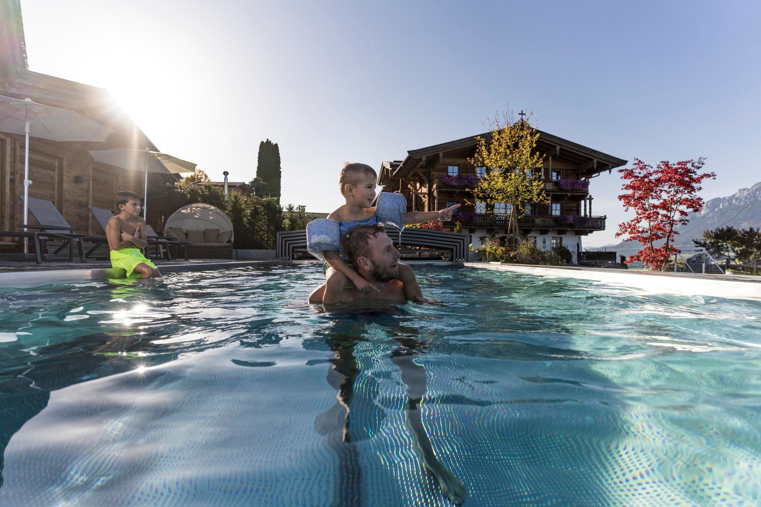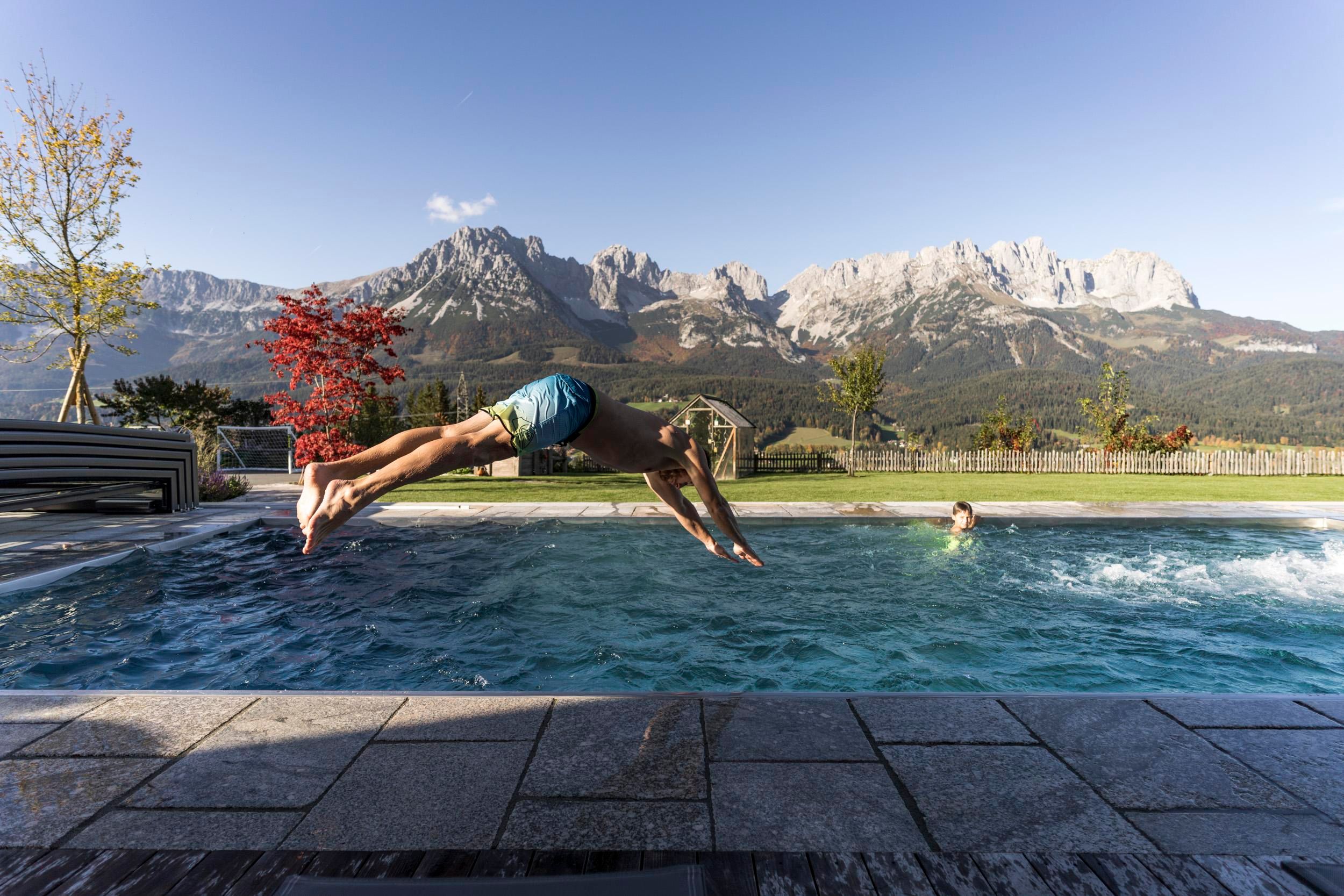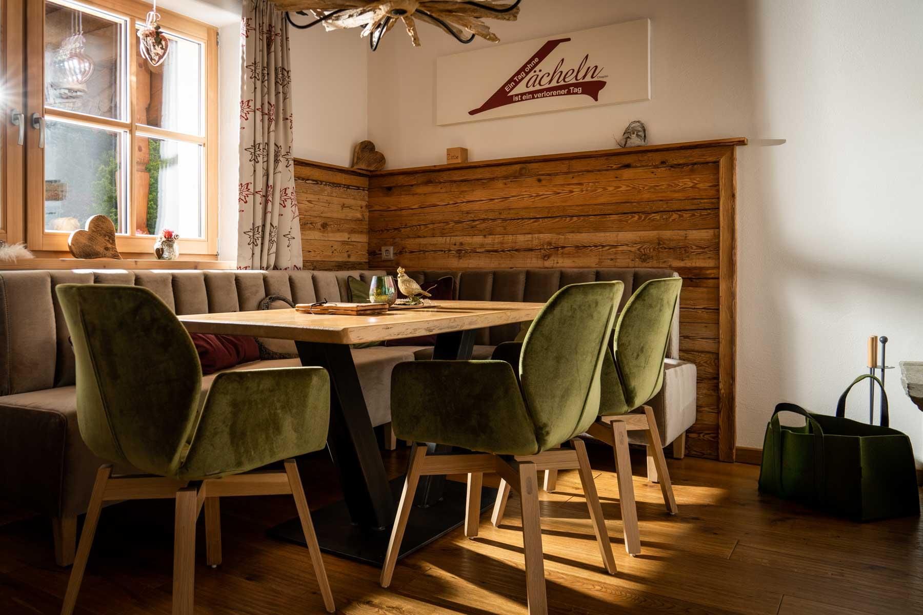 Der geschichtsträchtige Naschberghof wurde im Jahr 2013 neu errichtet. Seit Winter 2014/2015 befinden sich hier drei kaiserliche Appartements in ökologischer Holzbauweise im traditionellen Tiroler Stil mit einer hochwertigen Innenausstattung. Die Küchen erfüllen höchste Ansprüche an Ausstattung und Funktionalität und die Bäder überzeugen durch modernes Design. Jedes Appartement verfügt über einen großen Balkon.„Urlaub in der Natur - Auszeit vom Alltag“Wenn Sie unter dem Motto Ihren Urlaub verbringen möchten, dann sind Sie bei uns genau richtig!Unser Naschberghof liegt auf einem Plateau etwas oberhalb vom Ortszentrum Ellmau inmitten der Natur, umgeben von Wiesen und Wäldern. Von hier genießen Sie einen unverbauten und einzigarten Panoramablick auf das Bergmassiv des Wilden Kaisers sowie auf die gesamte Bergwelt. Zum Ortszentrum sind es 10 Minuten zu Fuß. Jedes Appartement im Naschberghof ist einzigartig, individuell und mit viel Liebe zum Detail und für das Außergewöhnliche gestaltet. Die exklusive Ausstattung lässt keine Wünsche offen. Wir legen höchsten Wert auf die Verarbeitung von natürlichen Materialien!Die Einrichtung ist sehr gemütlich und luxuriös. Naturholz sowie Altholz sorgen für ein entsprechendes Ambiente. Zirbenholz in den Schlafzimmern für einen gesunden Schlaf sowie massive Holzböden mit Fußbodenheizung und in zwei Appartements ein offener Kamin sorgen für eine wohlige Wärme und runden das Wohlbefinden ab. Einem gesunden und behaglichen Raumklima und somit einem erholsamen Urlaub steht nichts mehr im Wege.Die Küchen erfüllen höchste Ansprüche an Ausstattung und Funktionalität und die Bäder überzeugen durch modernes Design. Jedes Appartement verfügt über einen großen Balkon.Der Naschberghof ist idealer Ausgangspunkt für viele Aktivitäten ob Sommer oder Winter.Im Winter heißts bei uns “Skifahren von der Haustüre weg”. Sie haben Anschluss an den Skigroßraum Wilder Kaiser/Brixental sowie zum Skigebiet Astberg/Going . Außerdem führt Sie ein Schlepplift direkt zu unserem Haus. Die 4,5 km lange und beleuchtete Rodelbahn liegt fünf Minuten zu Fuß von uns entfernt. Weiterhin haben wir eine Eisstockbahn mit 2 Bahnen, wo Sie eine lustige Partie spielen können. Im Sommer haben Sie direkten Anschluss ins Wanderwegenetz. Wanderwege führen direkt am Haus entlang.Im Winter benötigen Sie Schneeketten oder Allrad.Wir freuen uns, Sie bei uns begrüßen zu dürfen!
