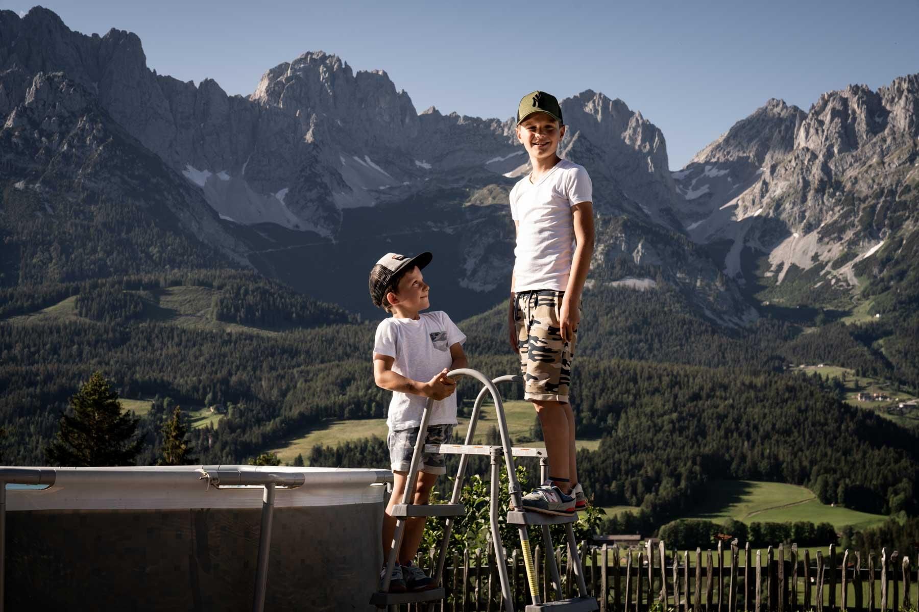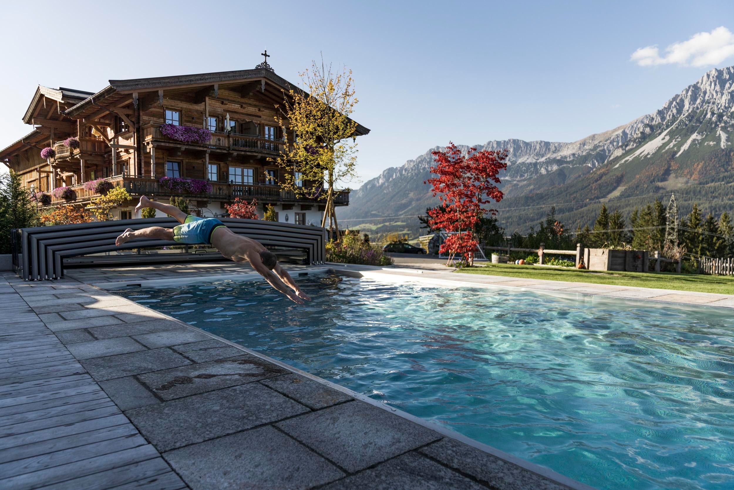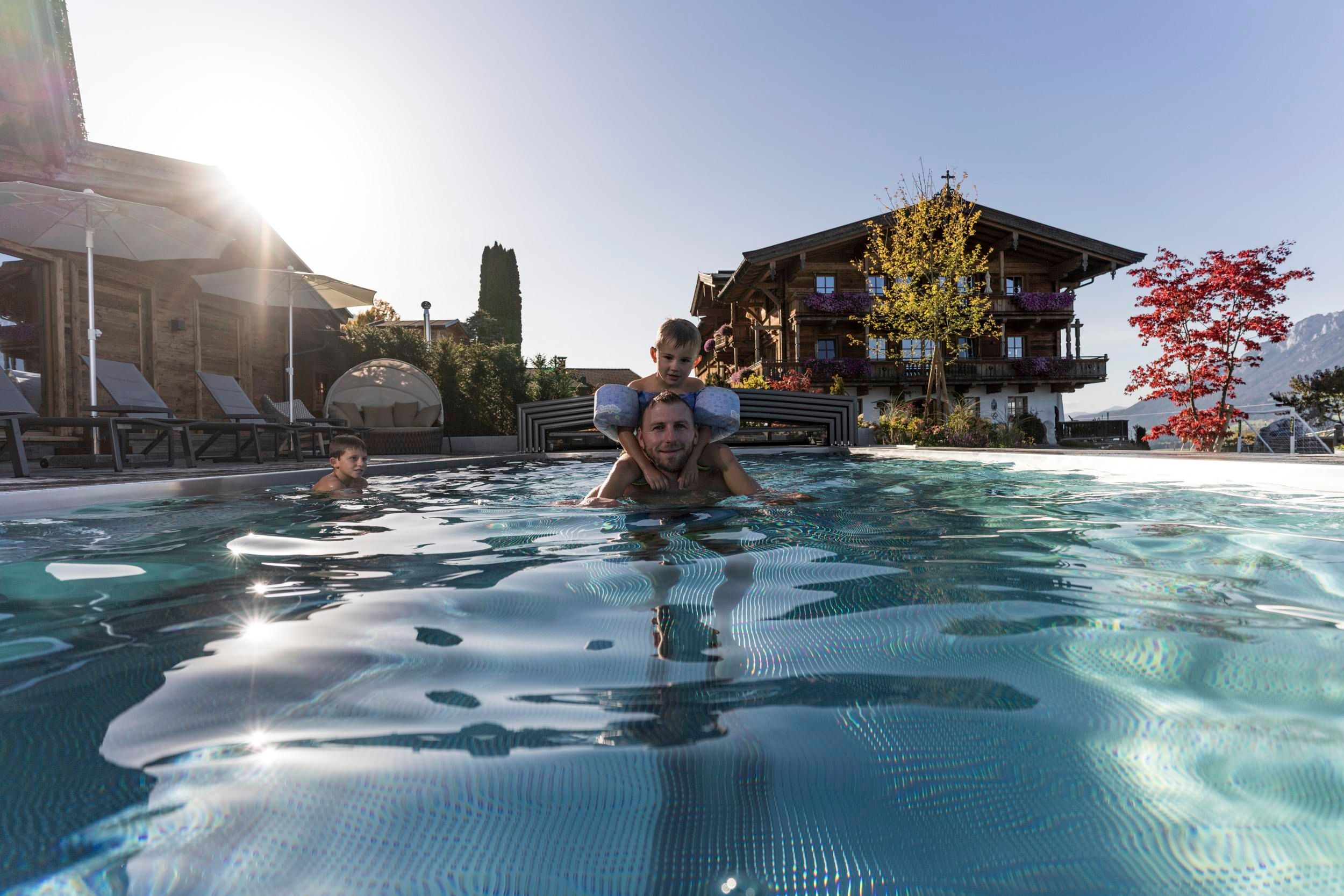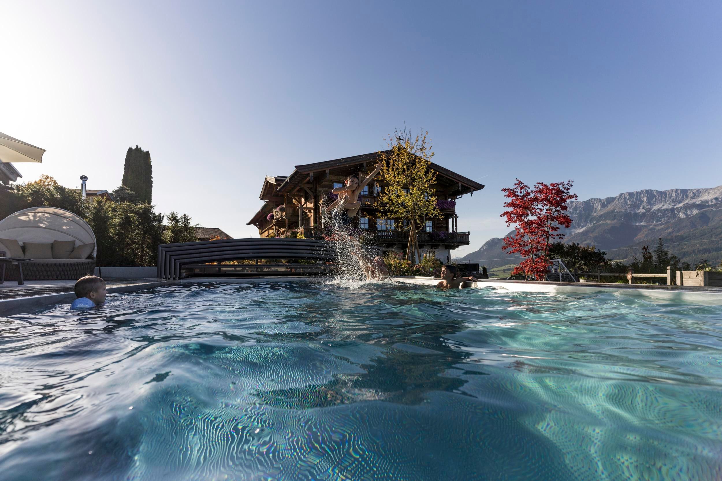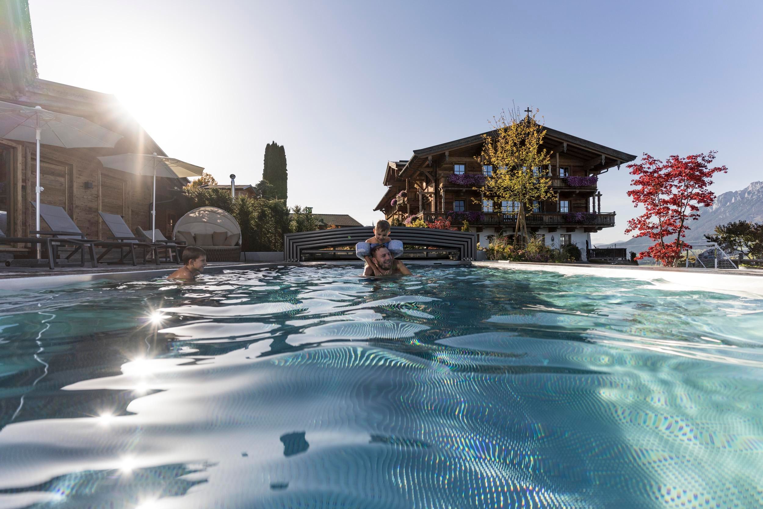 Der geschichtsträchtige Naschberghof wurde im Jahr 2013 neu errichtet. Seit Winter 2014/2015 befinden sich hier drei kaiserliche Appartements in ökologischer Holzbauweise im traditionellen Tiroler Stil mit einer hochwertigen Innenausstattung. Die Küchen erfüllen höchste Ansprüche an Ausstattung und Funktionalität und die Bäder überzeugen durch modernes Design. Jedes Appartement verfügt über einen großen Balkon.„Urlaub in der Natur - Auszeit vom Alltag“Wenn Sie unter dem Motto Ihren Urlaub verbringen möchten, dann sind Sie bei uns genau richtig!Unser Naschberghof liegt auf einem Plateau etwas oberhalb vom Ortszentrum Ellmau inmitten der Natur, umgeben von Wiesen und Wäldern. Von hier genießen Sie einen unverbauten und einzigarten Panoramablick auf das Bergmassiv des Wilden Kaisers sowie auf die gesamte Bergwelt. Zum Ortszentrum sind es 10 Minuten zu Fuß. Jedes Appartement im Naschberghof ist einzigartig, individuell und mit viel Liebe zum Detail und für das Außergewöhnliche gestaltet. Die exklusive Ausstattung lässt keine Wünsche offen. Wir legen höchsten Wert auf die Verarbeitung von natürlichen Materialien!Die Einrichtung ist sehr gemütlich und luxuriös. Naturholz sowie Altholz sorgen für ein entsprechendes Ambiente. Zirbenholz in den Schlafzimmern für einen gesunden Schlaf sowie massive Holzböden mit Fußbodenheizung und in zwei Appartements ein offener Kamin sorgen für eine wohlige Wärme und runden das Wohlbefinden ab. Einem gesunden und behaglichen Raumklima und somit einem erholsamen Urlaub steht nichts mehr im Wege.Die Küchen erfüllen höchste Ansprüche an Ausstattung und Funktionalität und die Bäder überzeugen durch modernes Design. Jedes Appartement verfügt über einen großen Balkon.Der Naschberghof ist idealer Ausgangspunkt für viele Aktivitäten ob Sommer oder Winter.Im Winter heißts bei uns “Skifahren von der Haustüre weg”. Sie haben Anschluss an den Skigroßraum Wilder Kaiser/Brixental sowie zum Skigebiet Astberg/Going . Außerdem führt Sie ein Schlepplift direkt zu unserem Haus. Die 4,5 km lange und beleuchtete Rodelbahn liegt fünf Minuten zu Fuß von uns entfernt. Weiterhin haben wir eine Eisstockbahn mit 2 Bahnen, wo Sie eine lustige Partie spielen können. Im Sommer haben Sie direkten Anschluss ins Wanderwegenetz. Wanderwege führen direkt am Haus entlang.Im Winter benötigen Sie Schneeketten oder Allrad.Wir freuen uns, Sie bei uns begrüßen zu dürfen!