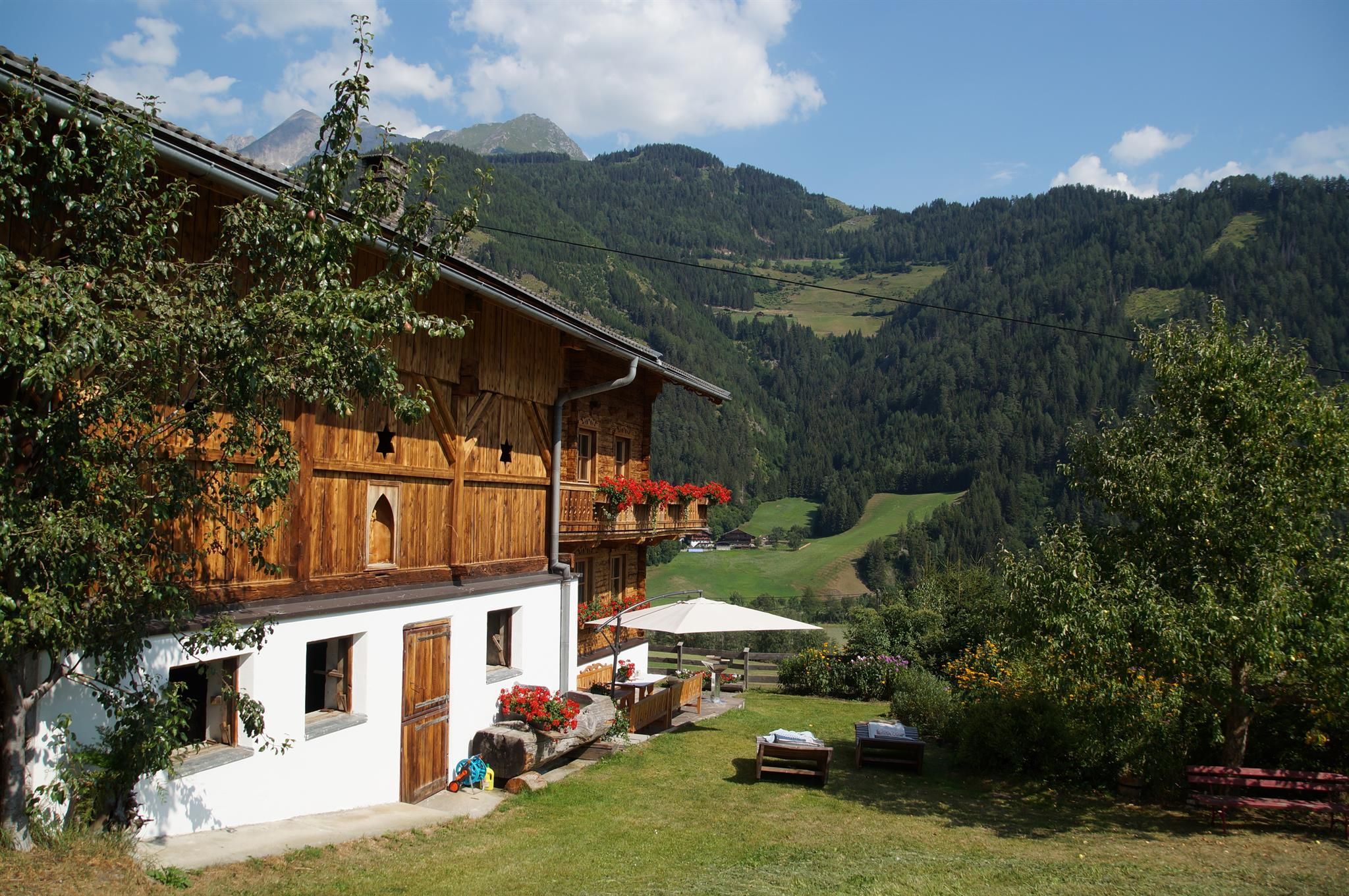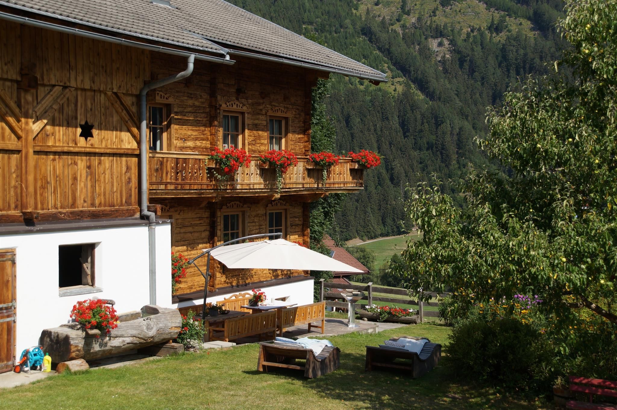 Ca. 1,5 km außerhalb des Ortszentrums In Ruhiger Lage mit Blick auf Matrei. Umgeben von Wiesen und alten Eschenbäumen. Optimal für größere Gruppen!
