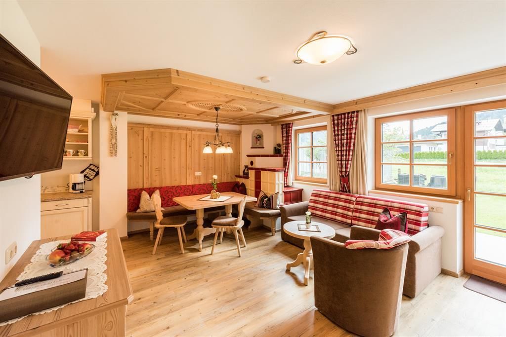 Unsere Residenz 111 mit prachtvoller Lüftlmalerei inmitten von Holzgau wurde neu eröffnet. Alt und Neu im Einklang mit der Natur, das Schmuckkästchen der besonderen Art, die Perle im Naturpark Tiroler Lech. Wohlfühlen und genießen in gediegenem Ambiente, Schlafzimmer aus Zirbenholz für angenehmen Schlaf. Wohnzimmer mit feinen Altholzmöbeln, gemütlicher Sitzecke mit Kachelofen und bequemer Couch, großzügige Badezimmer, mit Fön, Kosmetikspiegel, usw. Voll ausgestattete Küchen mit Backofen, Spülmaschine usw. Logia und schöne Sonnenterrasse. Bushaltestelle, Radweg, Lechweg, Langlaufloipe, Lebensmittel- und Sportgeschäfte in unmittelbarer Nähe. Gratis Schlittenverleih, Rodelbahn, Hängebrücke, Bank, Tourismusbüro, Bäckerei-Konditorei, verschiedene Restaurants und Gaststätten, Bierbrauerei, Minigolf nur ein paar Gehminuten entfernt. Inklusive gratis Lechtal Card mit vielen Vorteilen. Täglicher Brötchenservice. Hier verschmelzen Tiroler Lebensweise und Tradition mit echter Gastfreundschaft.