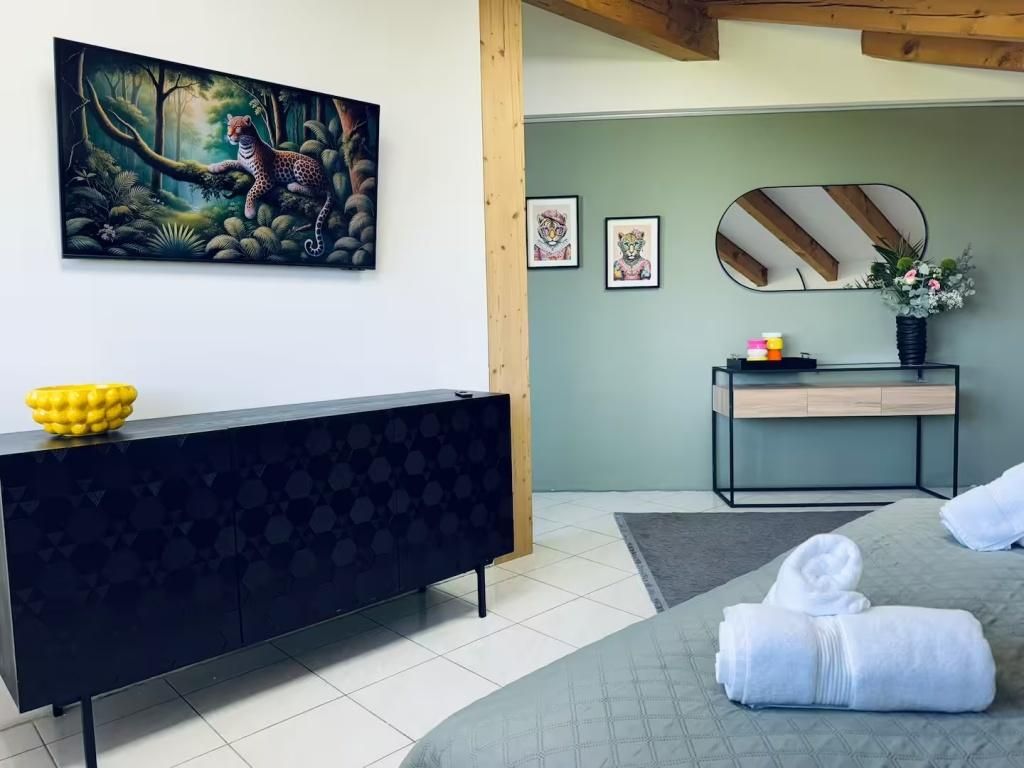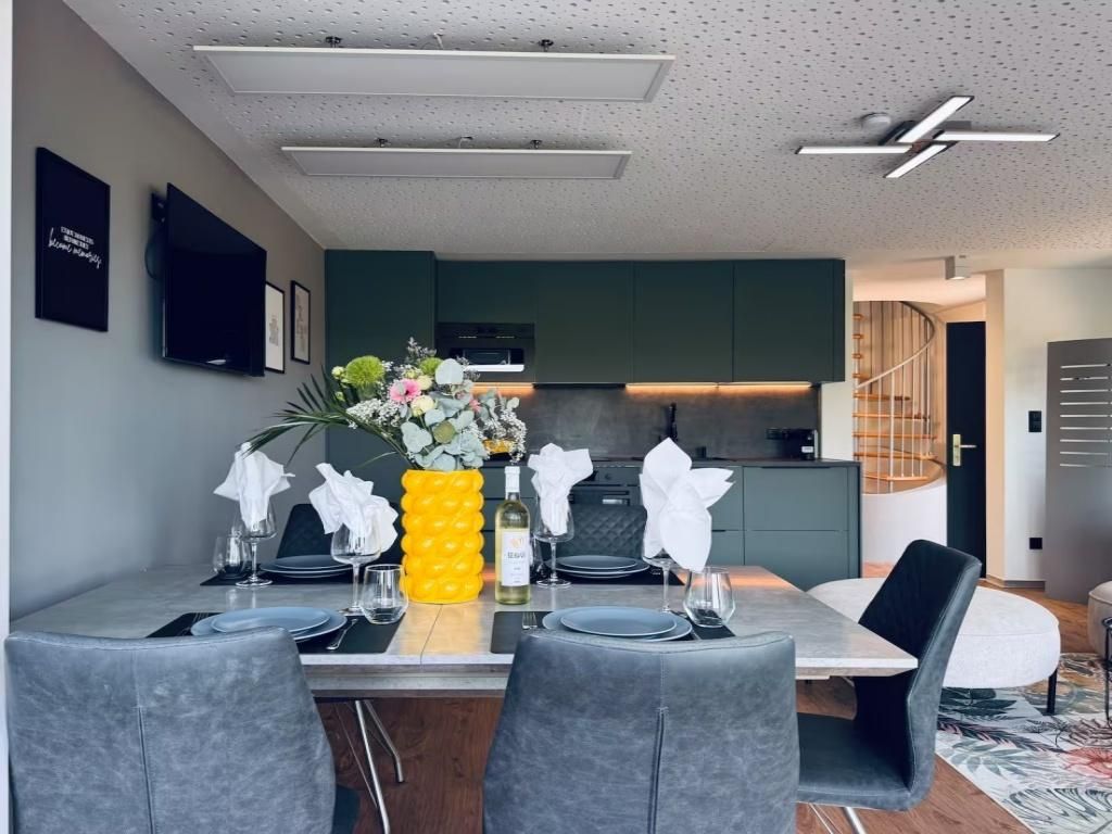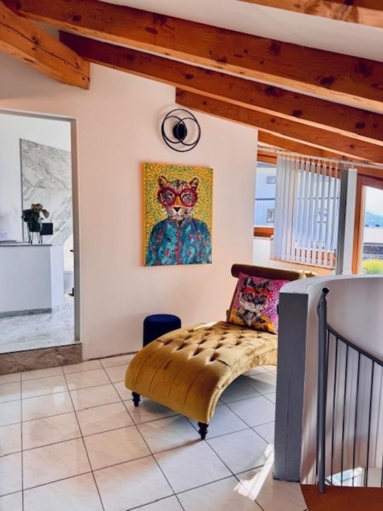 Ankommen, durchatmen – und vom Wohnzimmer aus den Patscherkofel, die Nordkette und den Glungezer in einem Blick genießen. Das Appartement besteht zwei Schlafzimmern und einem Wohn-Essbereich. Auf rund 80 m² bietet das Duplex‑Hide‑away zwei ruhige Schlafzimmer, ein elegantes Bad mit Walk‑In‑Regendusche sowie einen offenen Wohn‑/ Essbereich, der direkt auf die Sonnenterrasse führt. Golf‑Hotspot in ReichweiteGolferinnen und Golfer haben die Qual der Wahl: Gleich drei Anlagen liegen in maximal fünf Autominuten Entfernung – zwei 9‑Loch‑Plätze und ein 18‑Loch‑Championship‑Course. Perfekte AnbindungDie Bushaltestelle befindet sich direkt vor der Haustür – in zehn Minuten bist du mitten in Innsbruck. Dein Auto steht derweil sicher auf dem reservierten Stellplatz und kann an unserer E‑Ladestation neue Reichweite tanken.Ob man Skipisten erobert, den Glungezer erklimmt, sein Handicap verbessert oder die Innsbrucker Altstadt entdecken möchte – hier kombinierst du alpine Natur, urbanes Flair und nachhaltigen Komfort zu deinem ganz persönlichen Tirol‑Erlebnis.Weitere wichtige HinweiseWichtiger Hinweis – nicht barrierefrei Das Appartement erstreckt sich über zwei Etagen: Der Schlaf‑ und Badbereich im ersten Stock ist ausschließlich über eine Wendeltreppe erreichbar.Für Gäste mit eingeschränkter Mobilität ist die Unterkunft daher leider nicht geeignet.