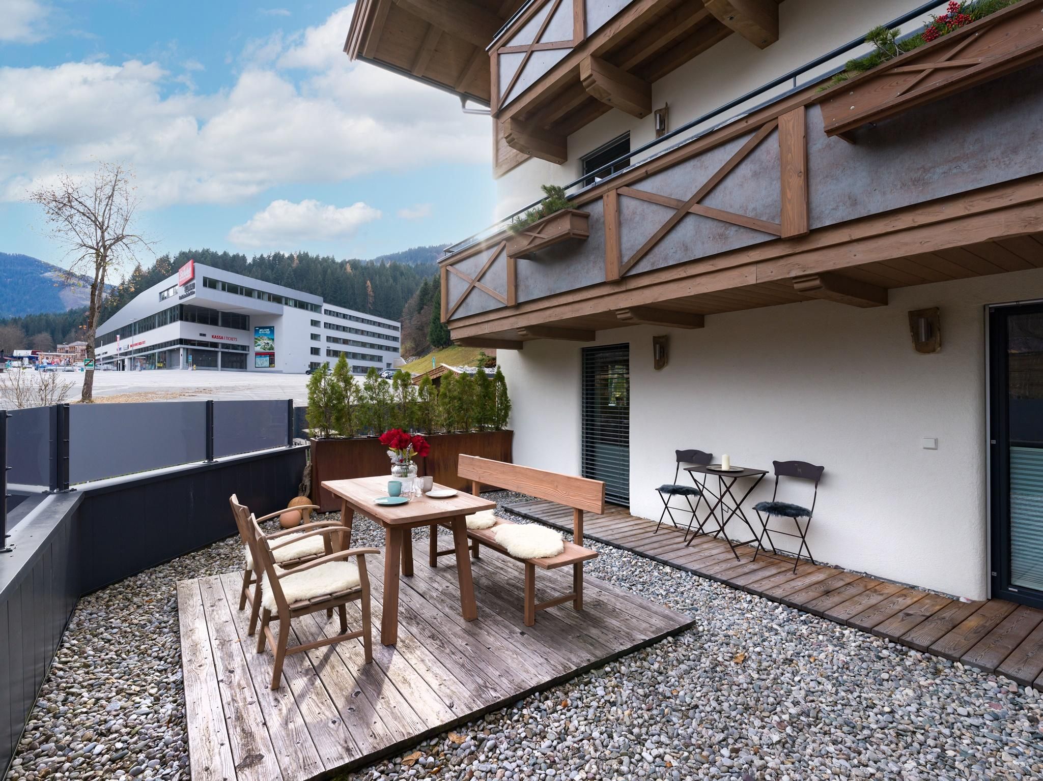 Wagnerhaus Ellmau Unser Haus befindet sich in ruhiger Lage, direkt neben der Talstation der Hartkaiserbahn, mit traumhafter Aussicht auf den Wilden Kaiser. Ein idealer Ausgangspunkt fürs Schifahren, Wandern, Radfahren, usw... Die zentrale Lage hat den Vorteil, dass man sein Auto während des Urlaubs stehen lassen kann uns sich somit Streß erspart. Geschäfte, Lokale, Sporteinrichtungen sind zu Fuß oder mit dem Bus erreichbar - Haltestelle 100 m entfernt. Wir freuen uns, Sie als unsere Gäste in unserem Haus bald begrüßen zu dürfen! Familie Arnold